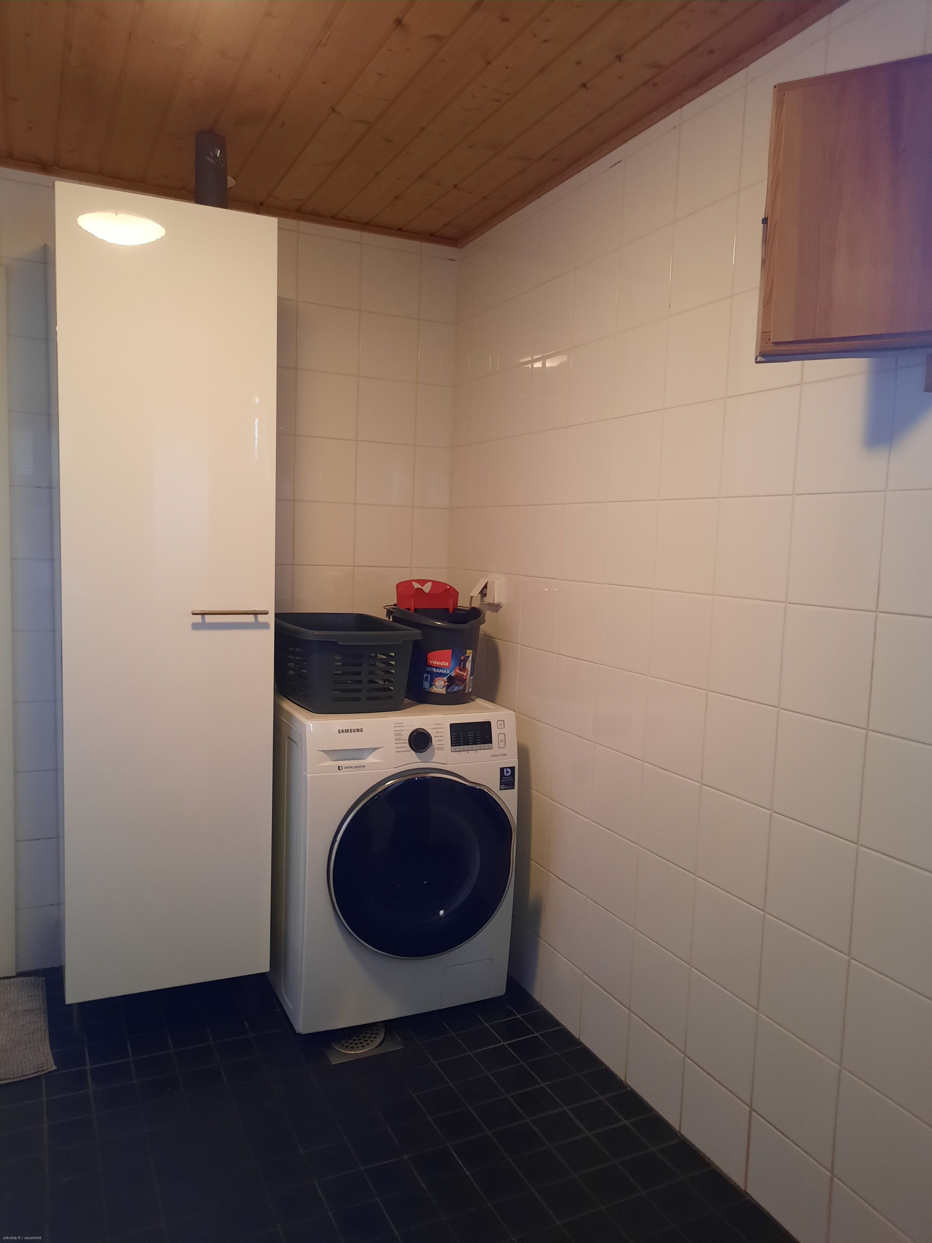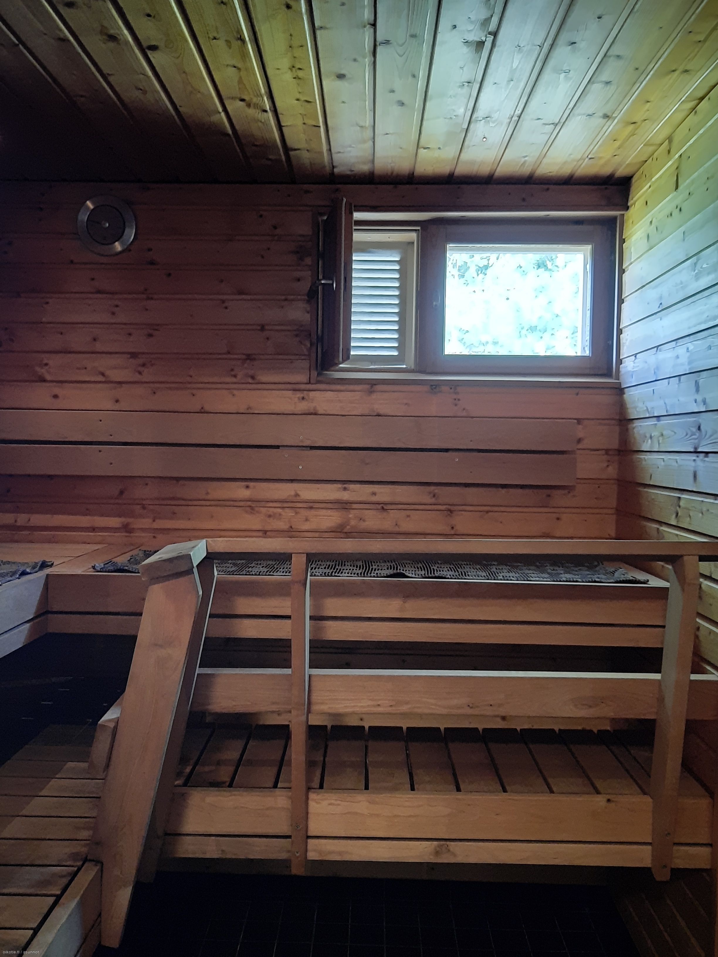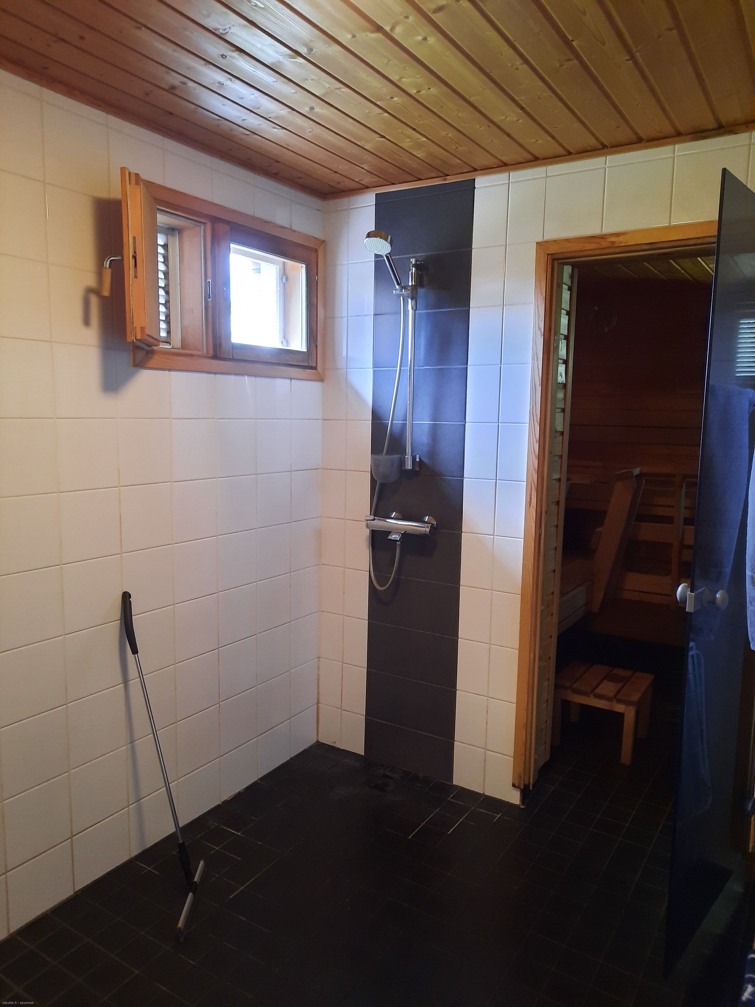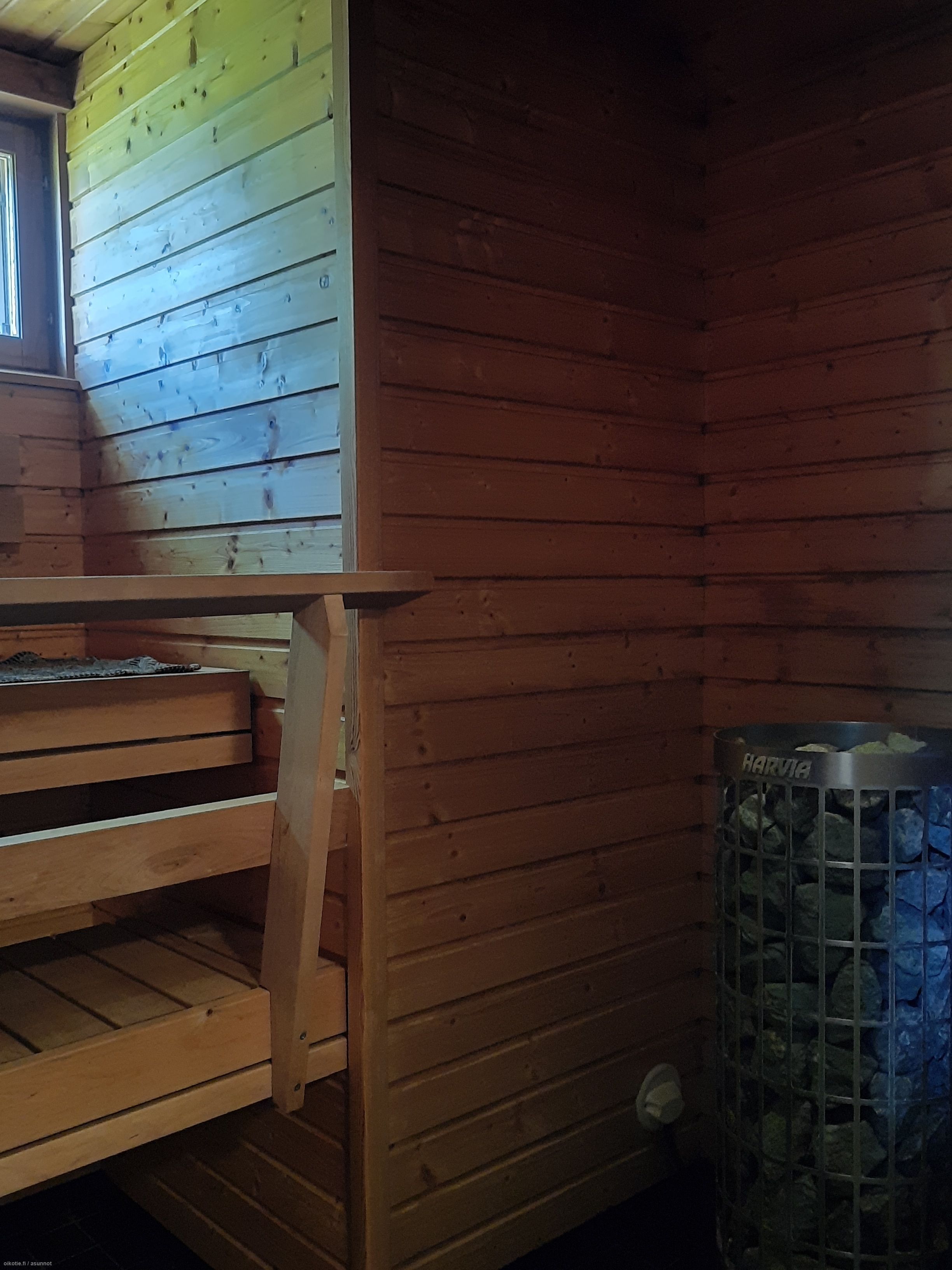 Varusteet: Sähkökiuas. Lattiamateriaali: Laattalattia