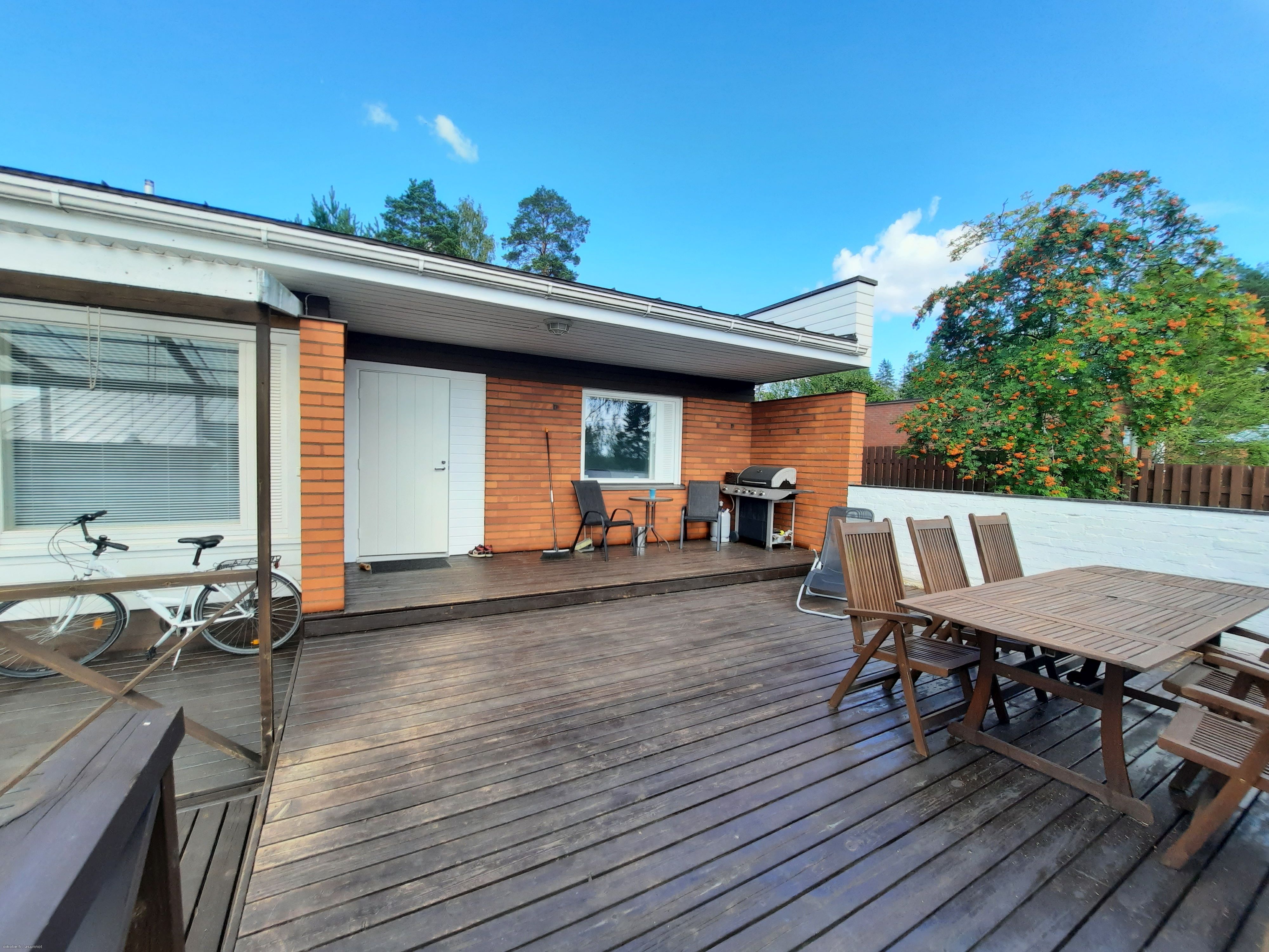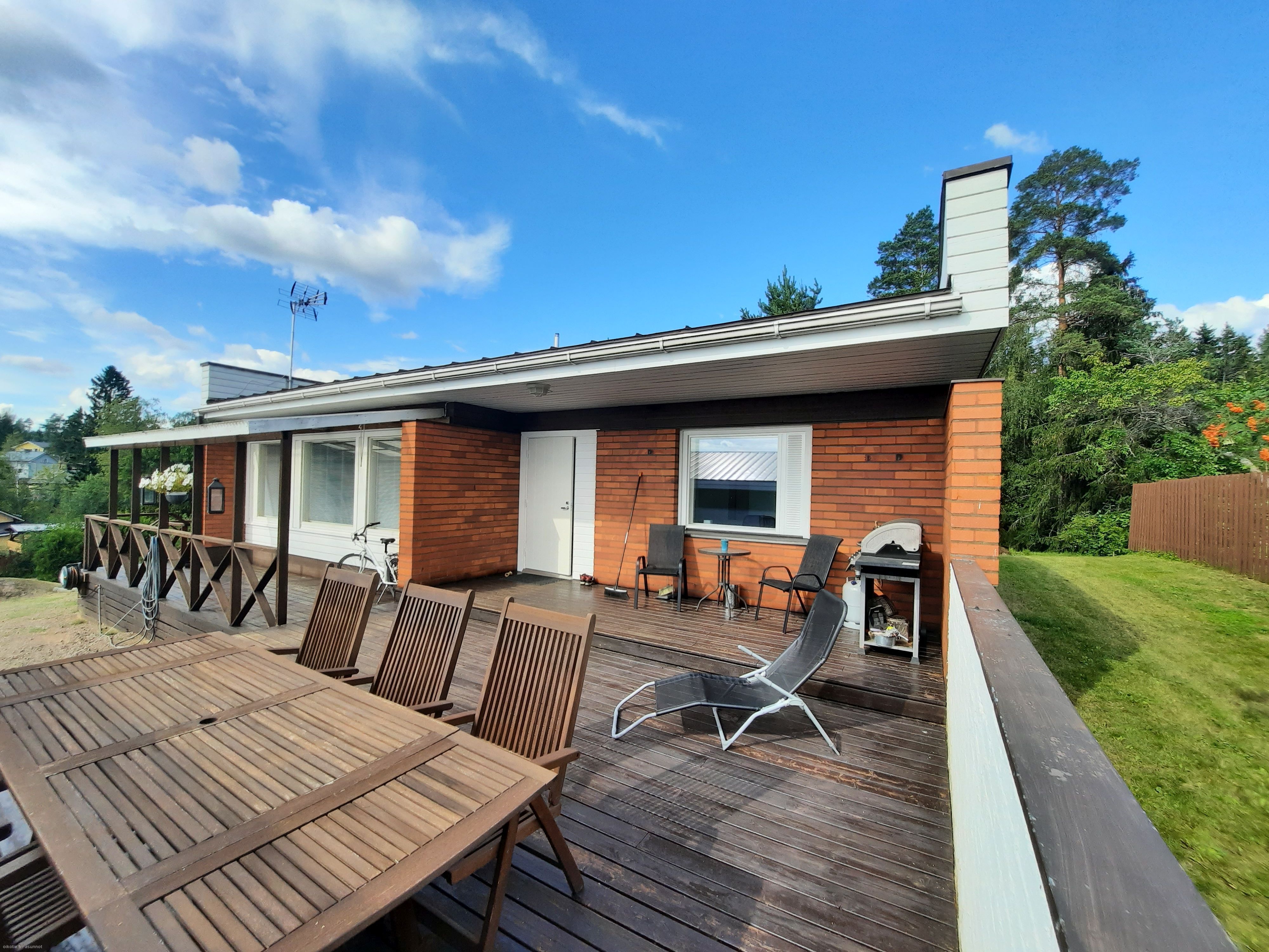 Vuonna 1965 valmistunut runsaasti peruskorjattu omakotitalo. Kodin pääsisäänkäynnin yhteydessä laaja ja osittain katettu terassi. Hyvin hoidettu rinnetontti, jonka piha-alue pääosin nurmea. Kiinteistön sisäänajo ja autotallin edusta hiekkaa.