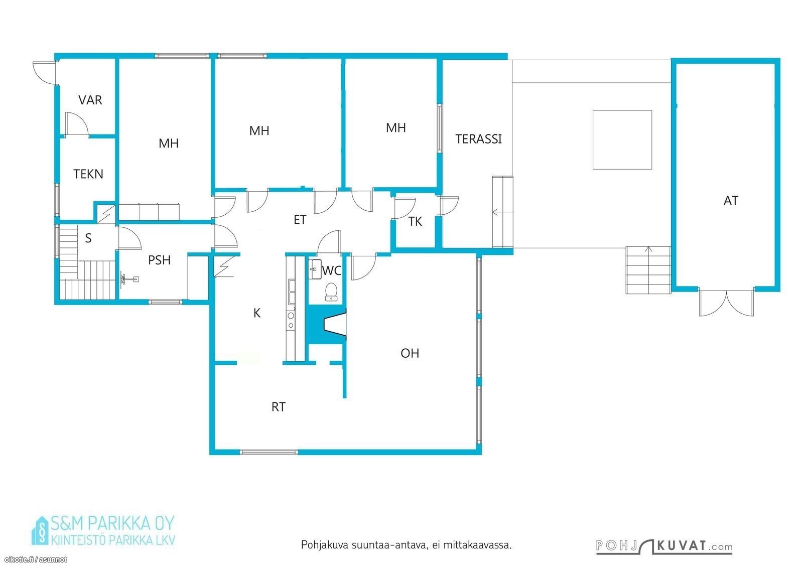 Varusteet: Jääkaappi, Pakastin, Astianpesukone. Liesi: Sähköliesi
