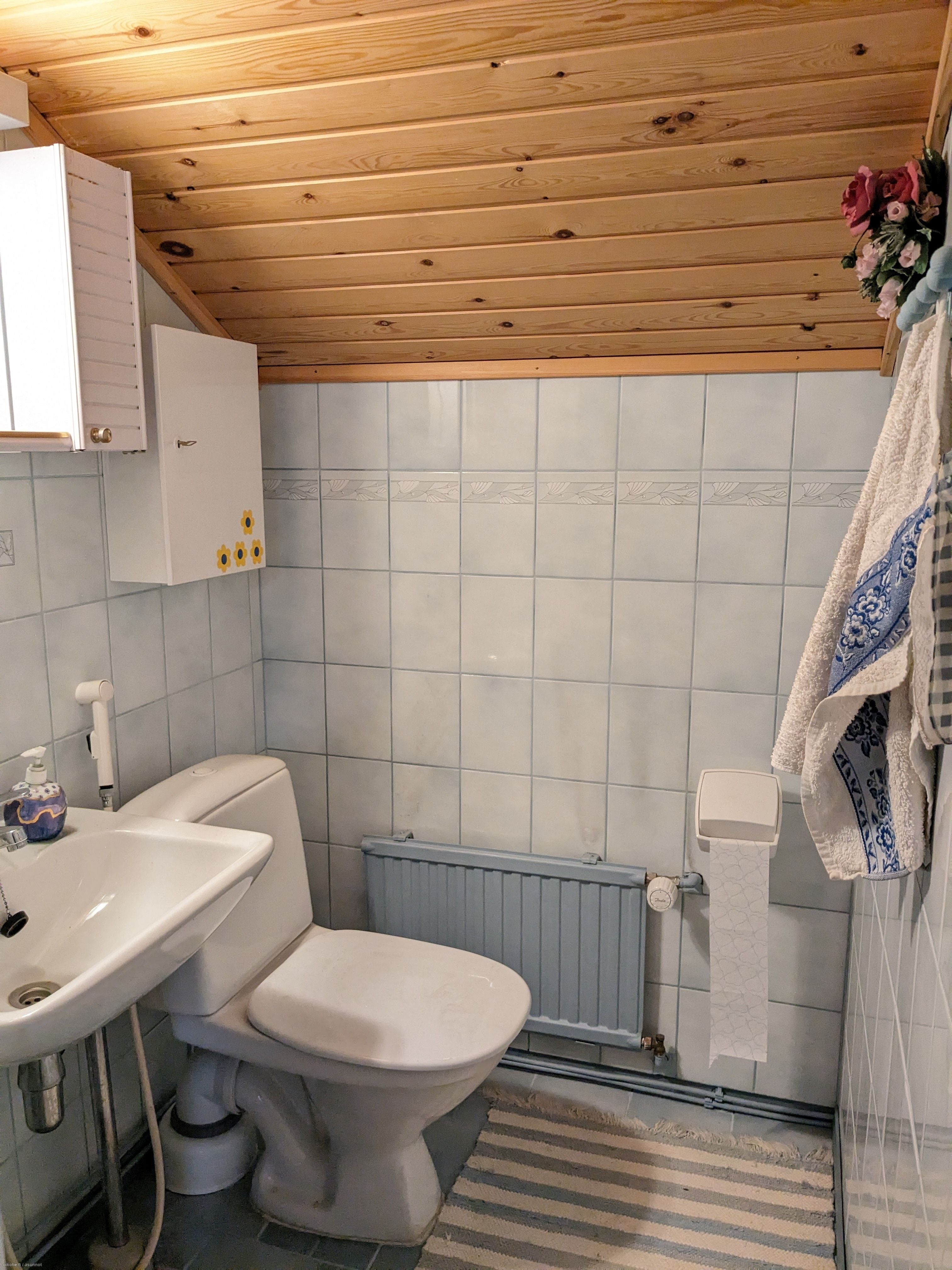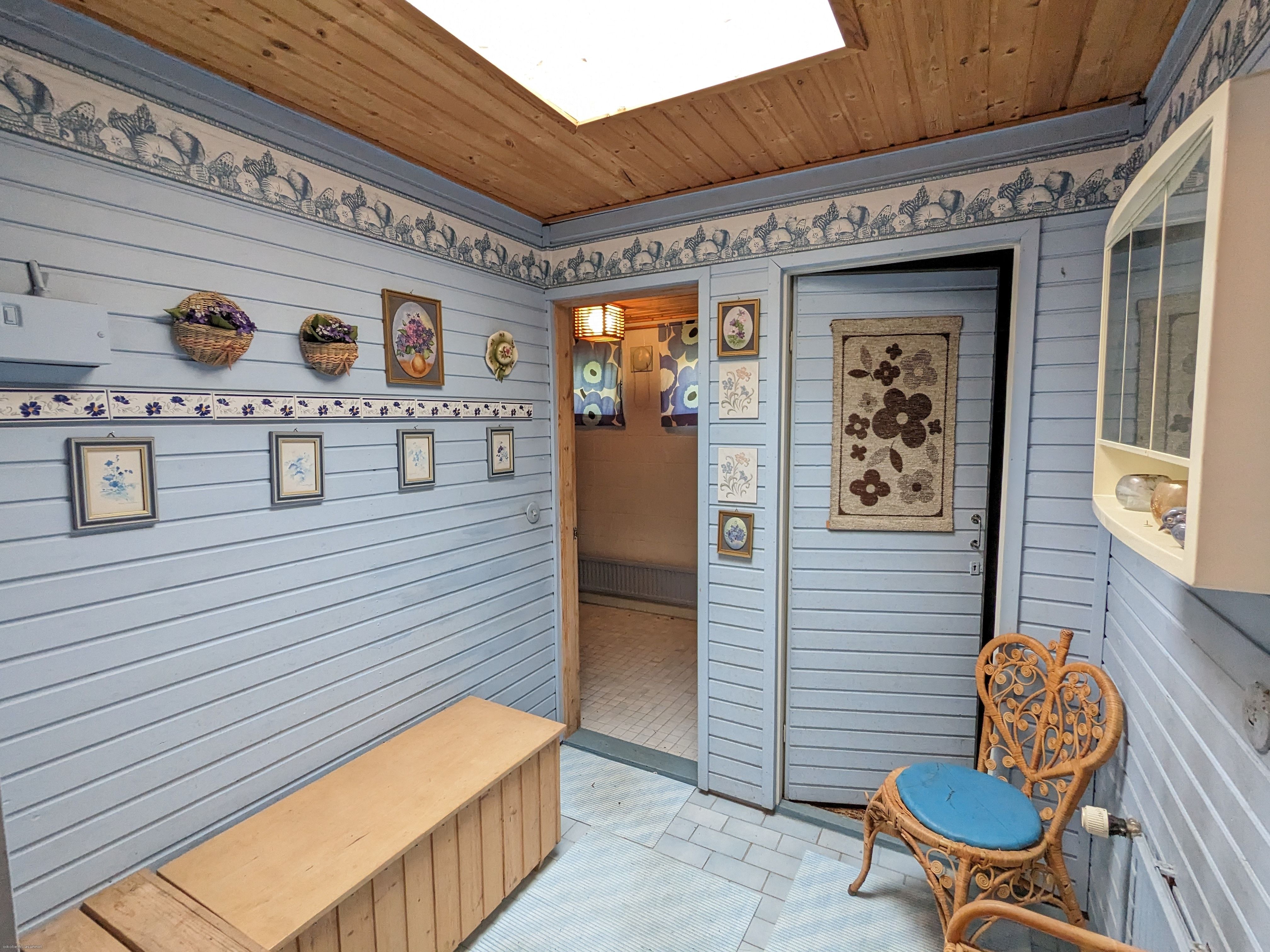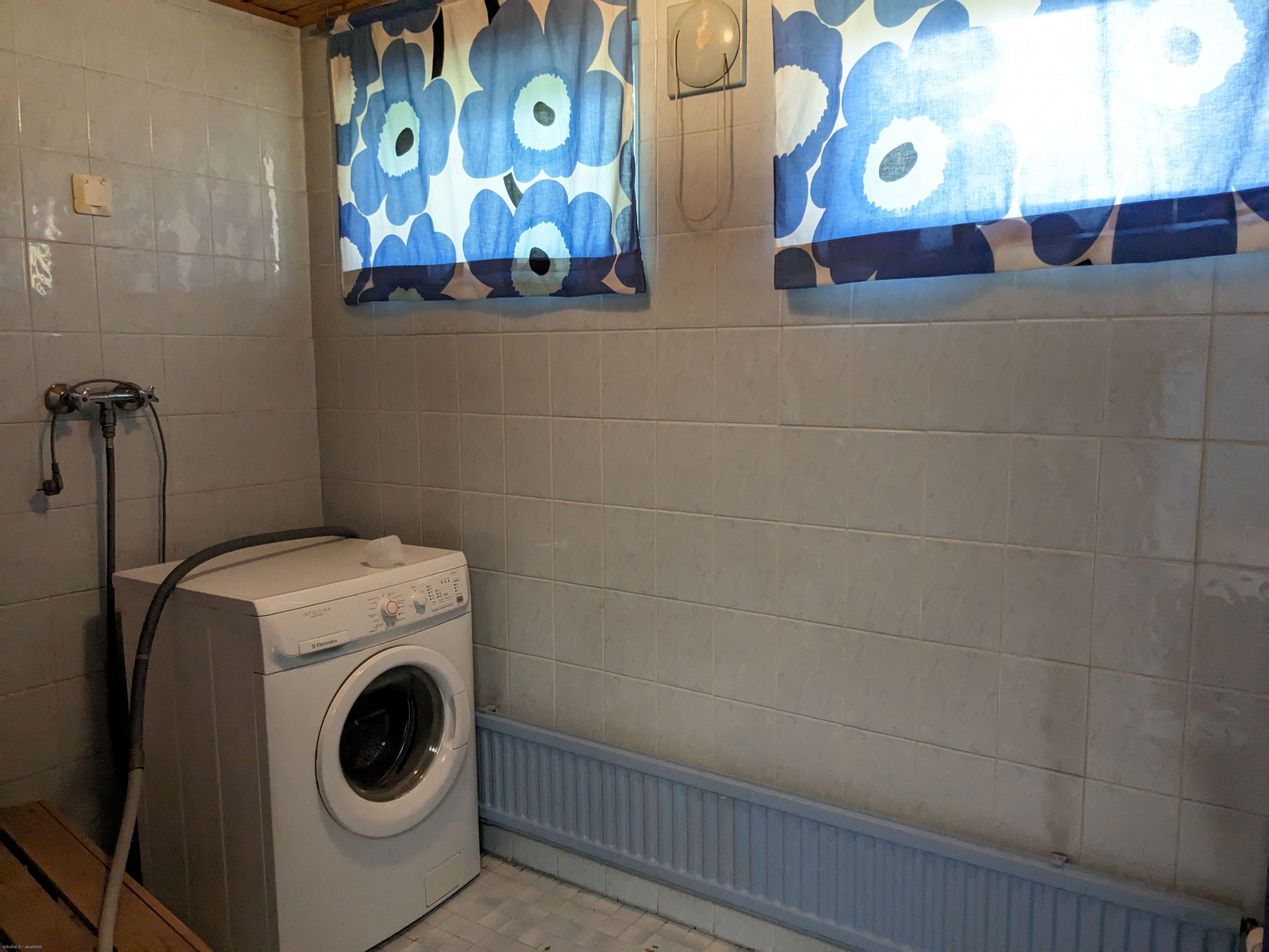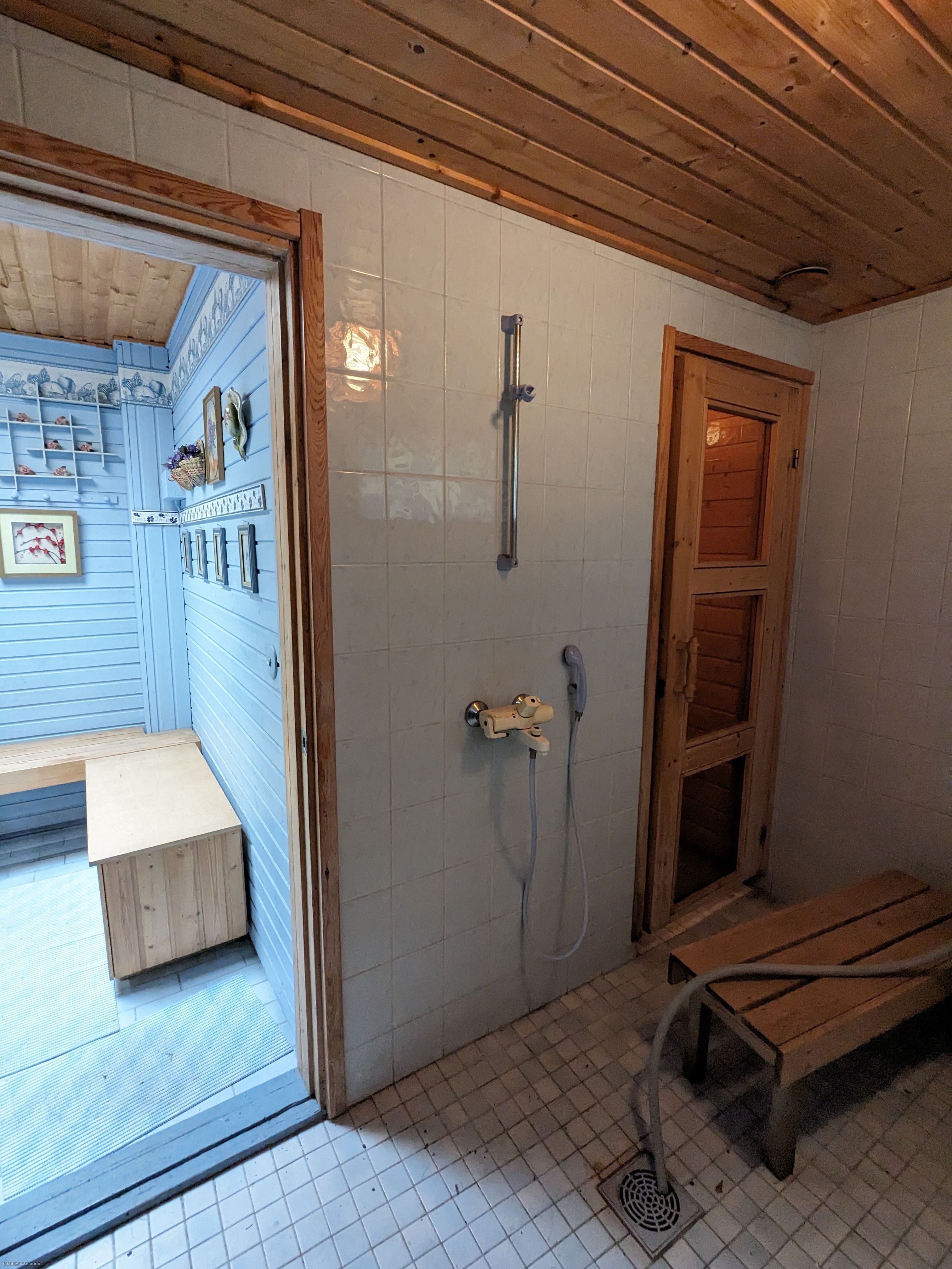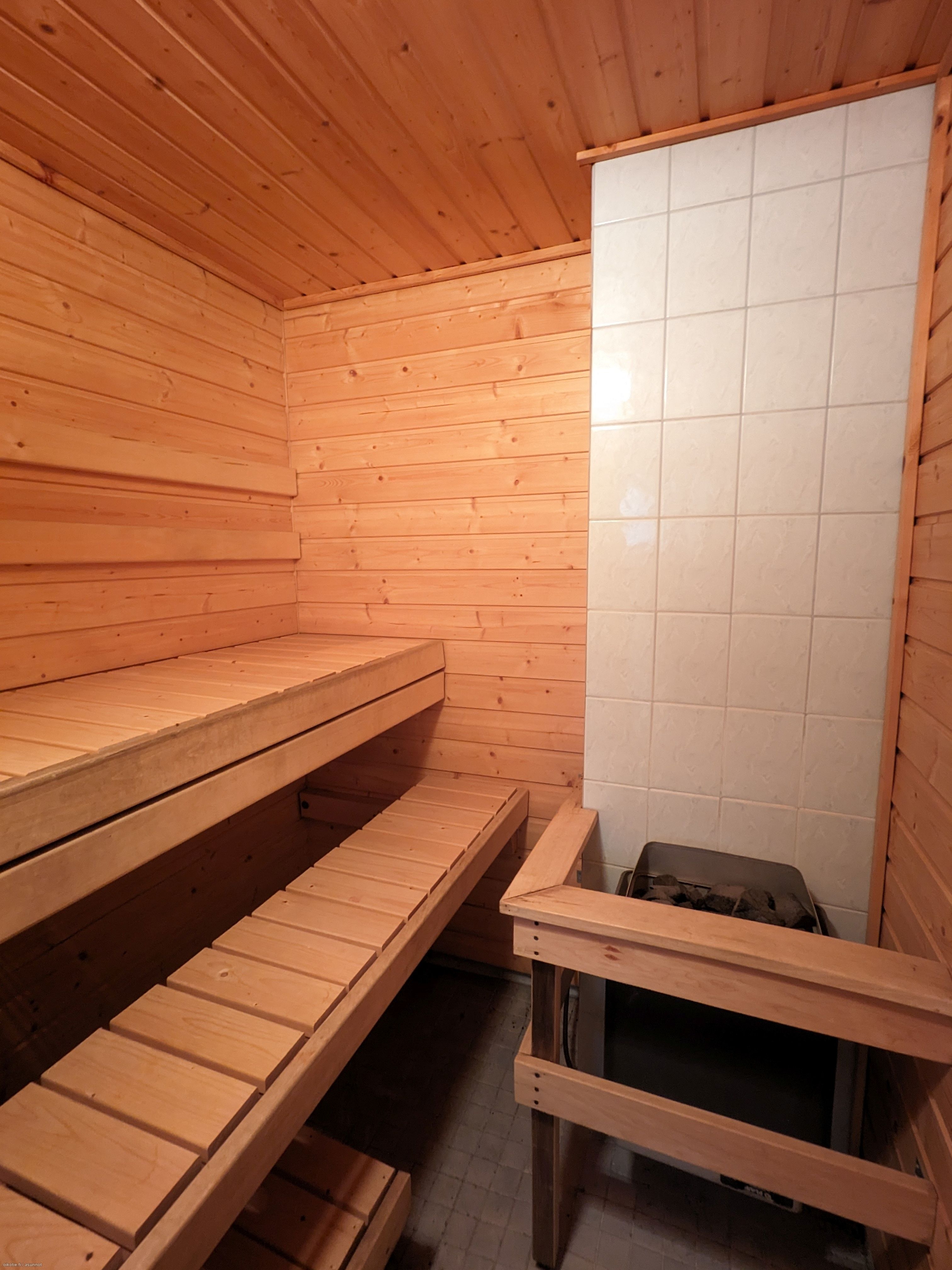 Varusteet: Sähkökiuas. Lattiamateriaali: Laattalattia