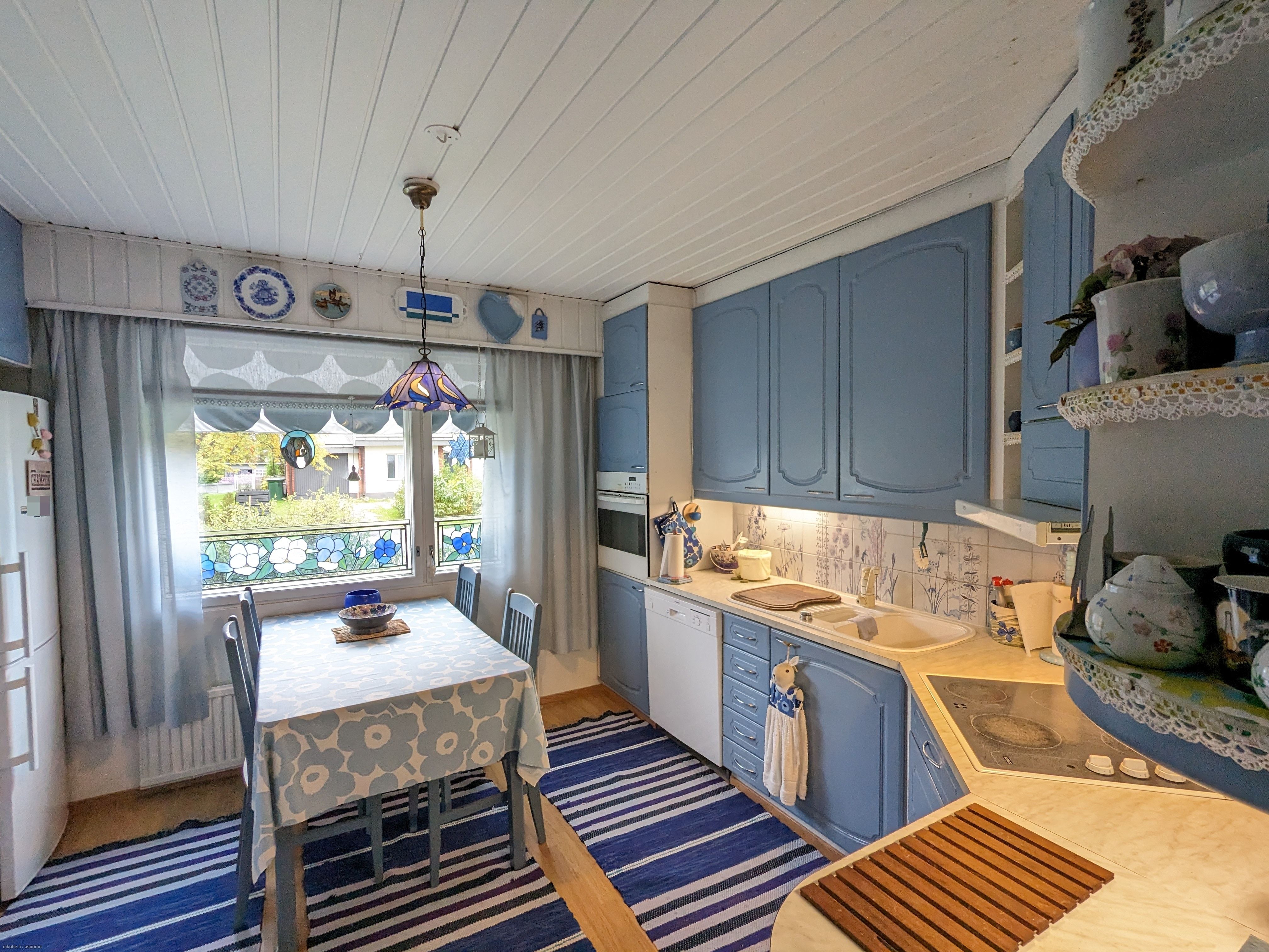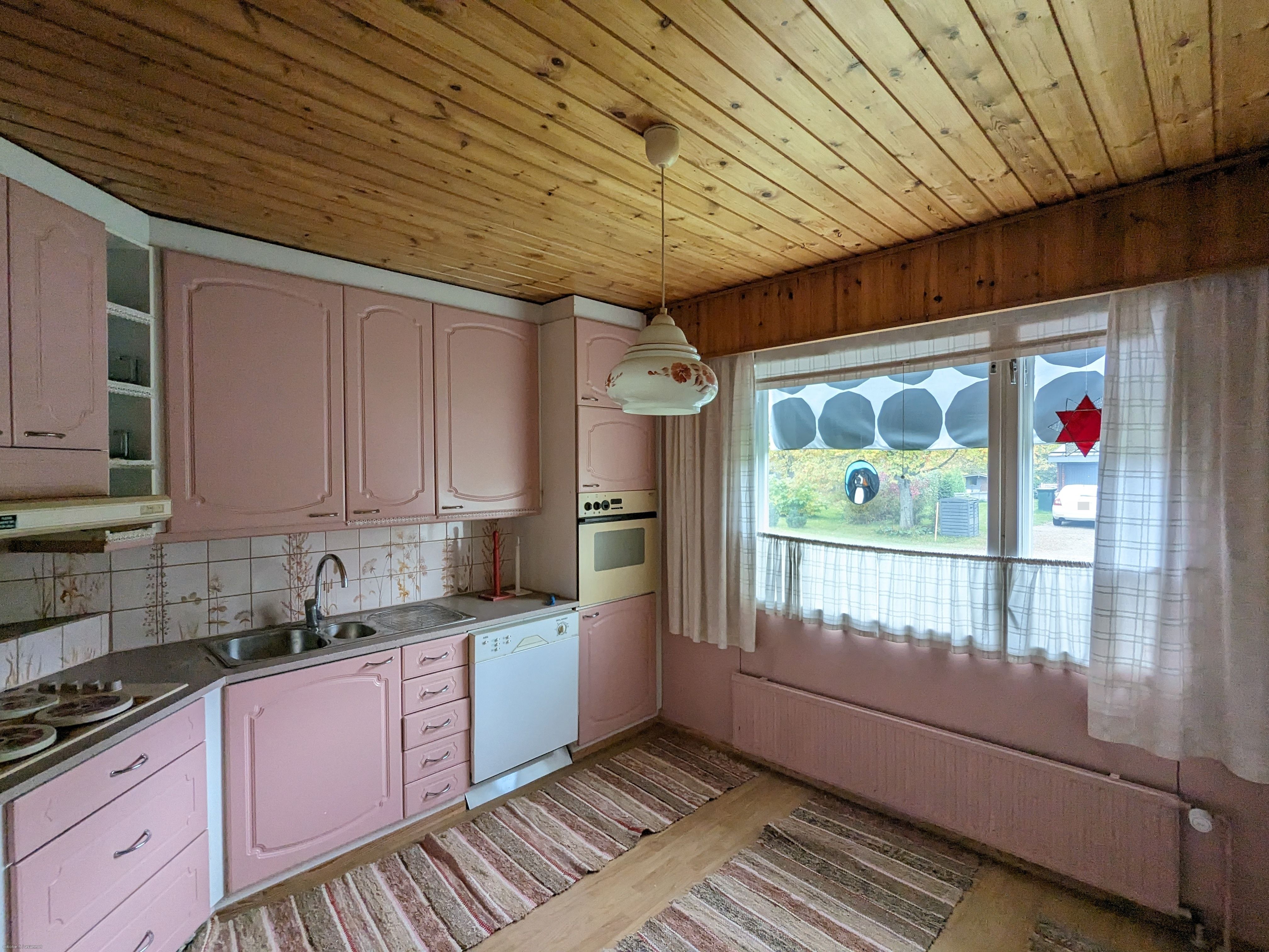 Keittiö2: Jääkaappi/pakastin, sähköliesi, uuni, astianpesukone