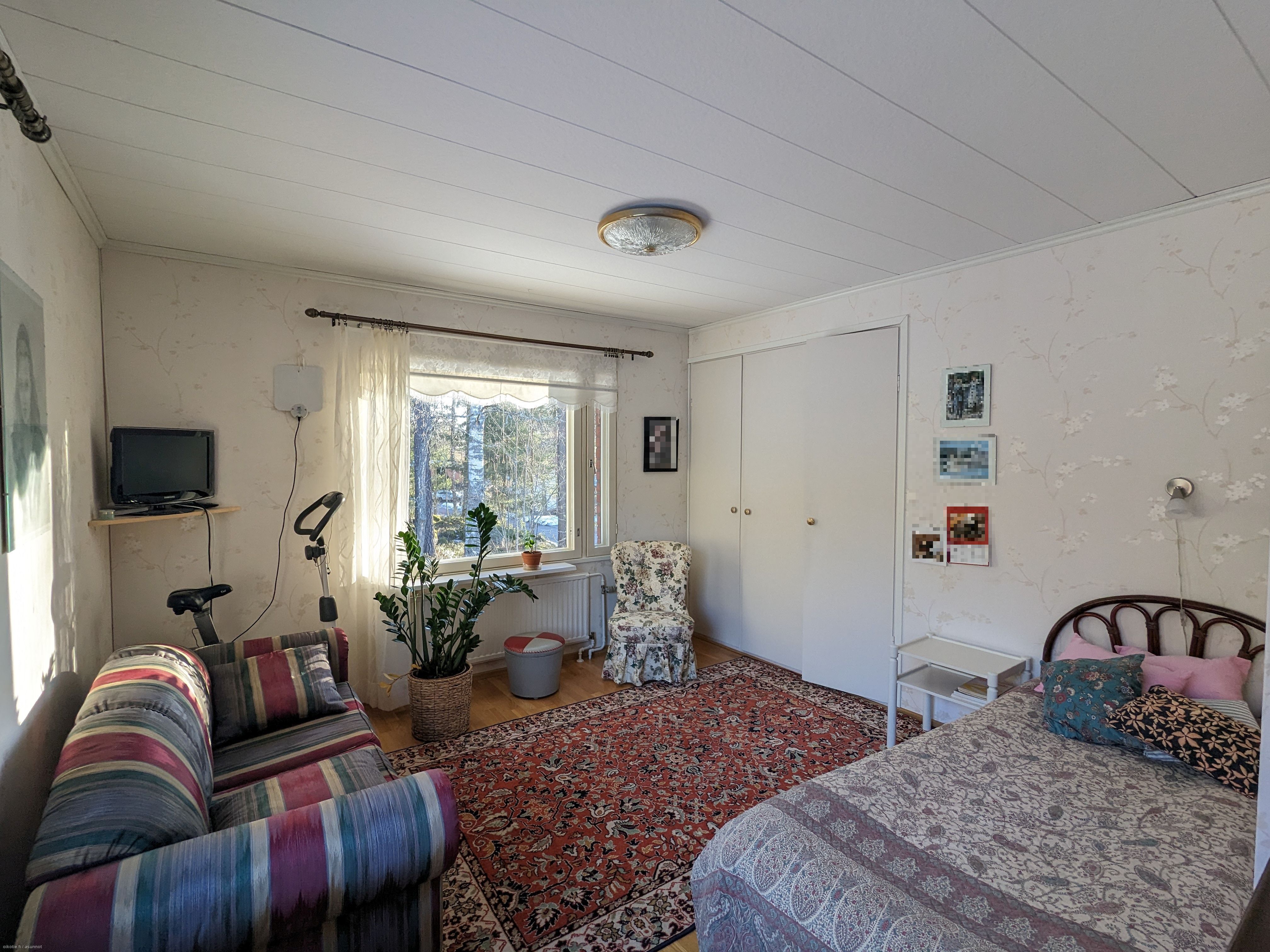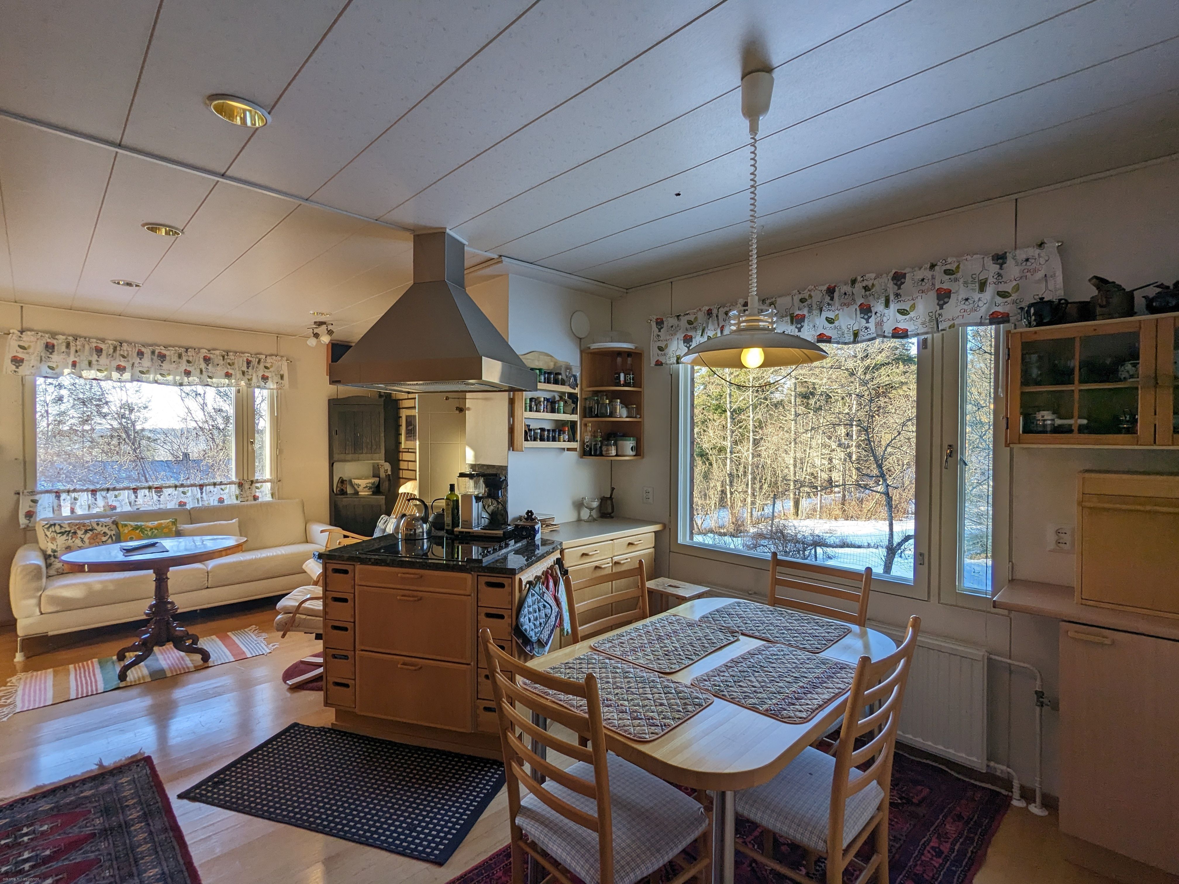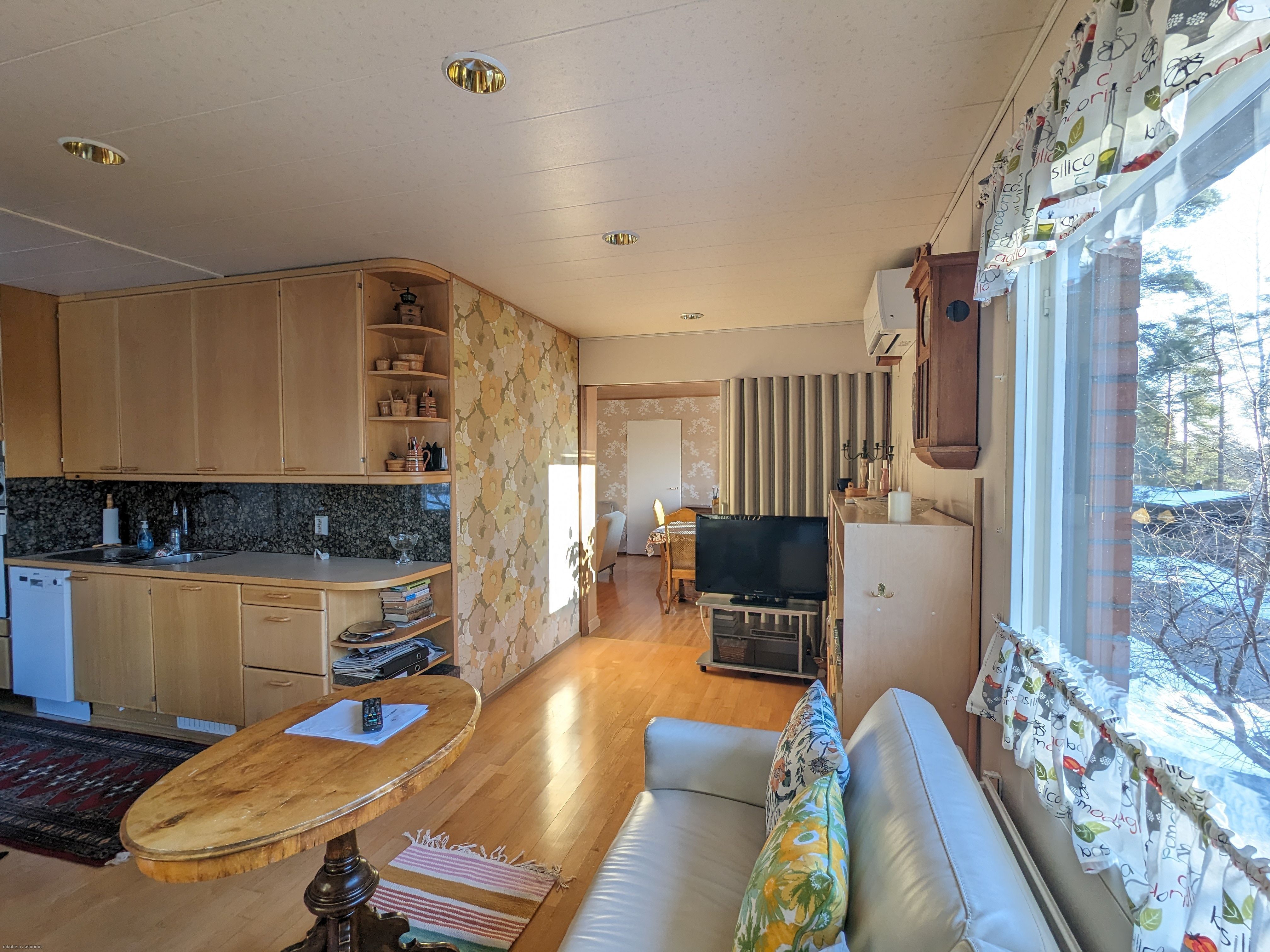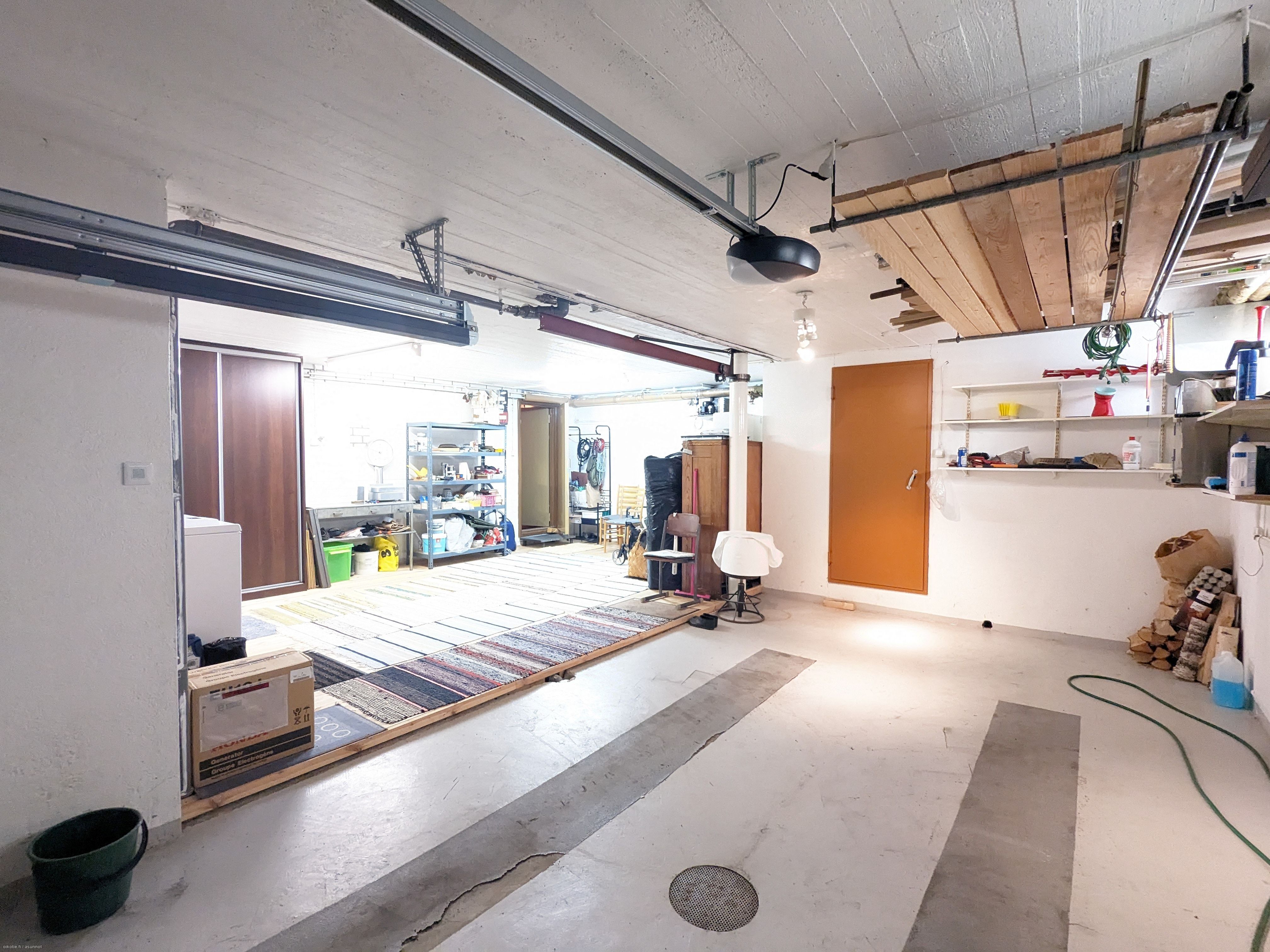 Kaksikerroksisessa asuinkerroksessa on avara ja valoisa iso olohuone, kaksi tilavaa makuuhuonetta, joissa toisessa on vesipiste. Asuinkerroksen takkahuone on avointa tilaa keittiön kanssa. Alakerrassa sijaitsee pesutilat, sauna, kodinhoitohuone, runsaasti erillistä säilytystilaa sekä iso lämmin vesipisteellinen autotalli, johon mahtuu tarpeiden mukaan kuntosalia tai muuta harrastetilaa. Molemmissa kerroksissa ilmalämpöpumppu.