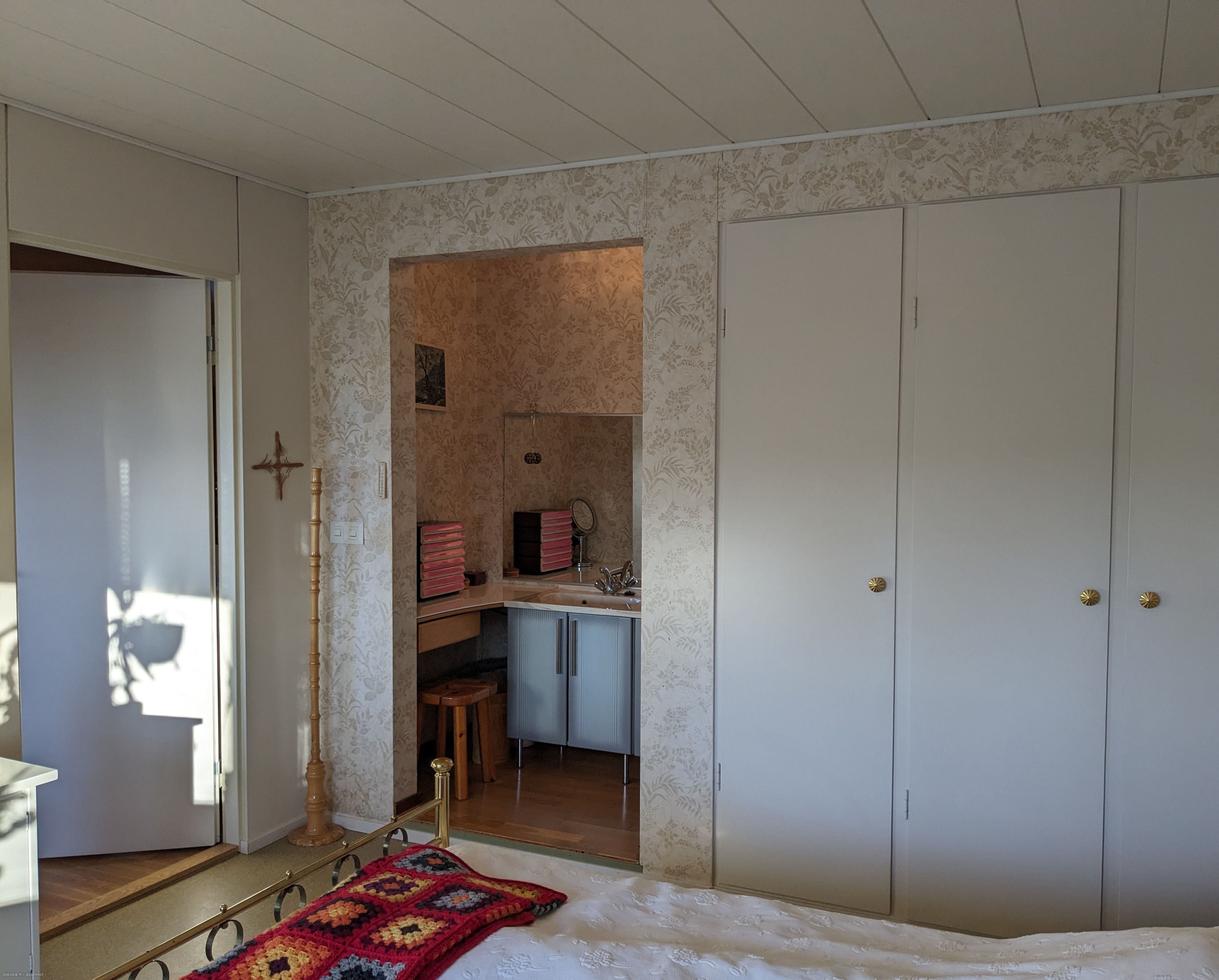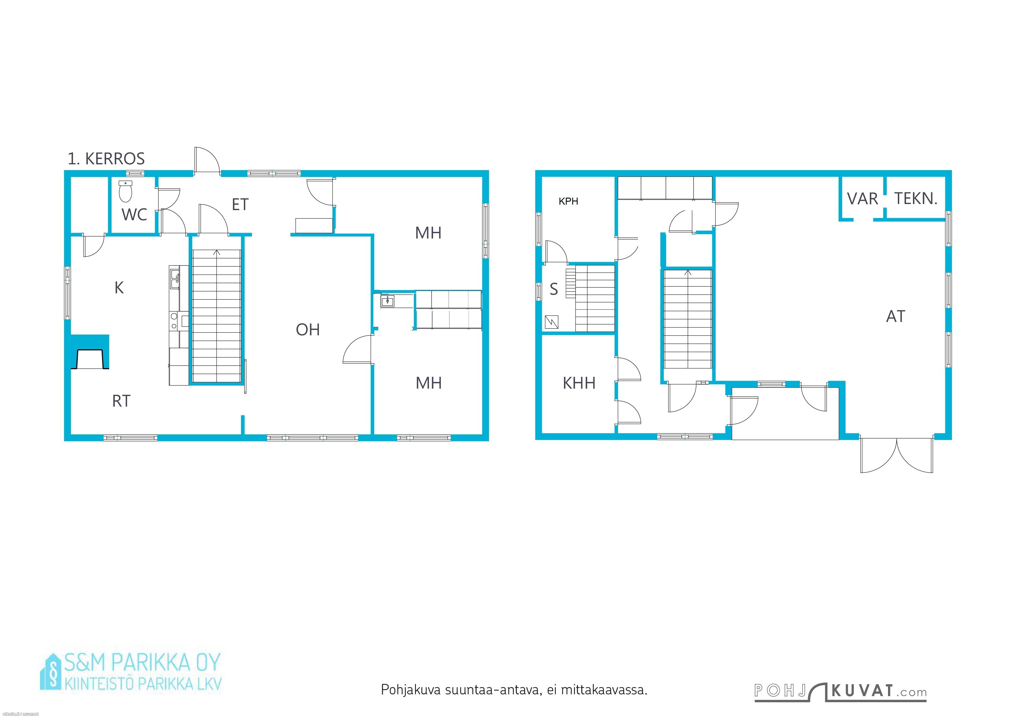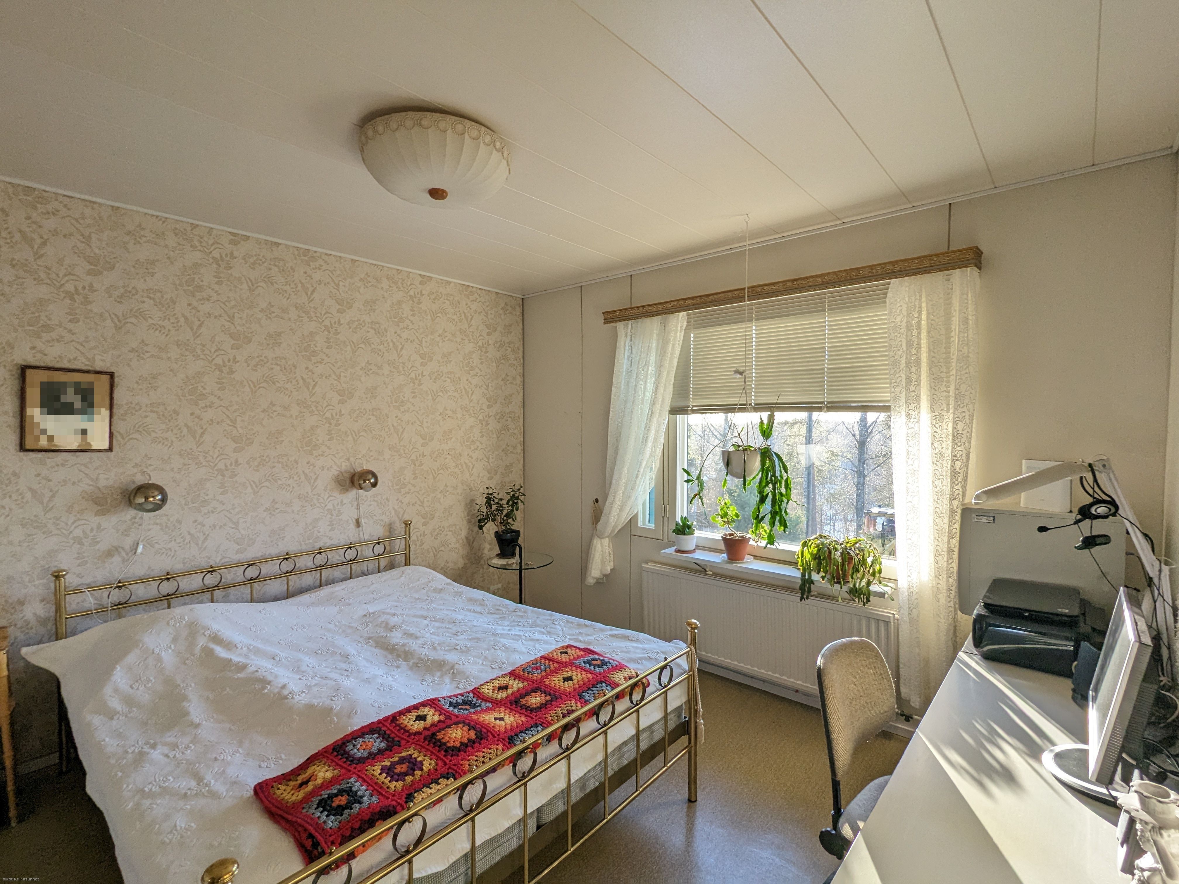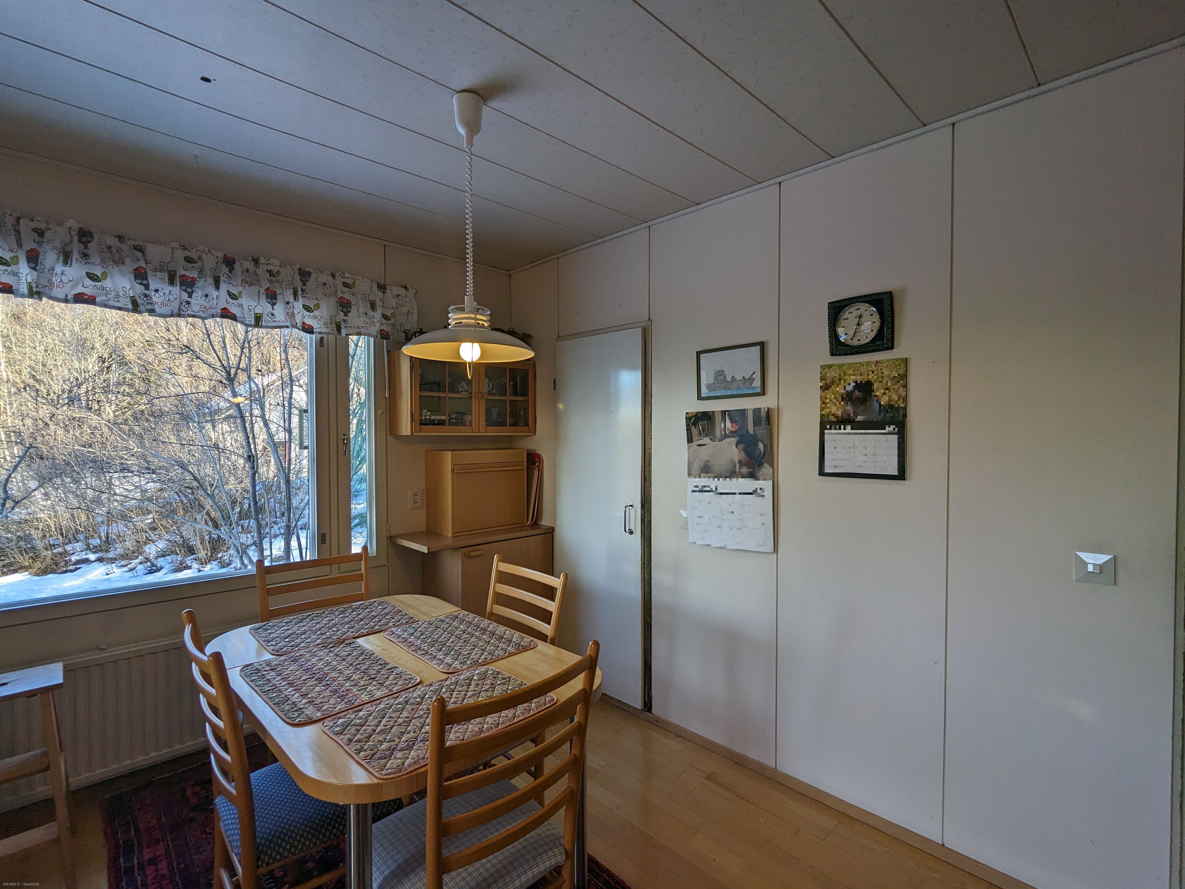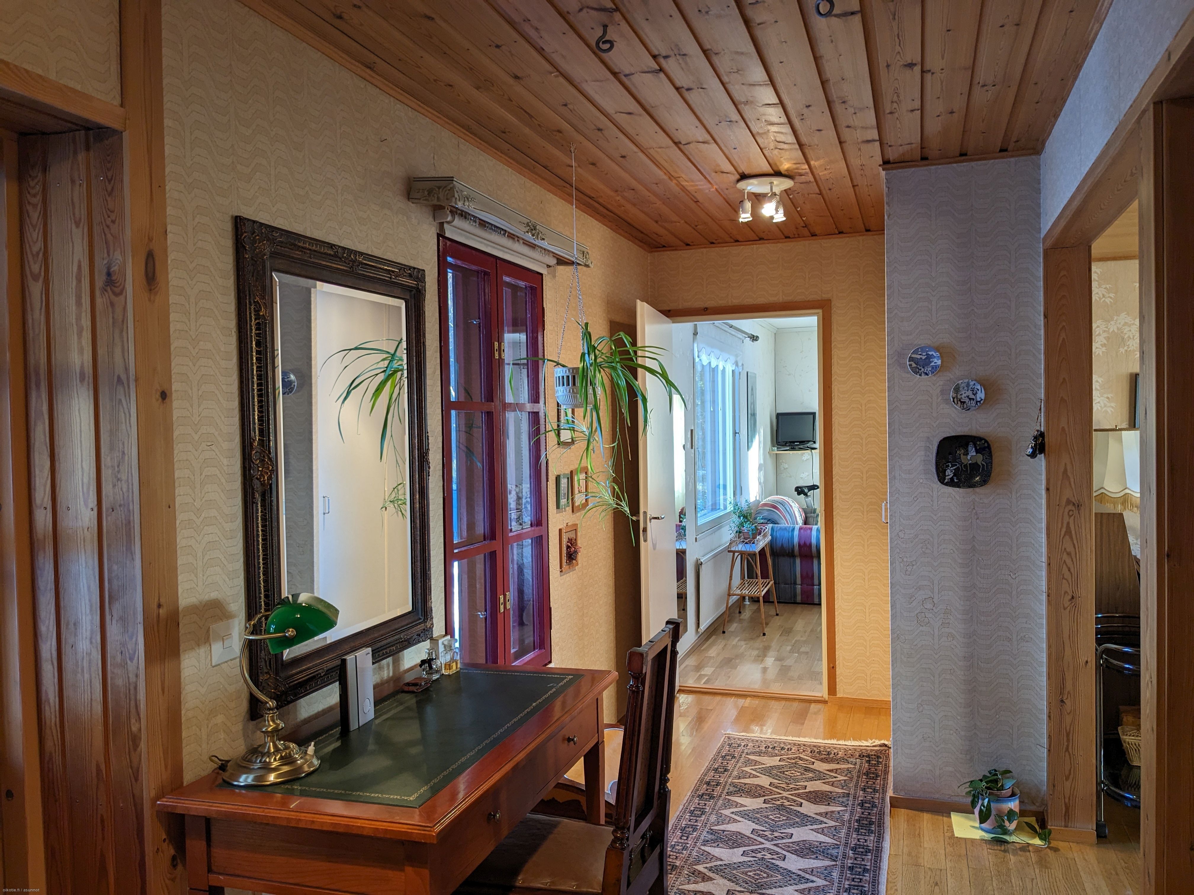 Kaksikerroksisessa asuinkerroksessa on avara ja valoisa iso olohuone, kaksi tilavaa makuuhuonetta, joissa toisessa on vesipiste. Asuinkerroksen takkahuone on avointa tilaa keittiön kanssa. Alakerrassa sijaitsee pesutilat, sauna, kodinhoitohuone, runsaasti erillistä säilytystilaa sekä iso lämmin vesipisteellinen autotalli, johon mahtuu tarpeiden mukaan kuntosalia tai muuta harrastetilaa. Molemmissa kerroksissa ilmalämpöpumppu.