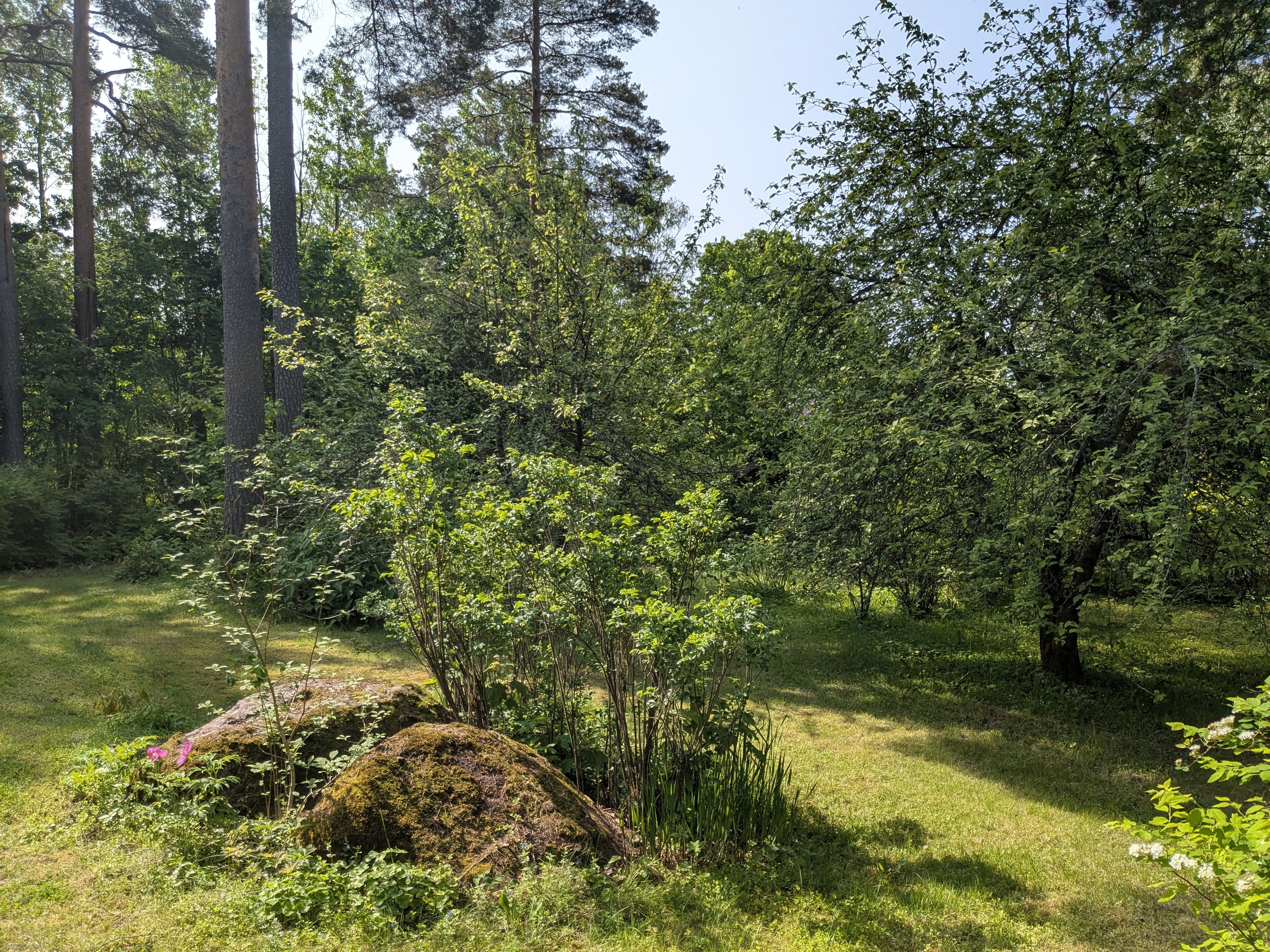 Omassa pihapiirissä mm. omenapuita, komeita isoja mäntyjä. Olohuoneen yhteydessä viihtyisä terassialue. Kymijoen ranta/puisto vieressä ja Inkeroisten uusi yhtenäiskoulu vain n. 400m turvallisen koulumatkan päässä.