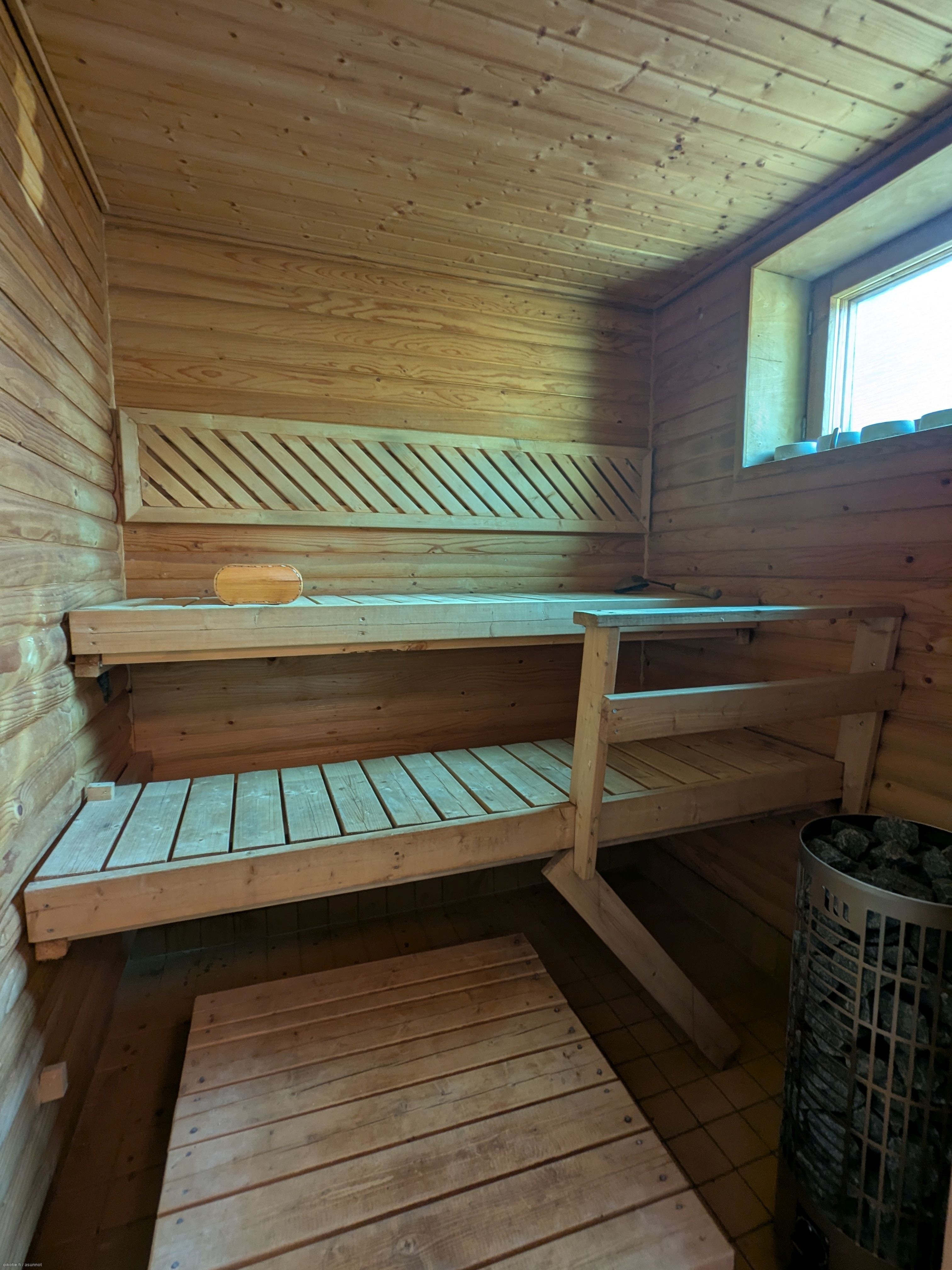 Varusteet: Sähkökiuas, Ikkuna ulos. Lattiamateriaali: Laattalattia
