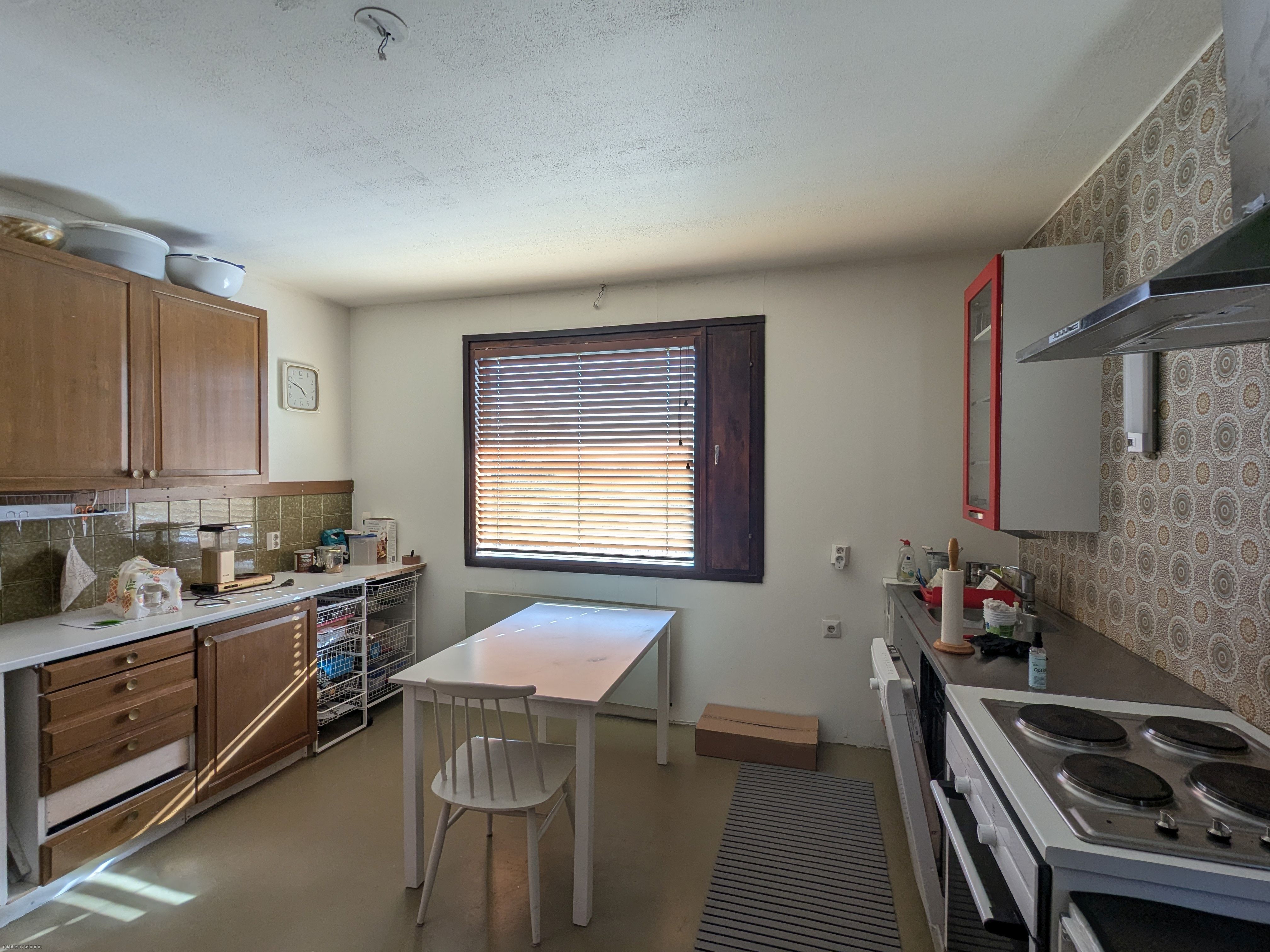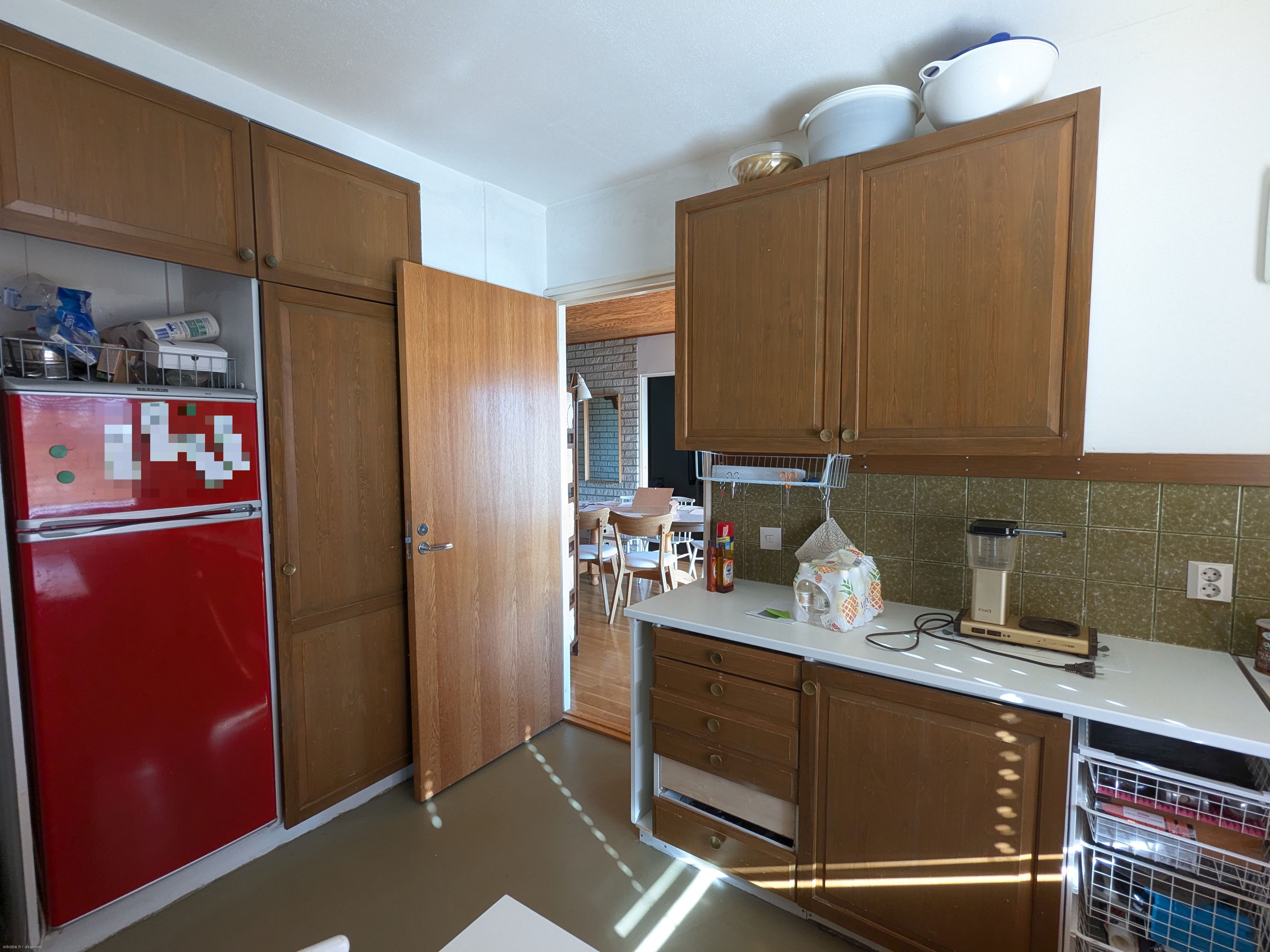 Varusteet: Jenkkikaappi, Astianpesukoneliitäntä, Astianpesukone. Liesi: Sähköliesi