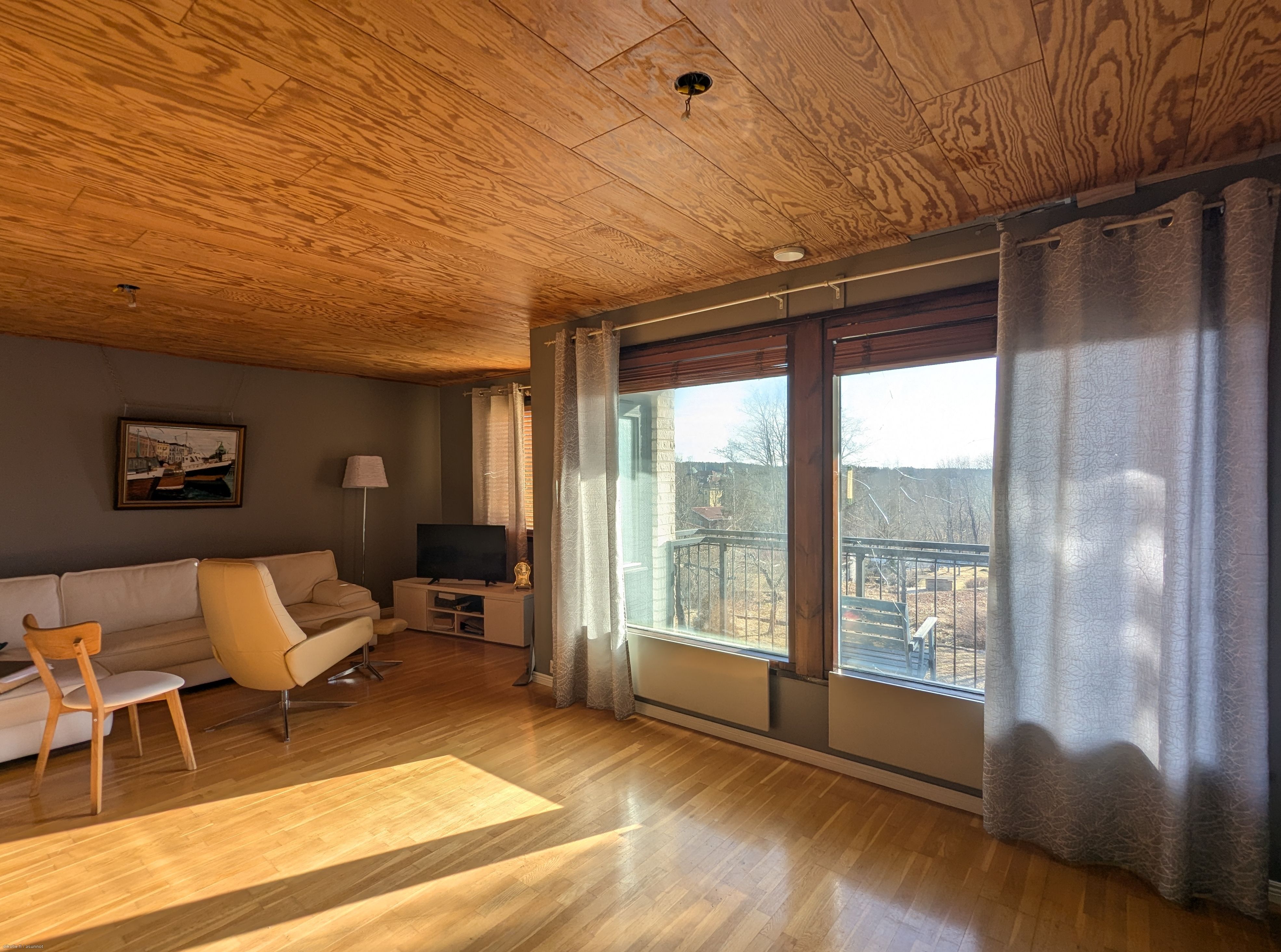Kaksikerroksisessa talossa on sisääntulo/yläkerrassa tilava ja isojen ikkunoiden ansiosta valoisa olohuone, yksi makuuhuone, wc-tila, eteinen, toimiva keittiö ja viihtyisä parveke. Lisäksi on säilytystilaa.