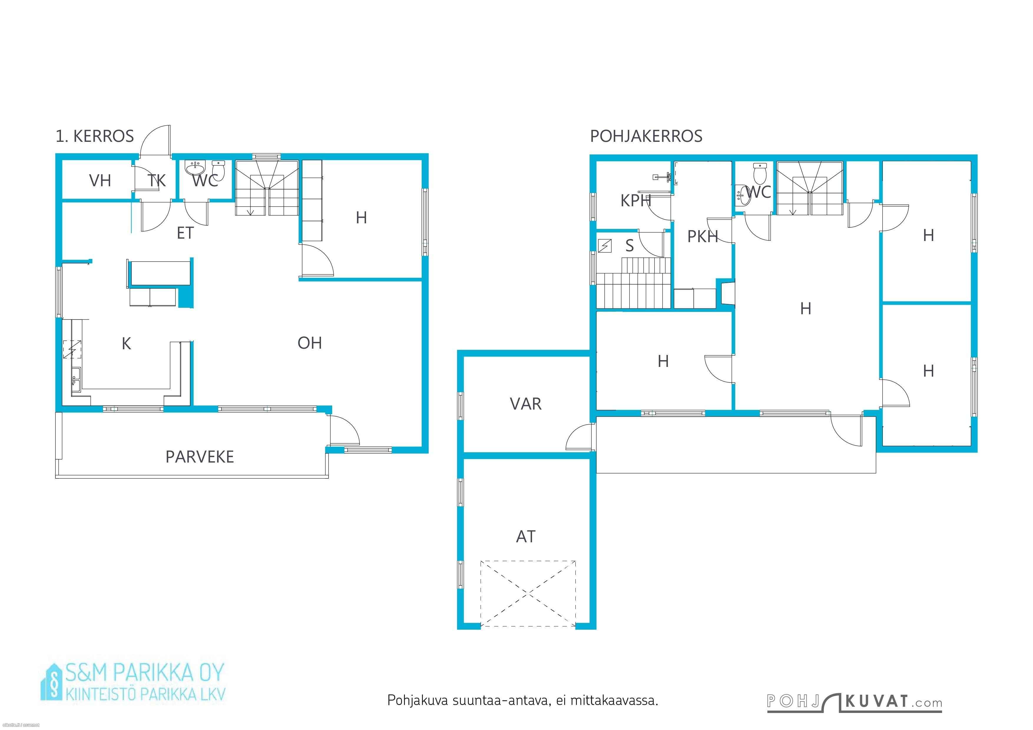 Pohjakerrokseen on sisäkautta kulku kierreportaita pitkin tai suoraa ulkoa terassin puolelta. Pohjakerroksessa on kolme makuuhuonetta, pukuhuone, kylpyhuone, sauna ja wc-tila, iso aula/takkahuone. Pohjakerroksen makuuhuoneet tällä hetkellä remontissa, jotka ostaja voi vaivattomasti saattaa loppuun oman maun mukaisiksi.
