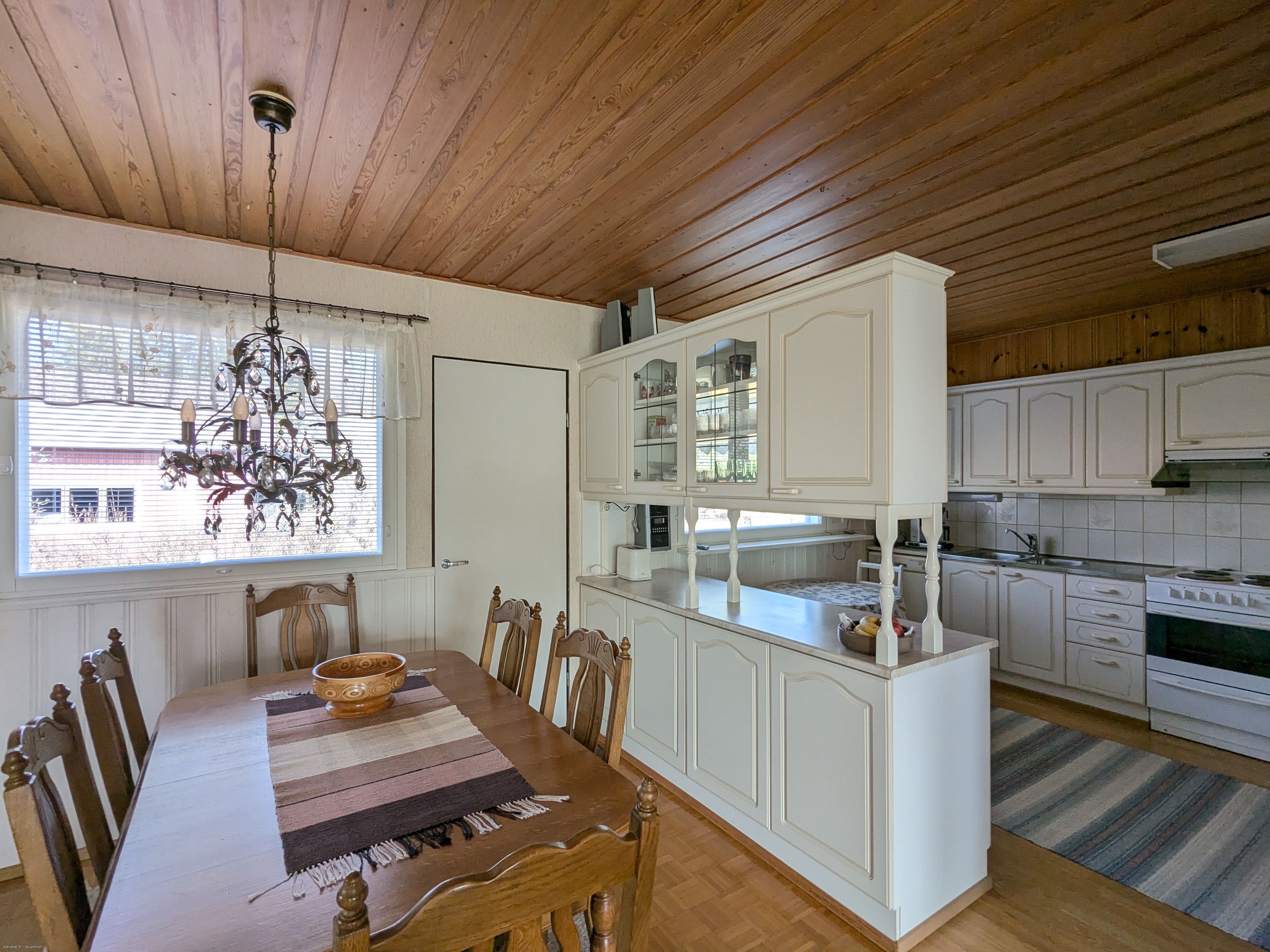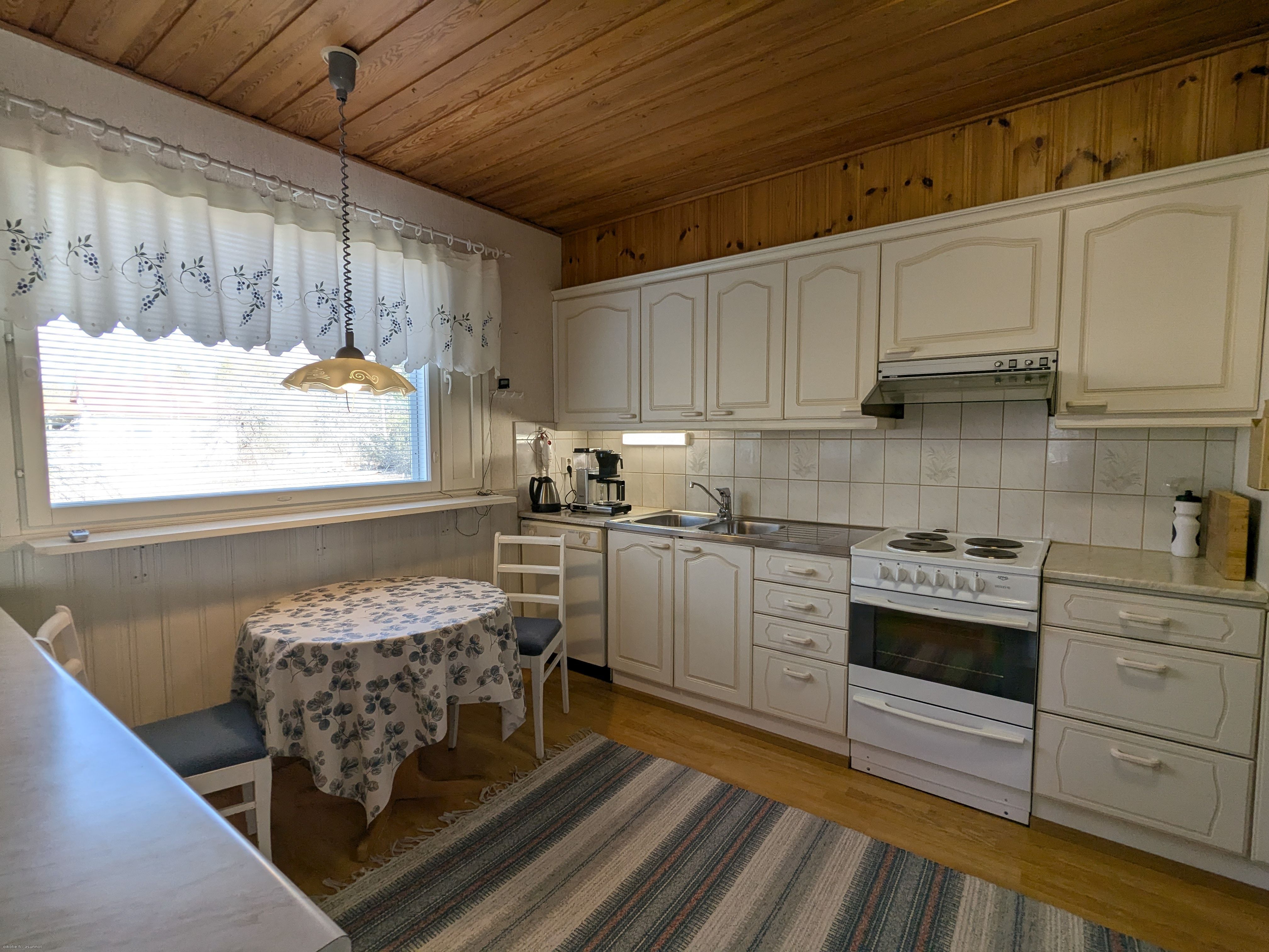 Varusteet: Jääkaappipakastin, Astianpesukone, Astianpesukoneliitäntä. Liesi: Sähköliesi. Ruokailutila: Ruokailutila
