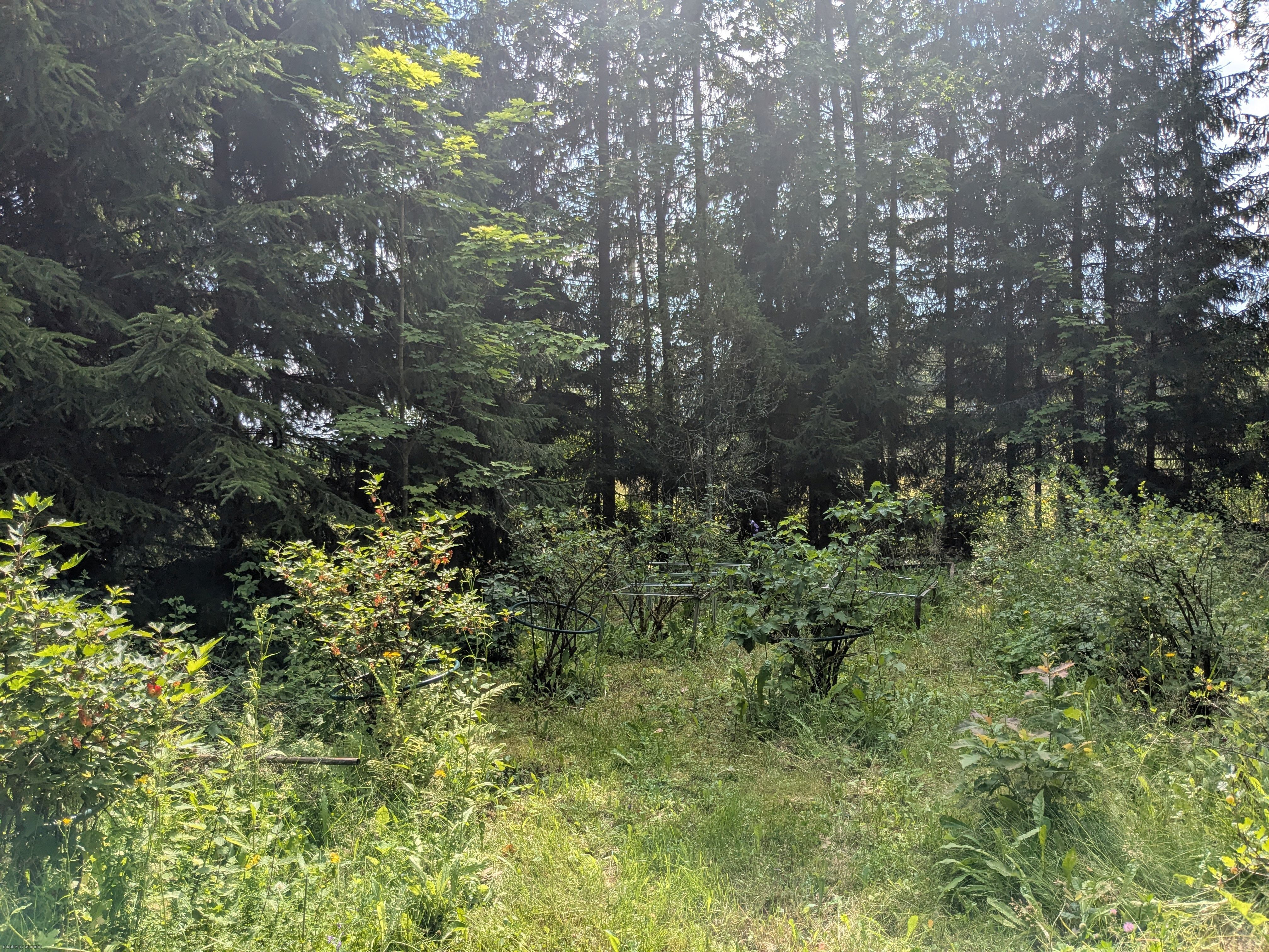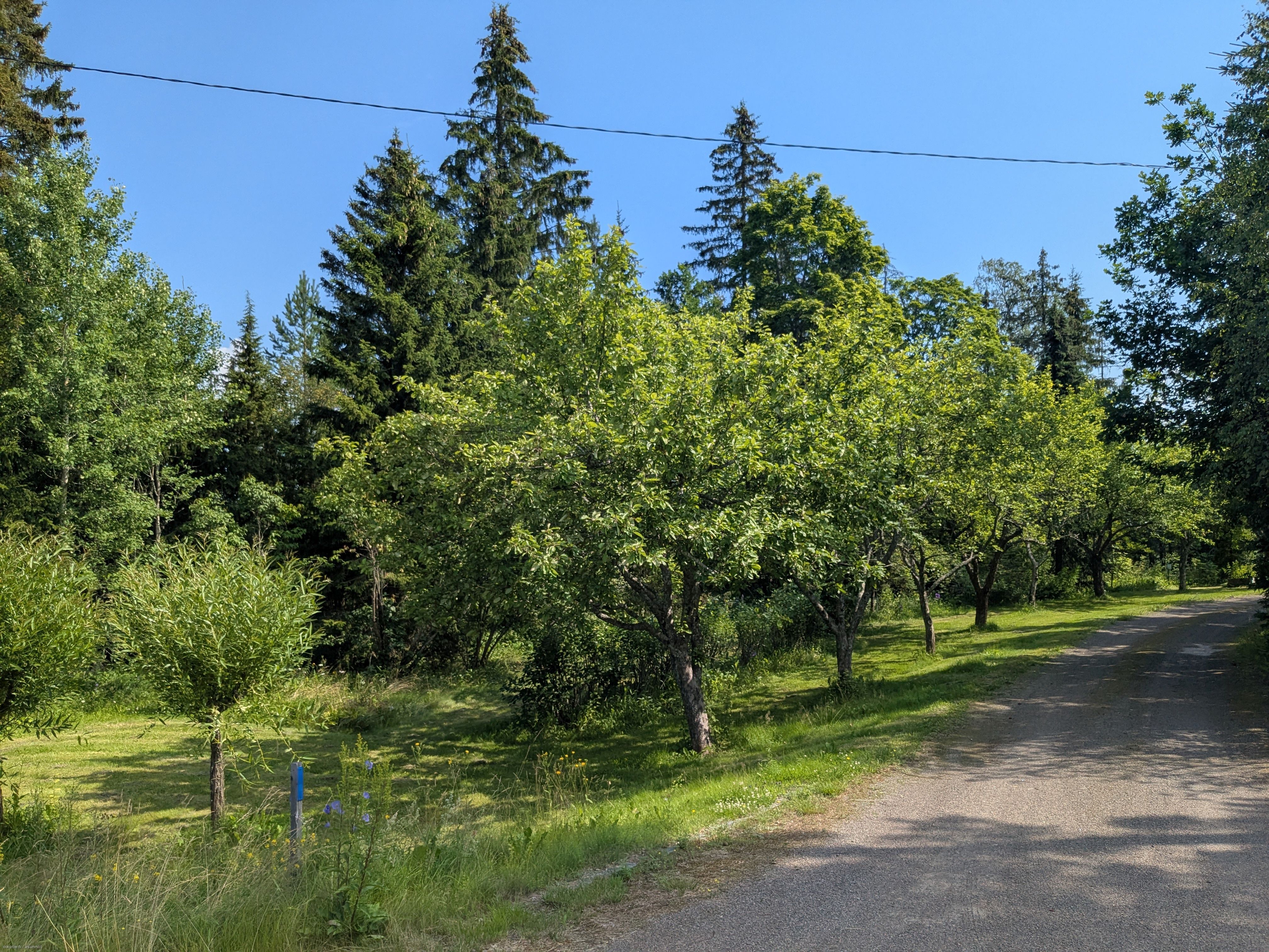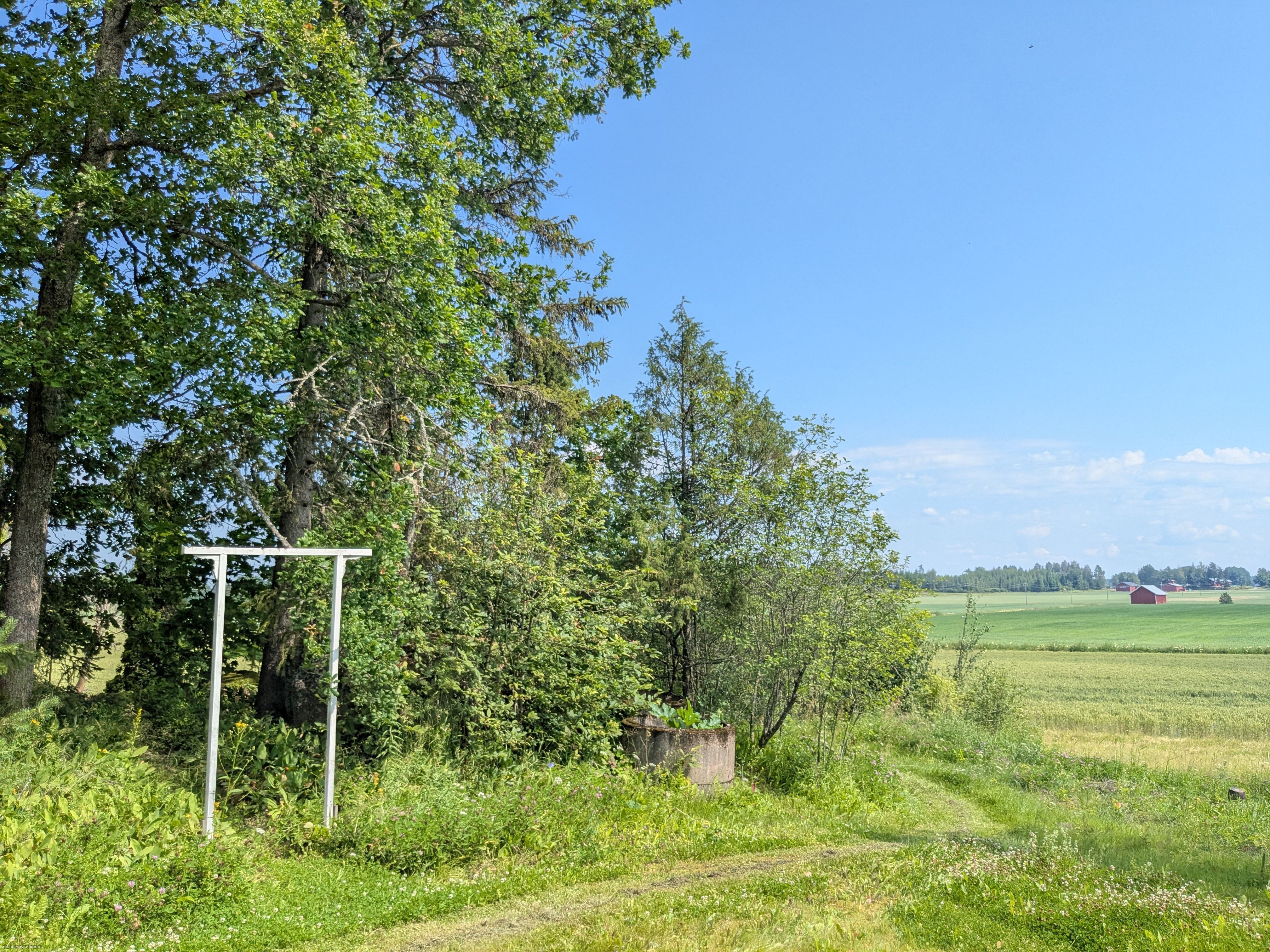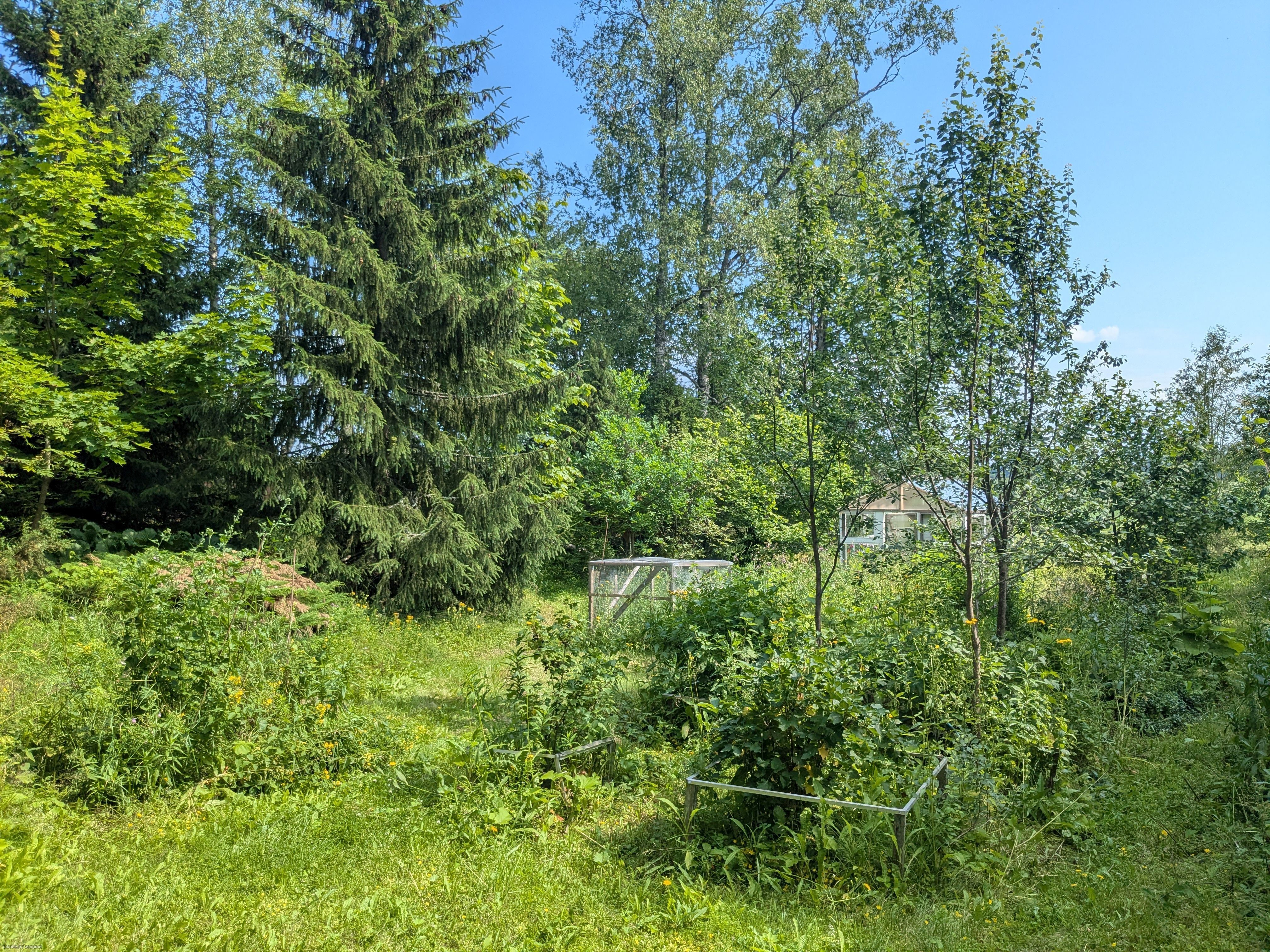 Ruokailu- sekä uima-allas tilasta kulku takapihalle. Metsikköön ja peltomaisemaan rajoittuvassa pihapiirissä on monipuolista puutarhakasvillisuutta, kasvihuone, 8 omenapuuta ja paljon muuta. Pellonlaidalla sijaitsevalta grillipaikalta ja puutarhasta aukeaa kaunis maalaismaisema. Asuinrakennuksen yhteydessä on varastotiloja sekä lämmin ja vesipisteellinen autotalli, jonka edessä sijaitsevalla hiekkapihalla pysäköintitilaa useammalle autolle.