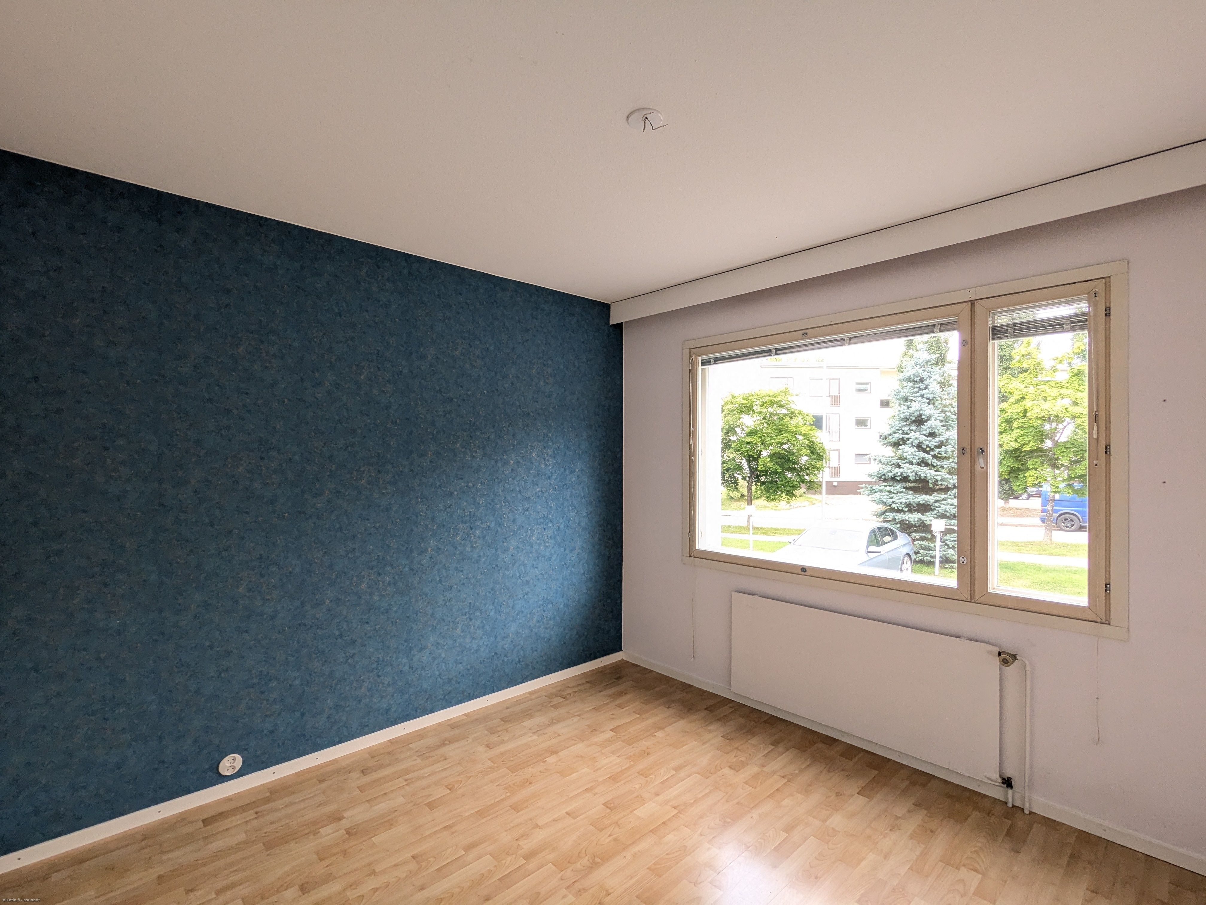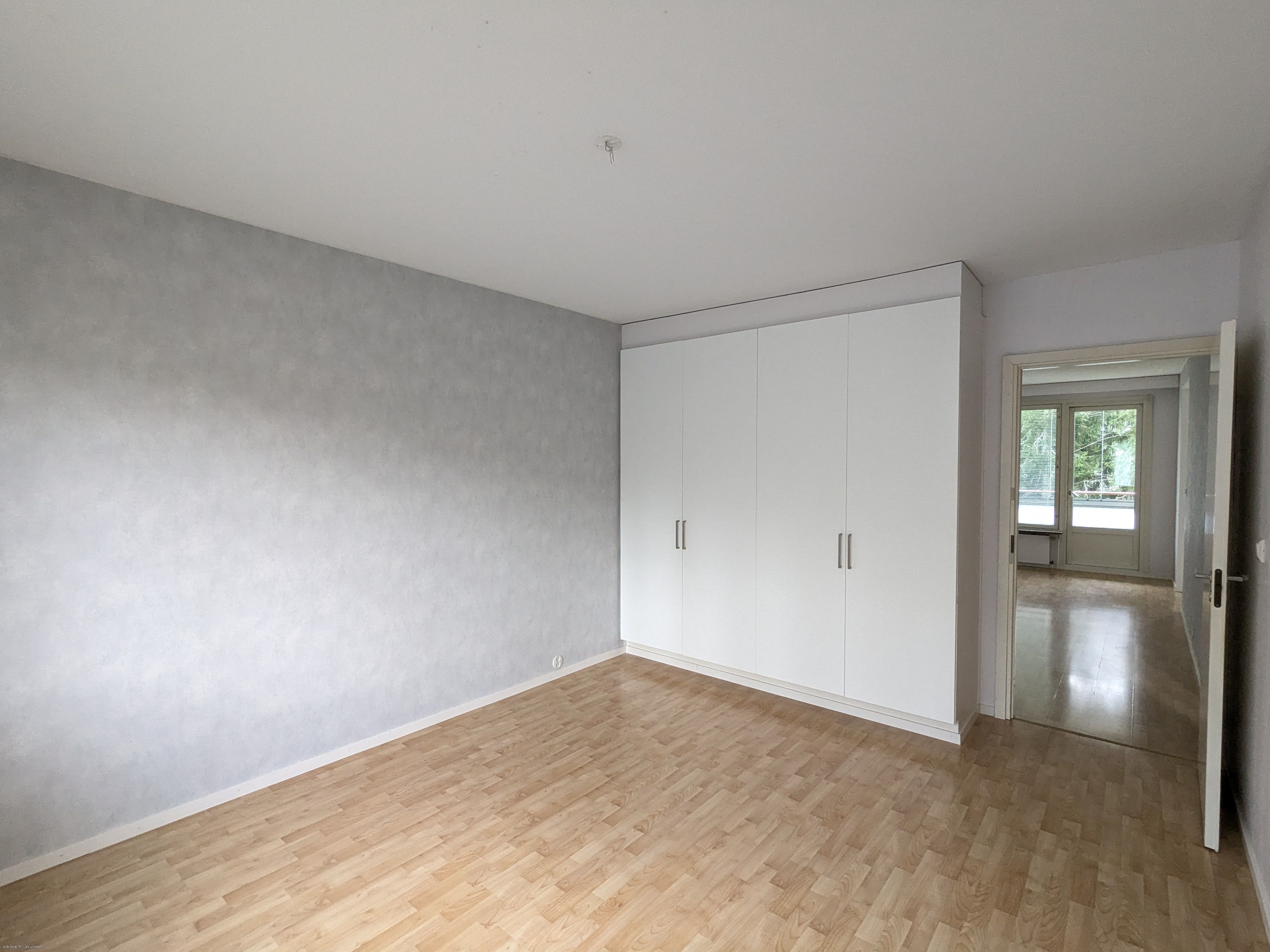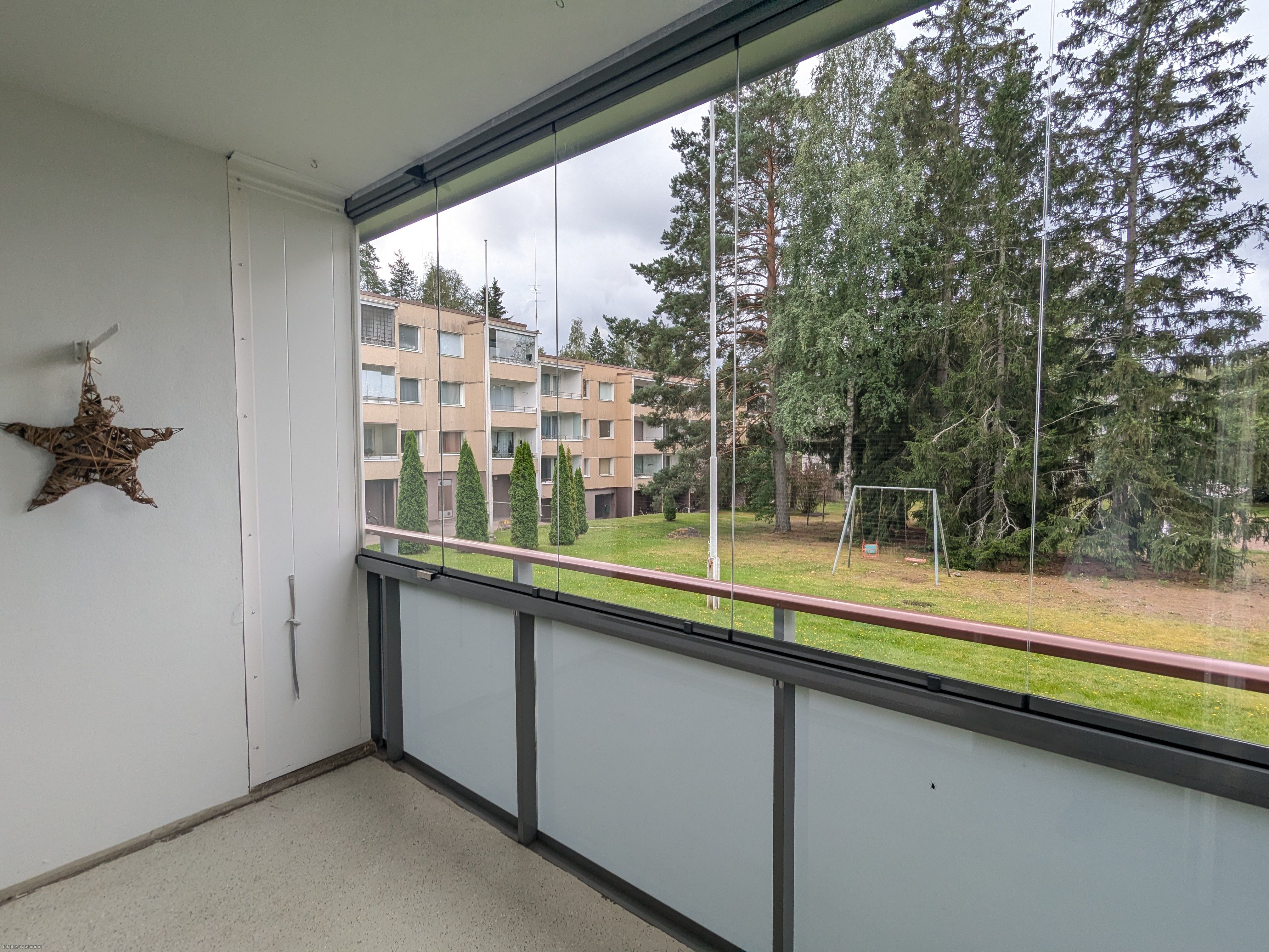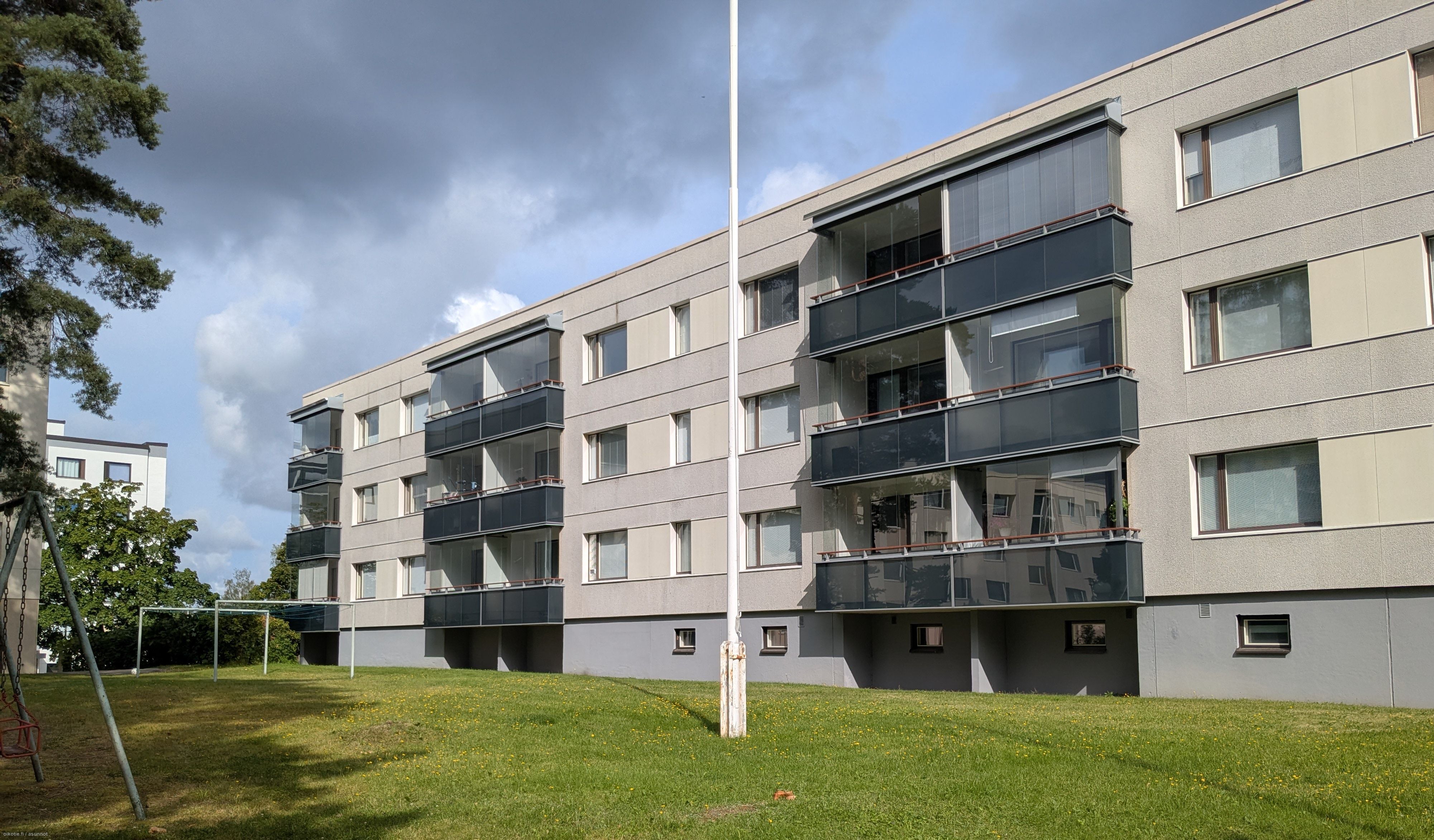 Kaksi tilavaa makuuhuonetta ja ison olohuoneen käsittävä kolmio vailla uusia asukkaita. Tilavassa keittiössä on jääkaappi/pakastin sekä astianpesukone sekä runsaasti työskentely- ja kaappitilaa. Laatoitetun kylpyhuoneen yhteyteen tehty oma sauna. Viihtyisä lasitettu parveke talon sisäpihan suuntaan.