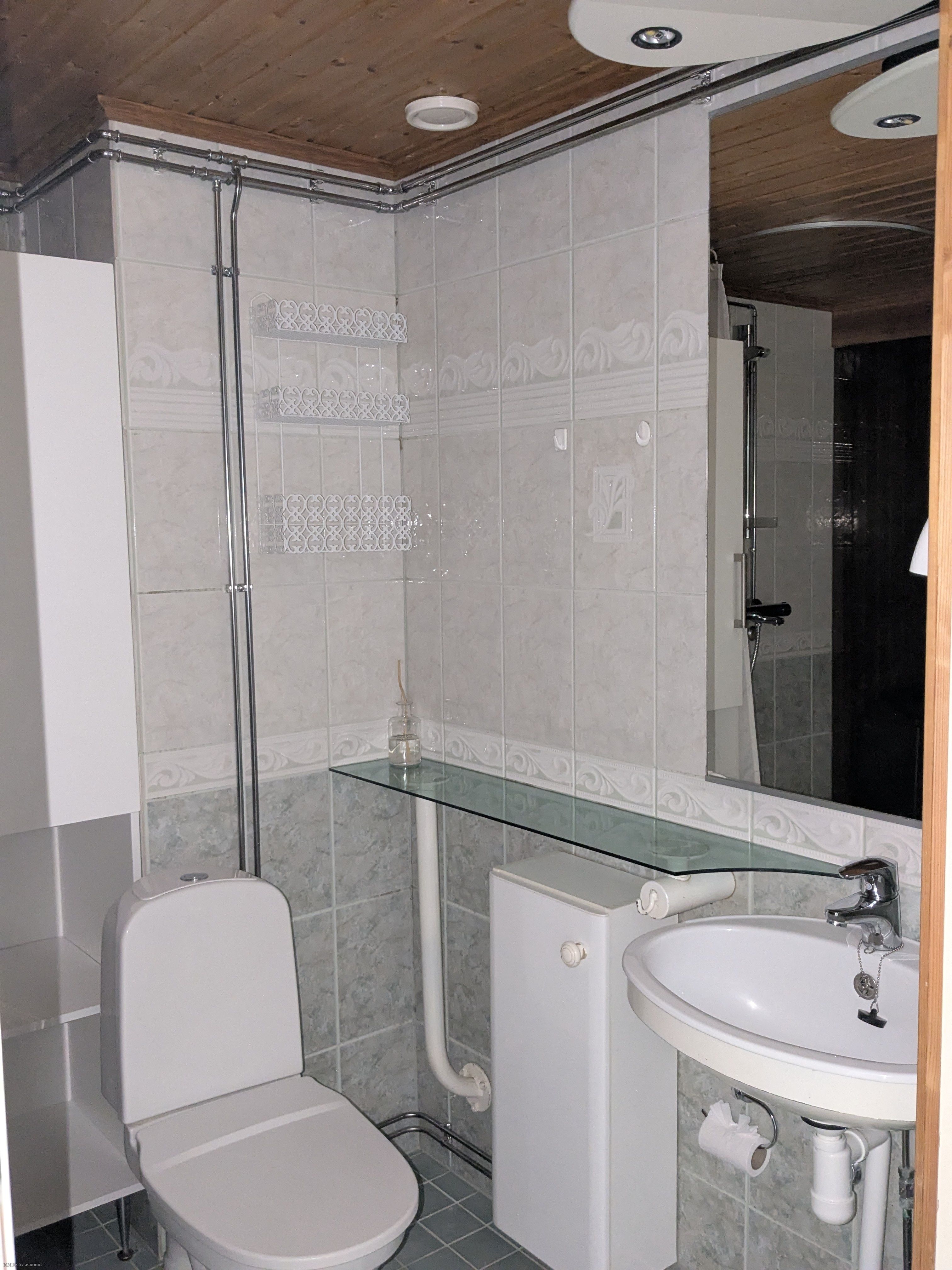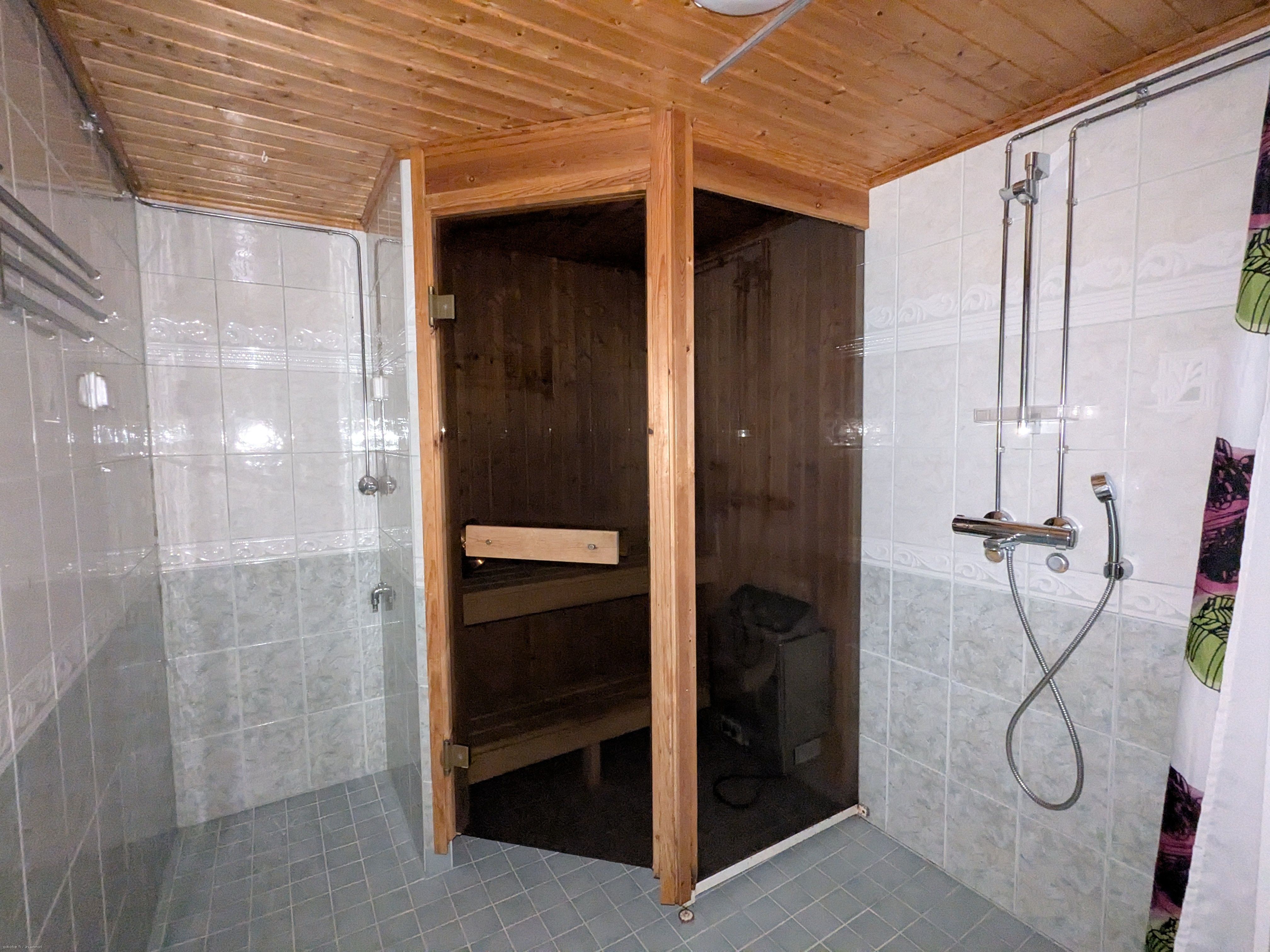 Varusteet: Sähkökiuas. Lattiamateriaali: Laminaattilattia
