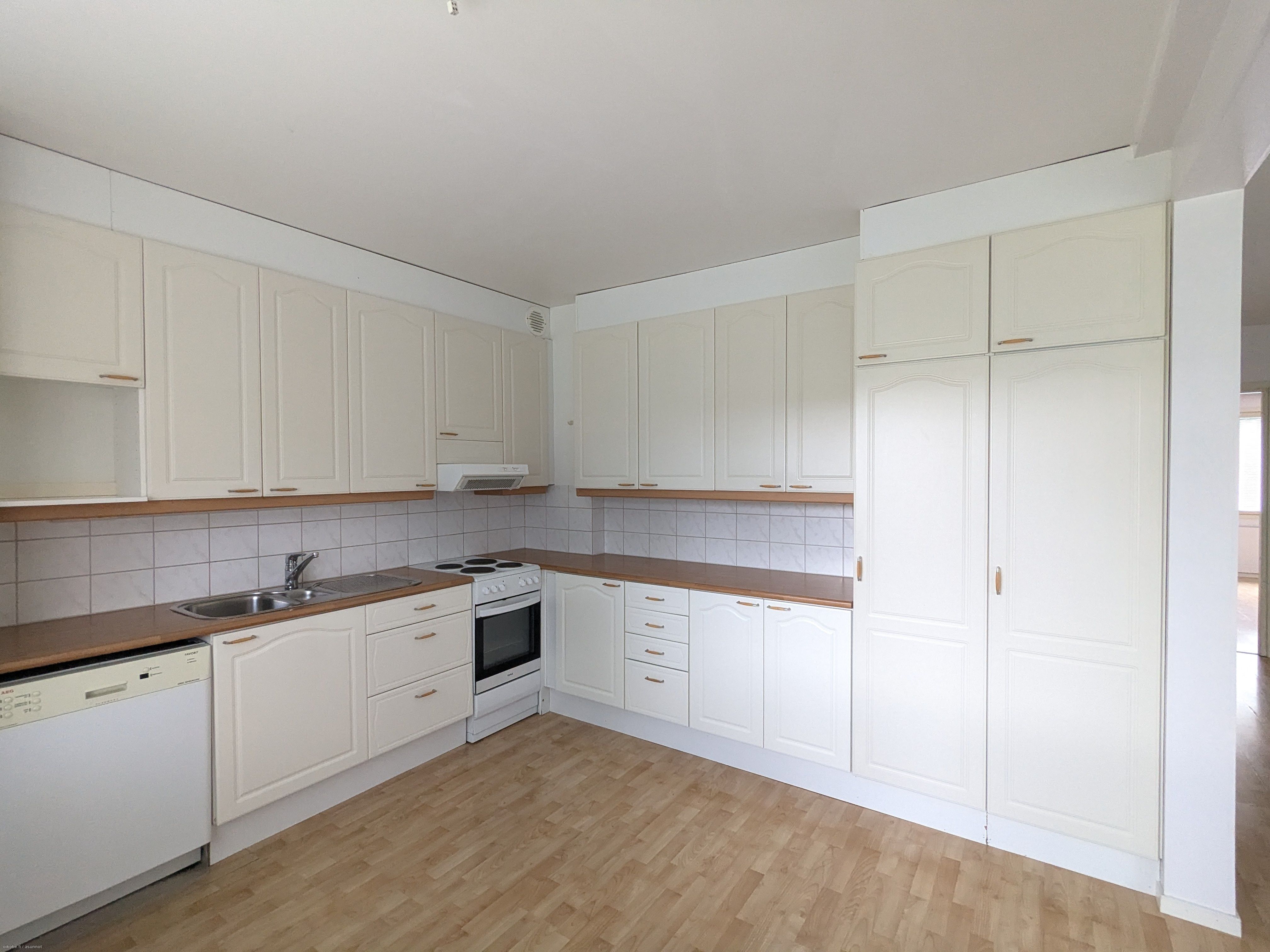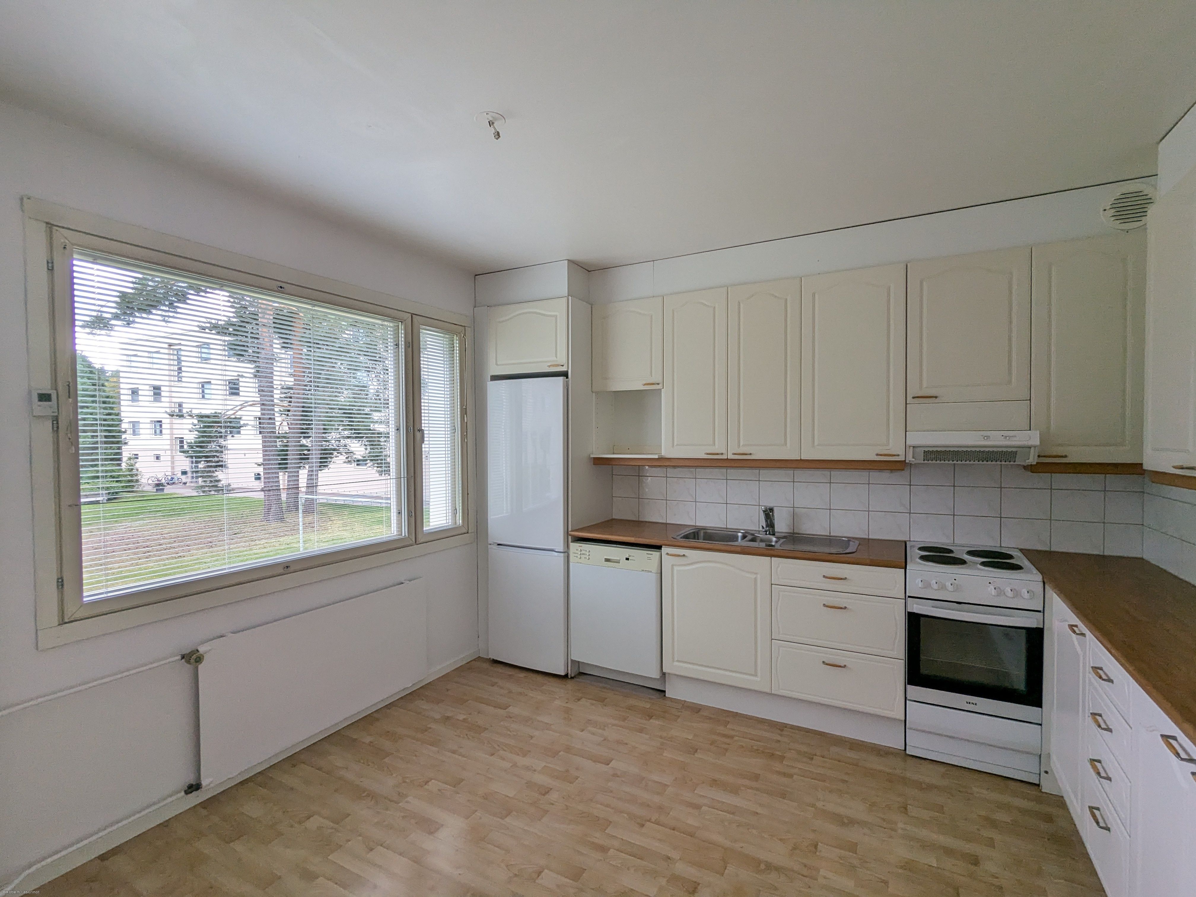 Varusteet: Jääkaappipakastin, Pesukoneliitäntä, Astianpesukone. Liesi: Sähköliesi