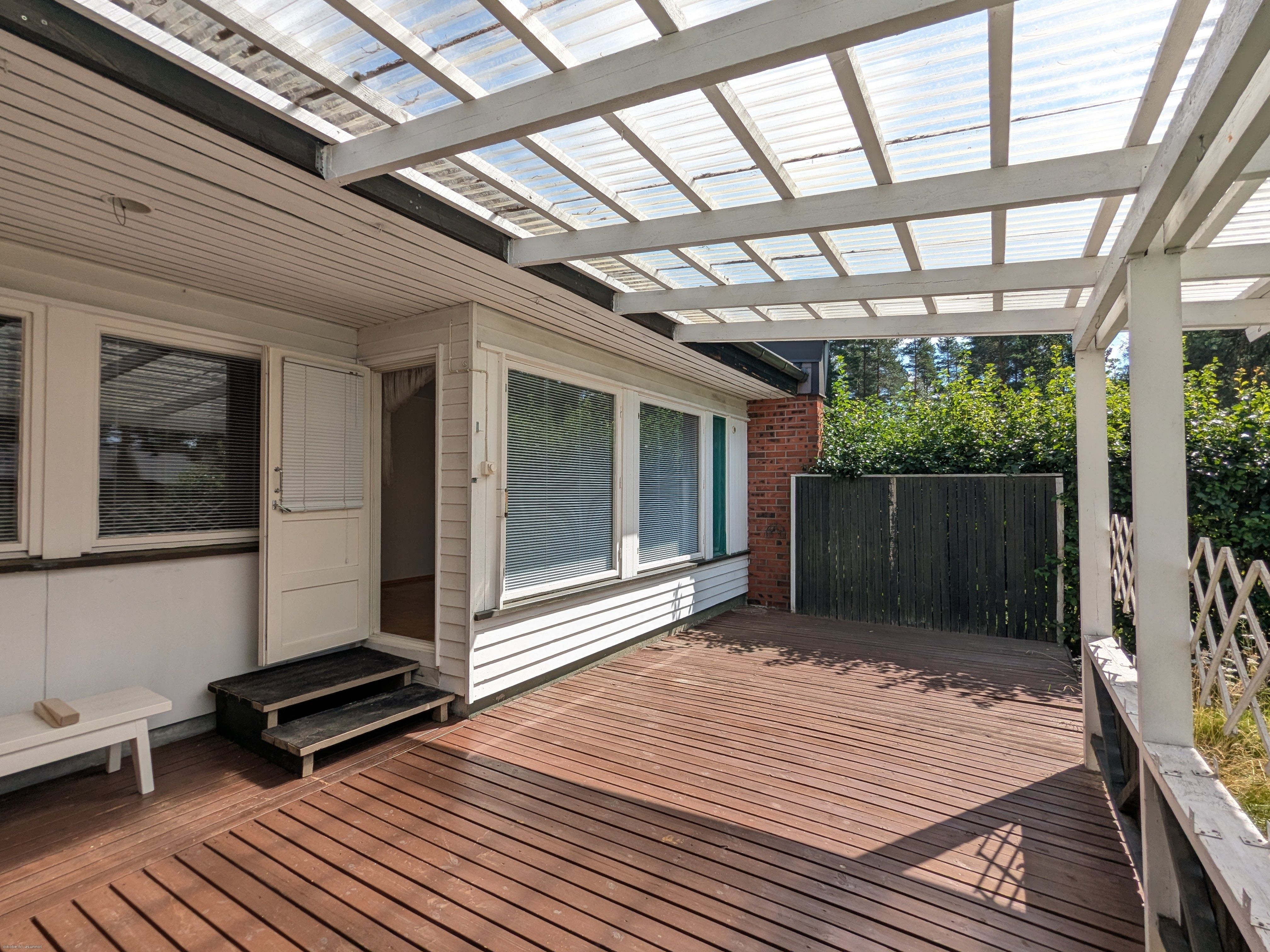 Takapihan puolella on laaja katettu terassialue ja iso oma piha-alue. Myös etupihan puolella suojaisa ja pensasaidattu piha-alue. Asunon lisäksi huoneistokohtaiset varastotilat sekä oma autotalli. Taloyhtiössä sauna.