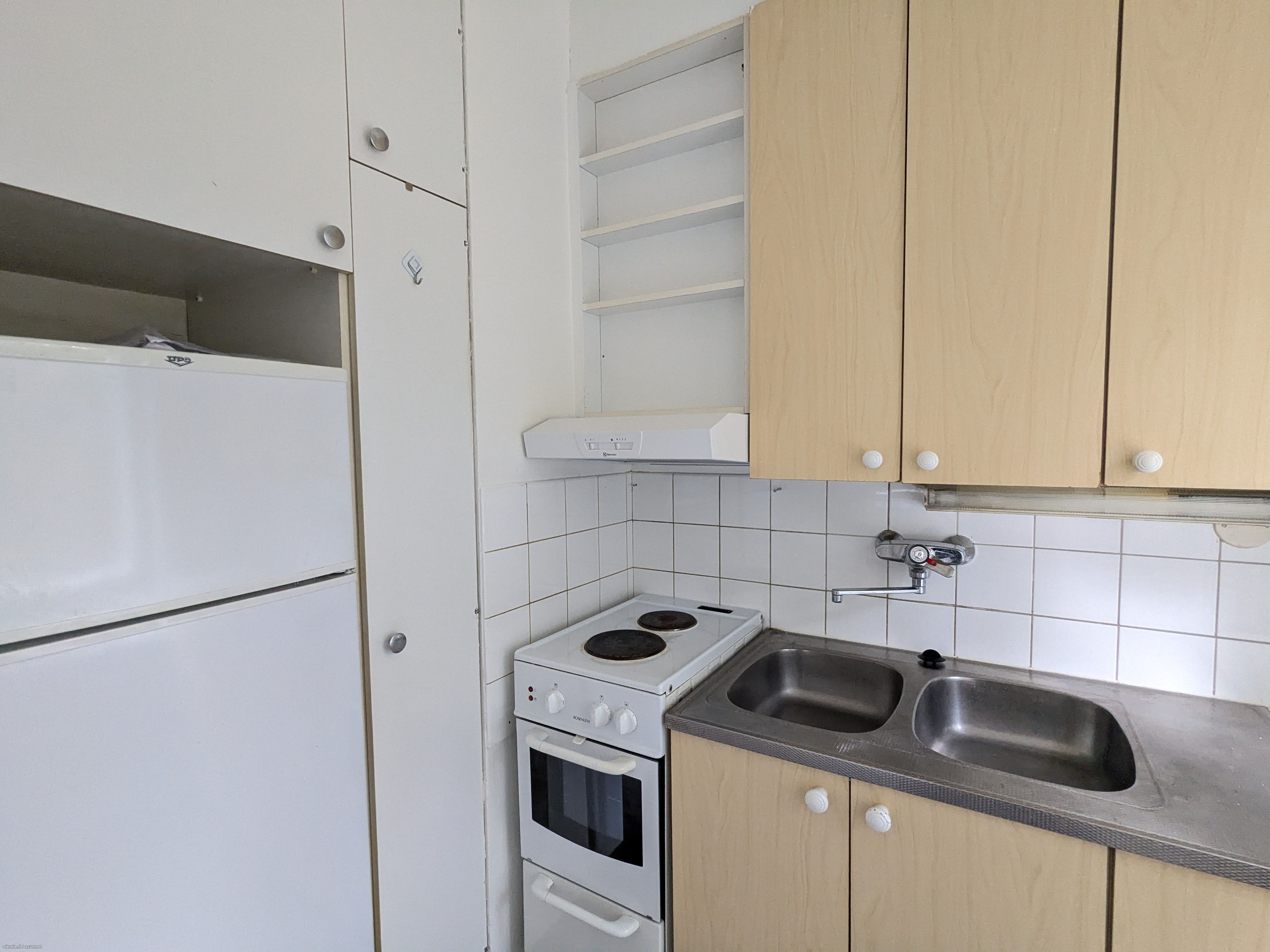 Varusteet: Jenkkikaappi. Liesi: Sähköliesi