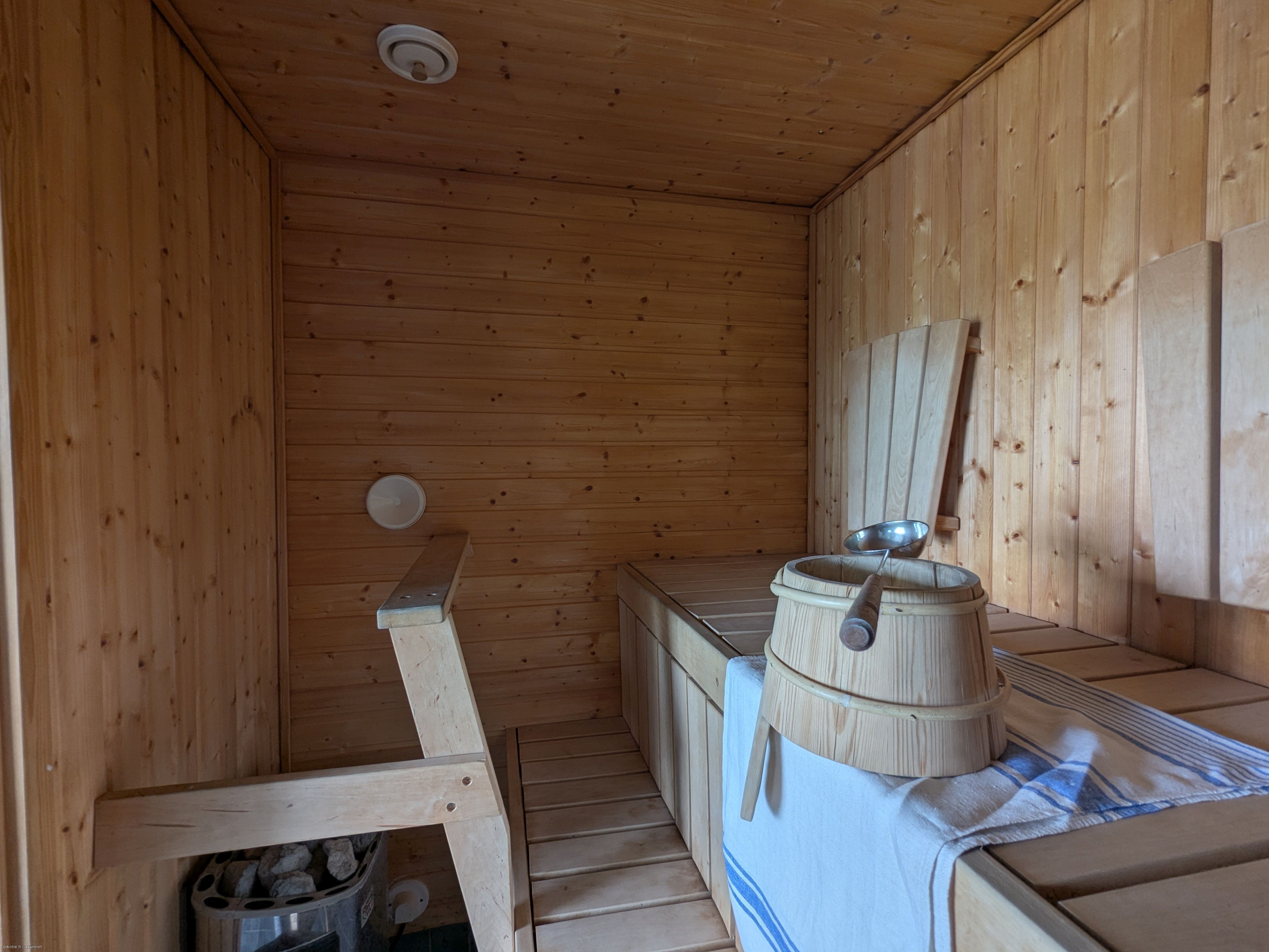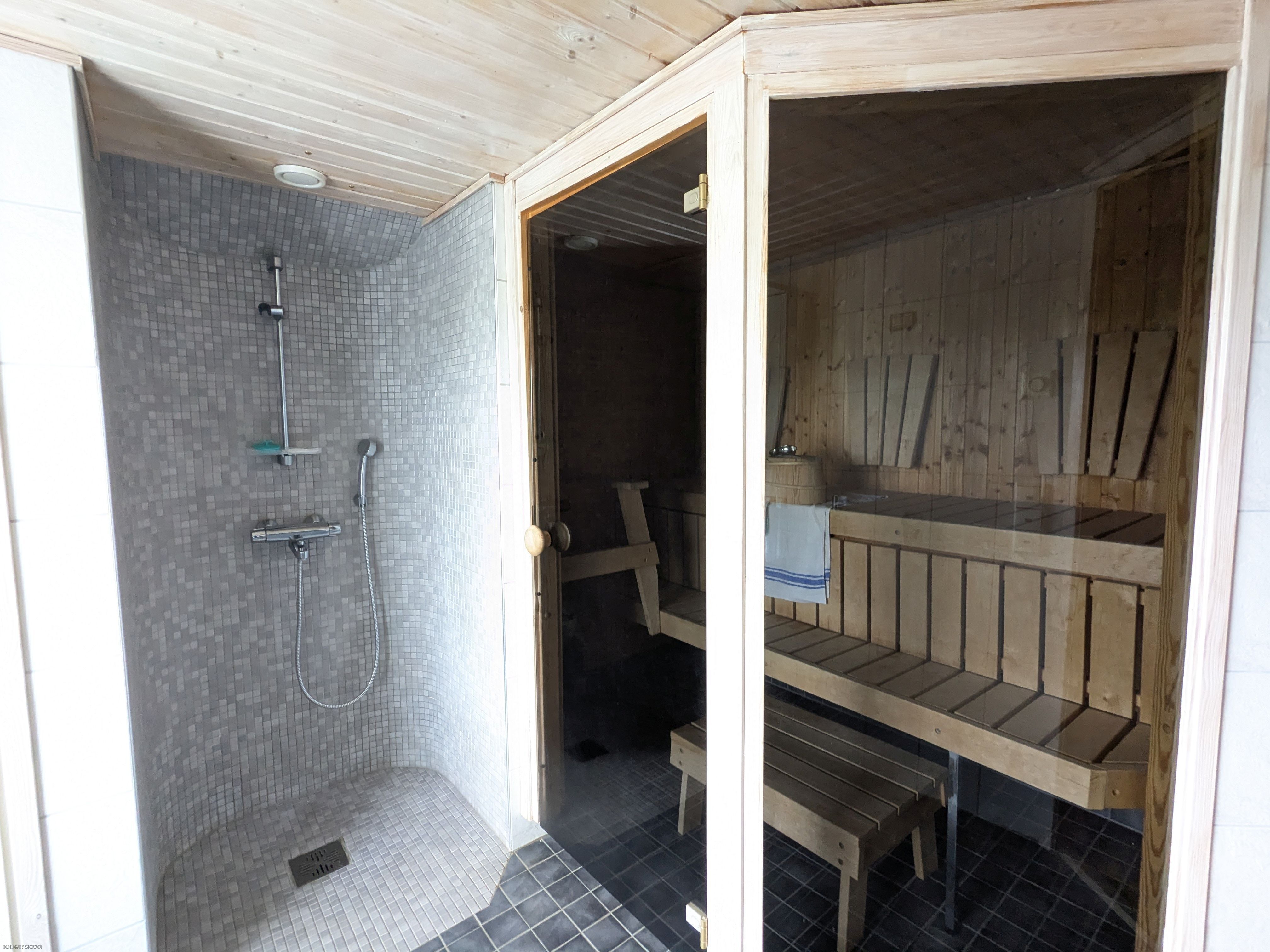 Varusteet: Sähkökiuas. Asuinrakennuksen yläkerrassa sähkökiuas sauna. Ulkorakennuksessa puukiuas sauna.