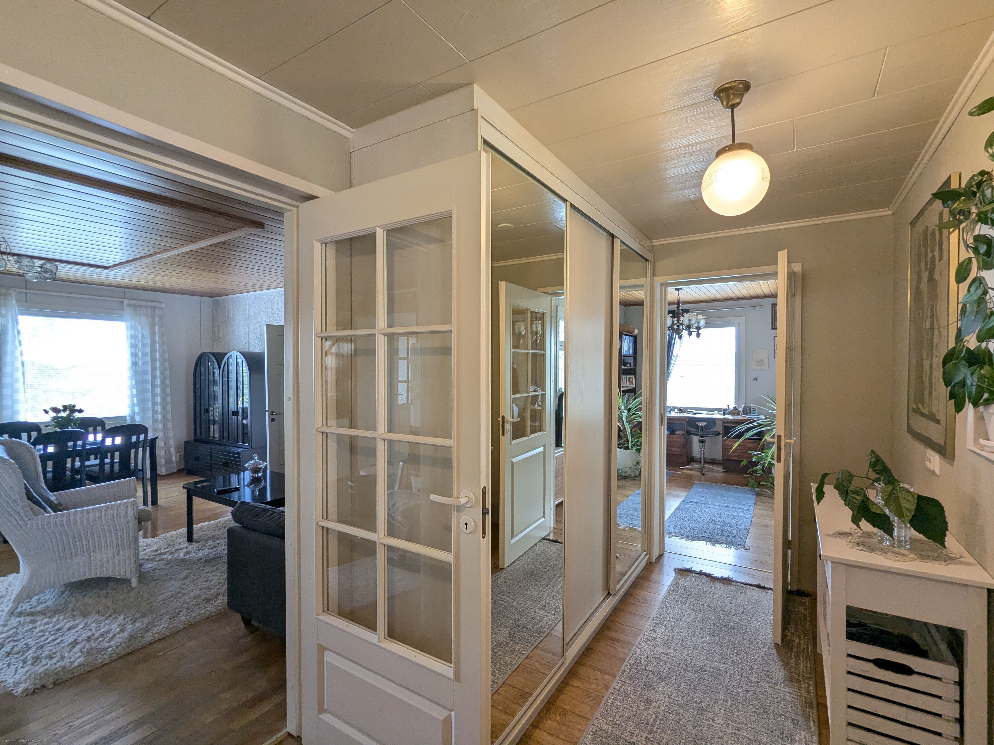 Monista hyväkuntoisista rakennuksista koostuva suojaisa maalaispihapiiri, jossa on iso ulkorakennus, varasto-aitta, hirsirunkoinen ja saunatuvallinen ulkosauna, jossa on puukiuas.