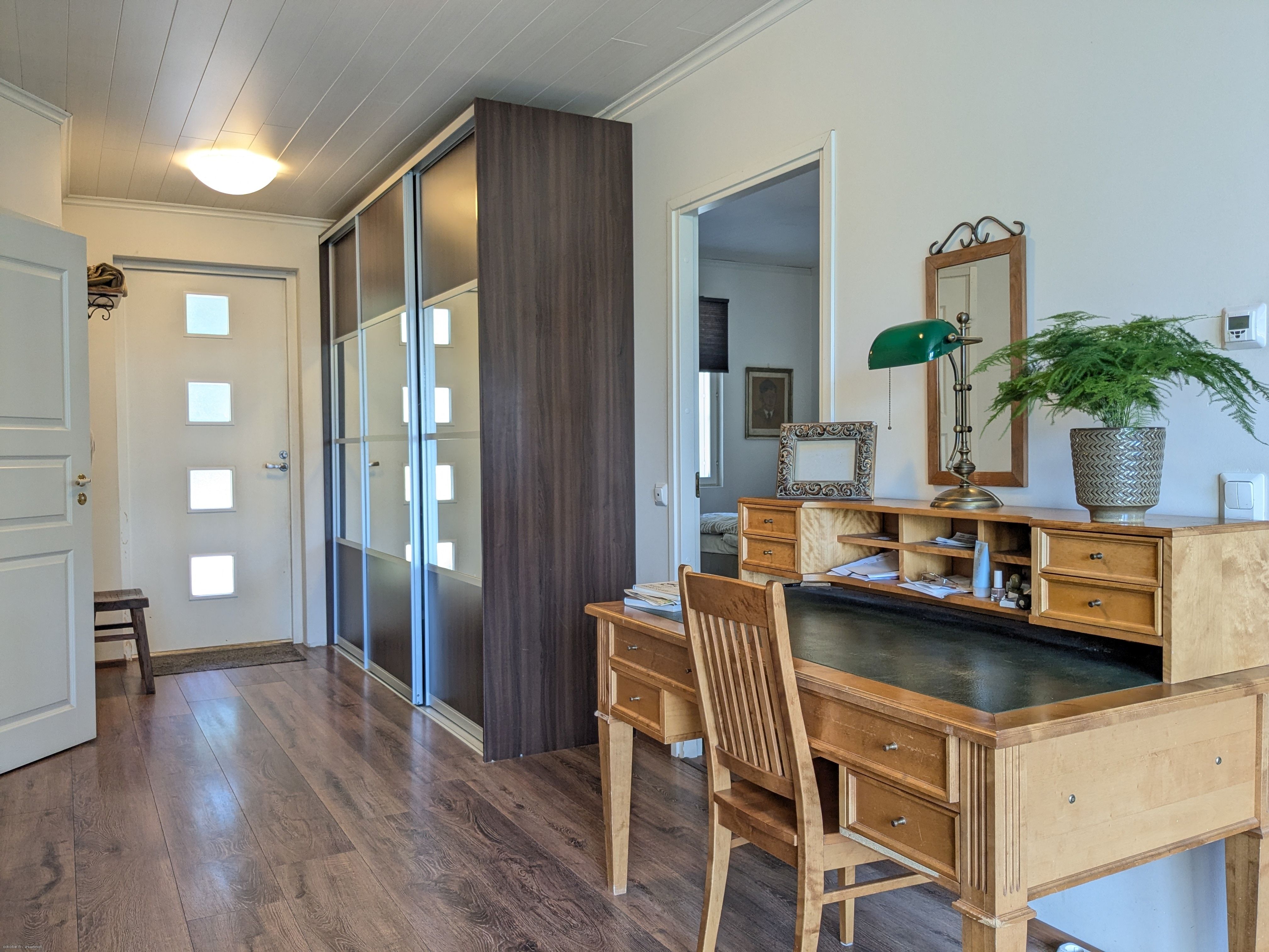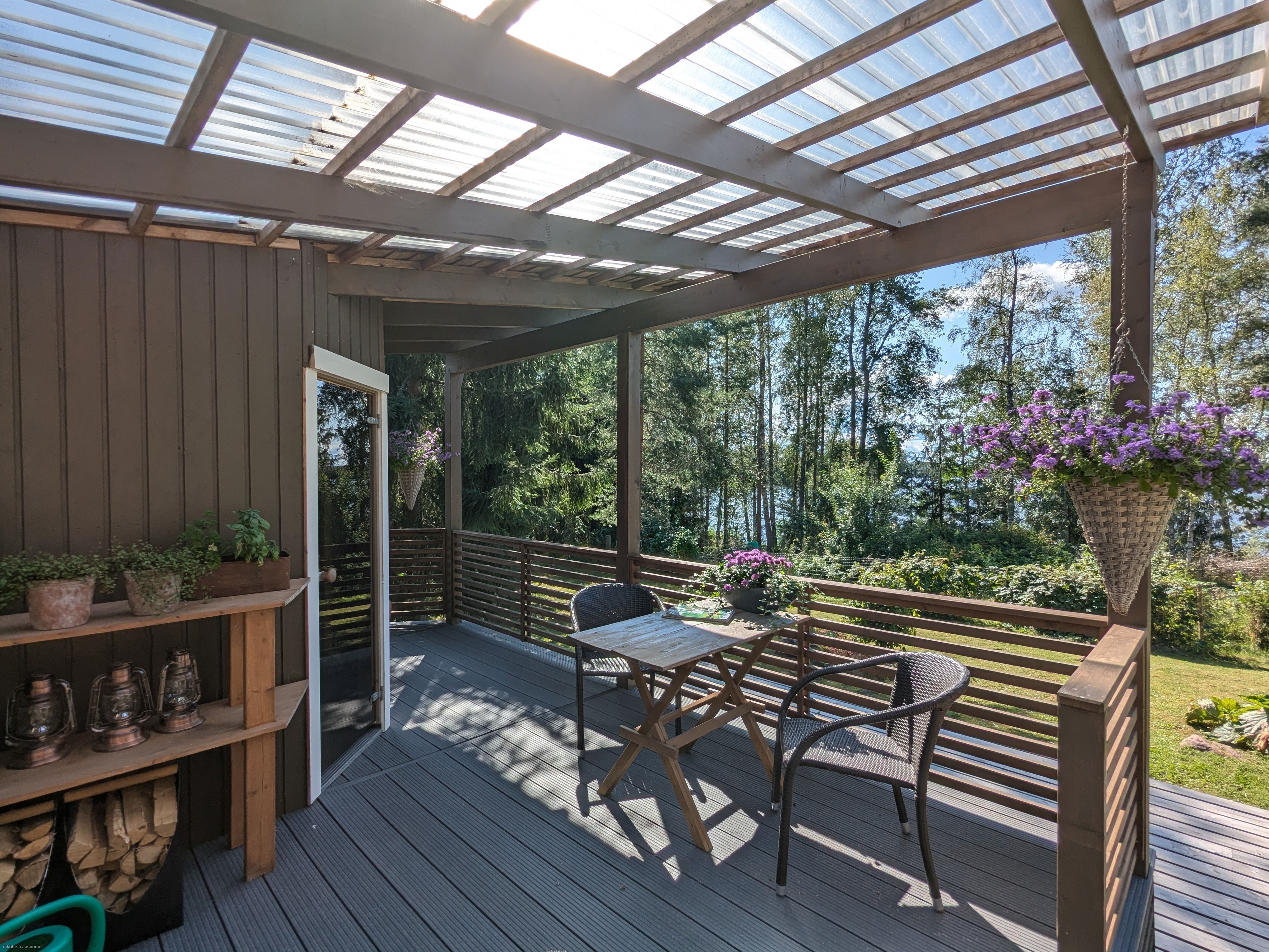 Pääset autolla pihaan melkein asfalttitietä pitkin ja rantaan menevä hiekkatie on valaistu. Hyväkuntoisessa kodissa on kaikki asuintilat toimivasti yhdessä tasossa ja lämpöä sekä tunnelmaa luova varaava takka keskellä taloa. Avara yhtenäinen olohuone ja keittiötila, 2 makuuhuonetta sekä sähkölämmitteinen sauna ja kodinhoitohuone. Ullakolle mahdollisuus rakentaa lisää nukkumatilaa. Tontilla on oma porakaivo sekä WehoPuts -pienpuhdistamo.