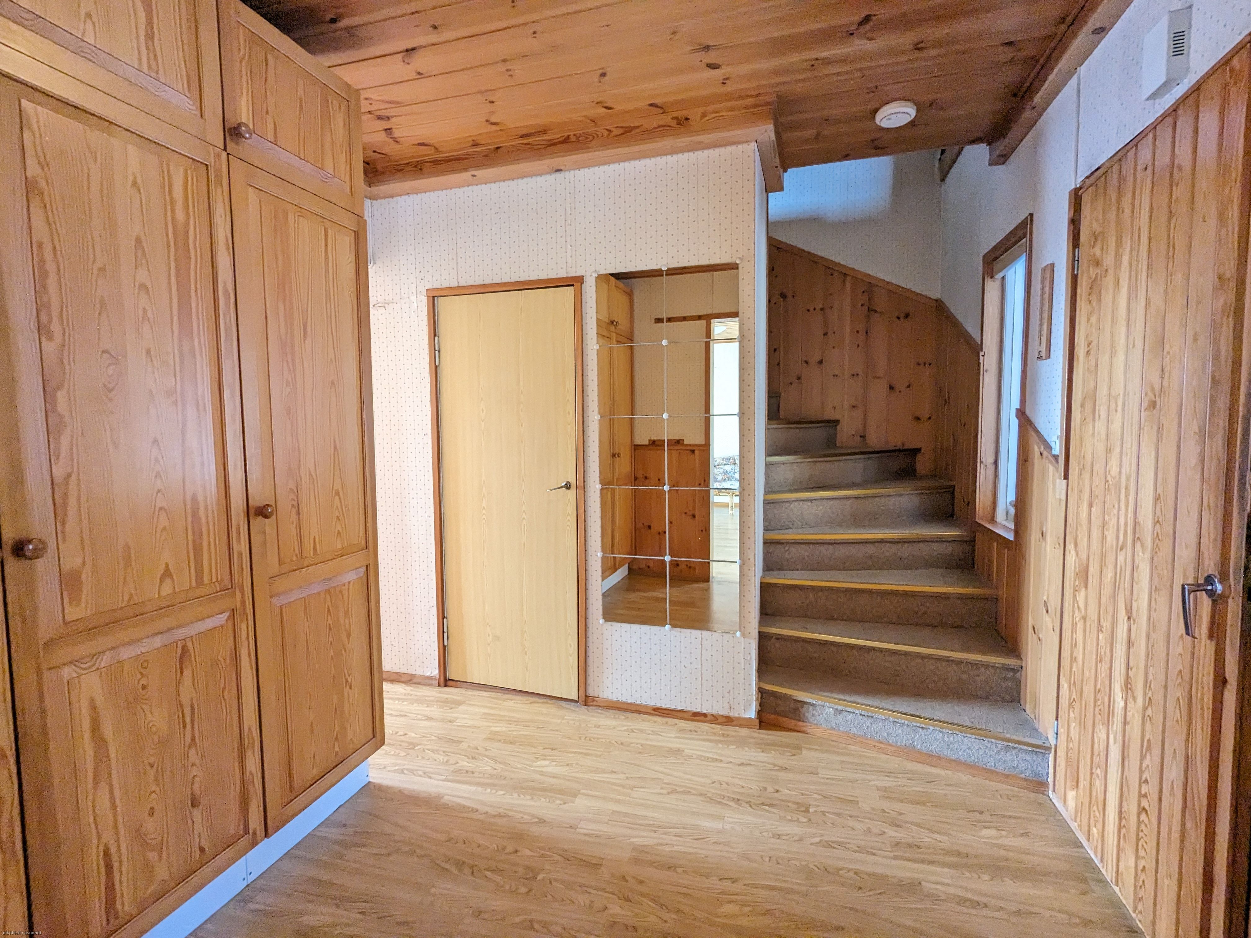 Kaksitasoisessa talossa on alakerrassa eteinen, keittiö sekä iso olohuone. Olohuoneessa varaava takka ja keittiössä puuhella! Keittiön yhteydessä kellaritila. Yläkerrassa on aula, kolme asuinhuonetta sekä vinttitilat.