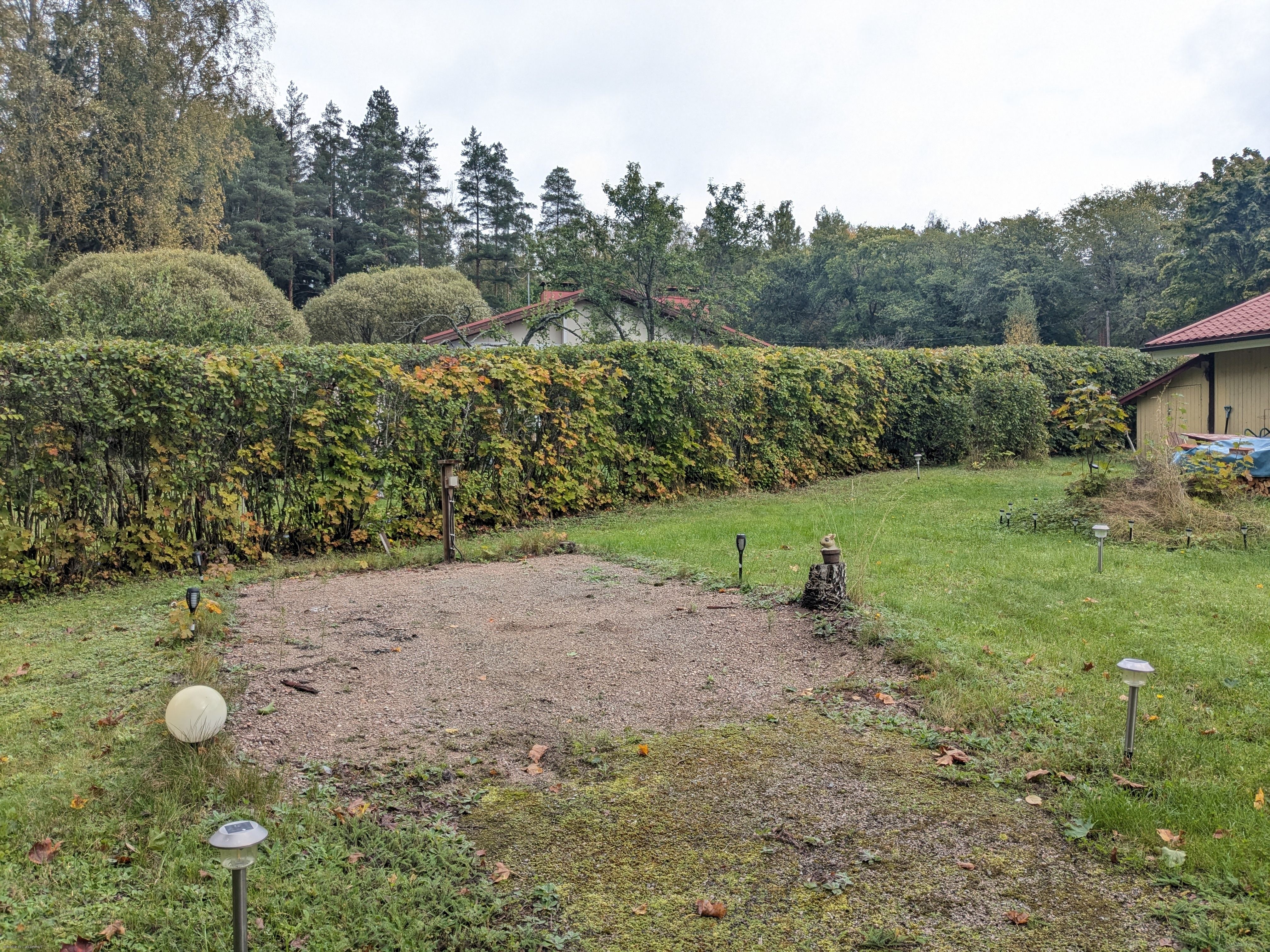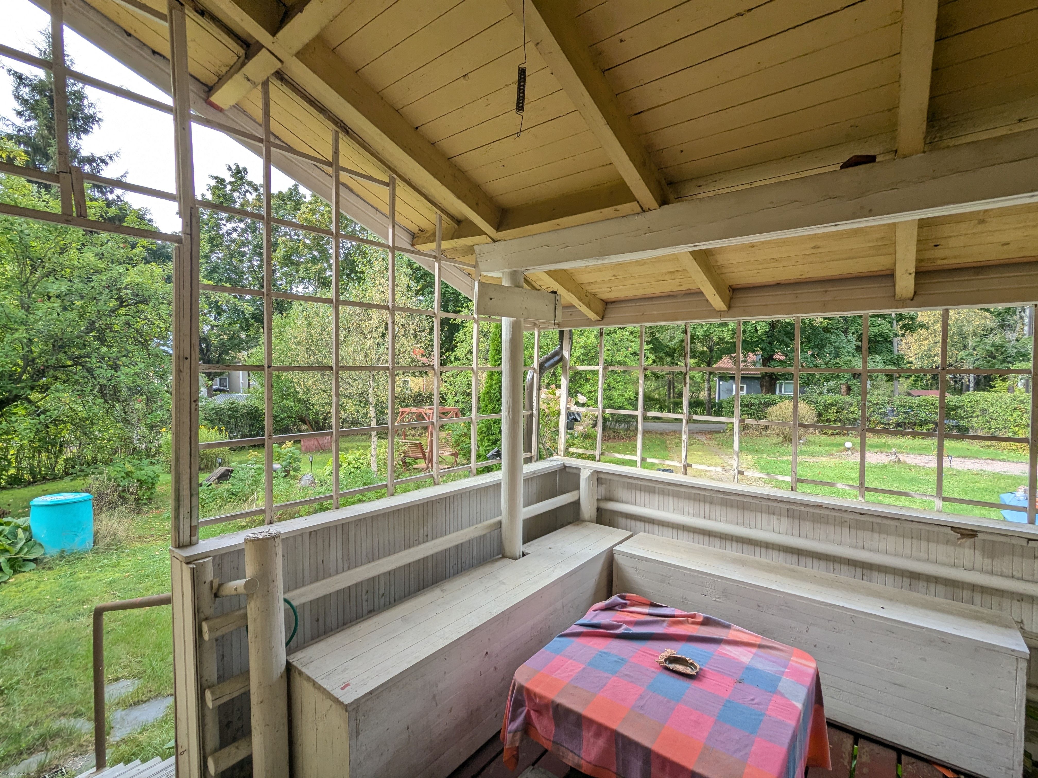 Aurinkoisessa ja suojaisassa pihapiirissä on mm. grillipaikka, useita omenapuita, marjapensaita ja kaunista kasvillisuutta. Sähköpistokkeellinen autopaikka etupihalla. Rakennuksen yhteydessä katettu kuisti.
