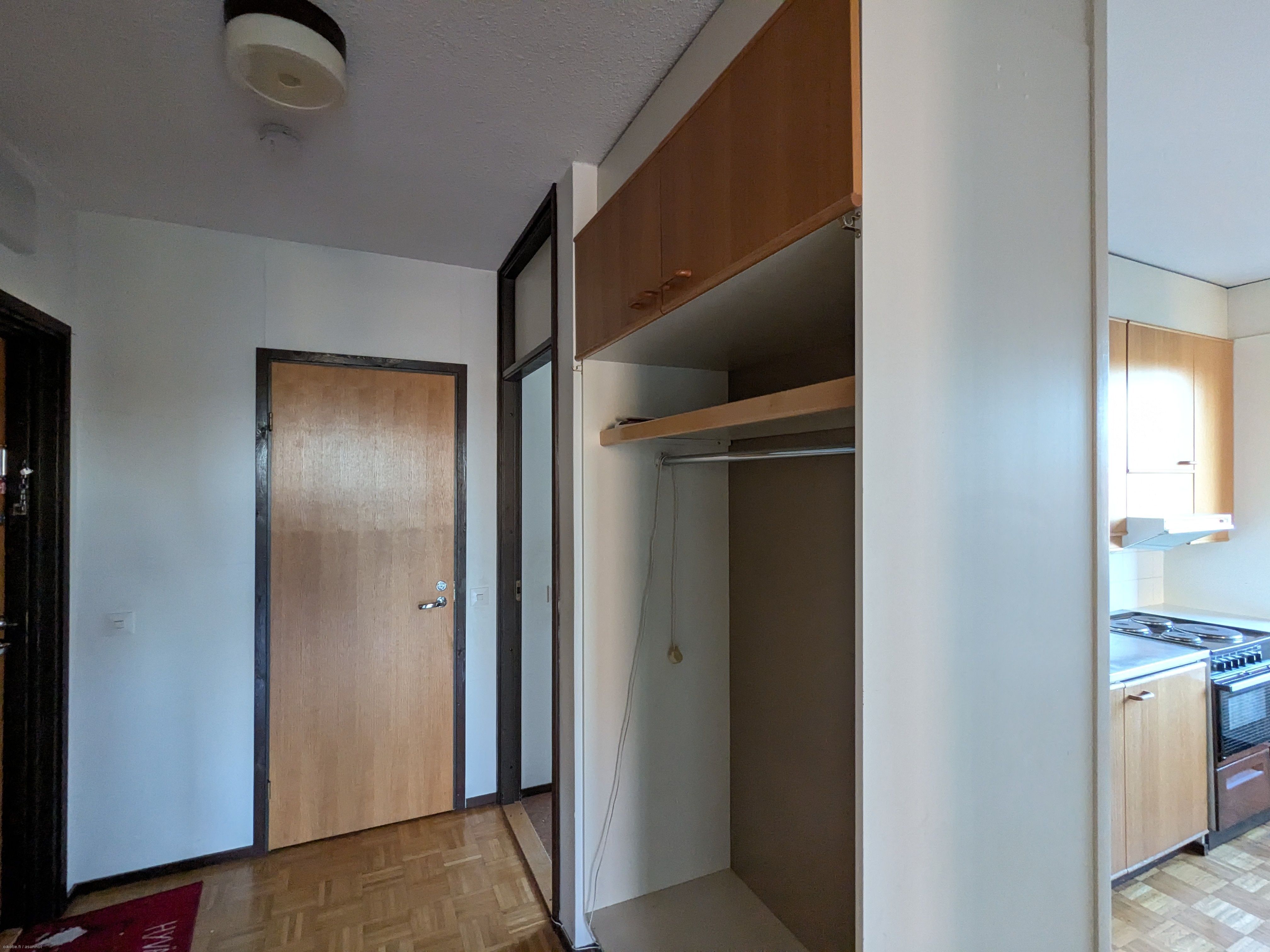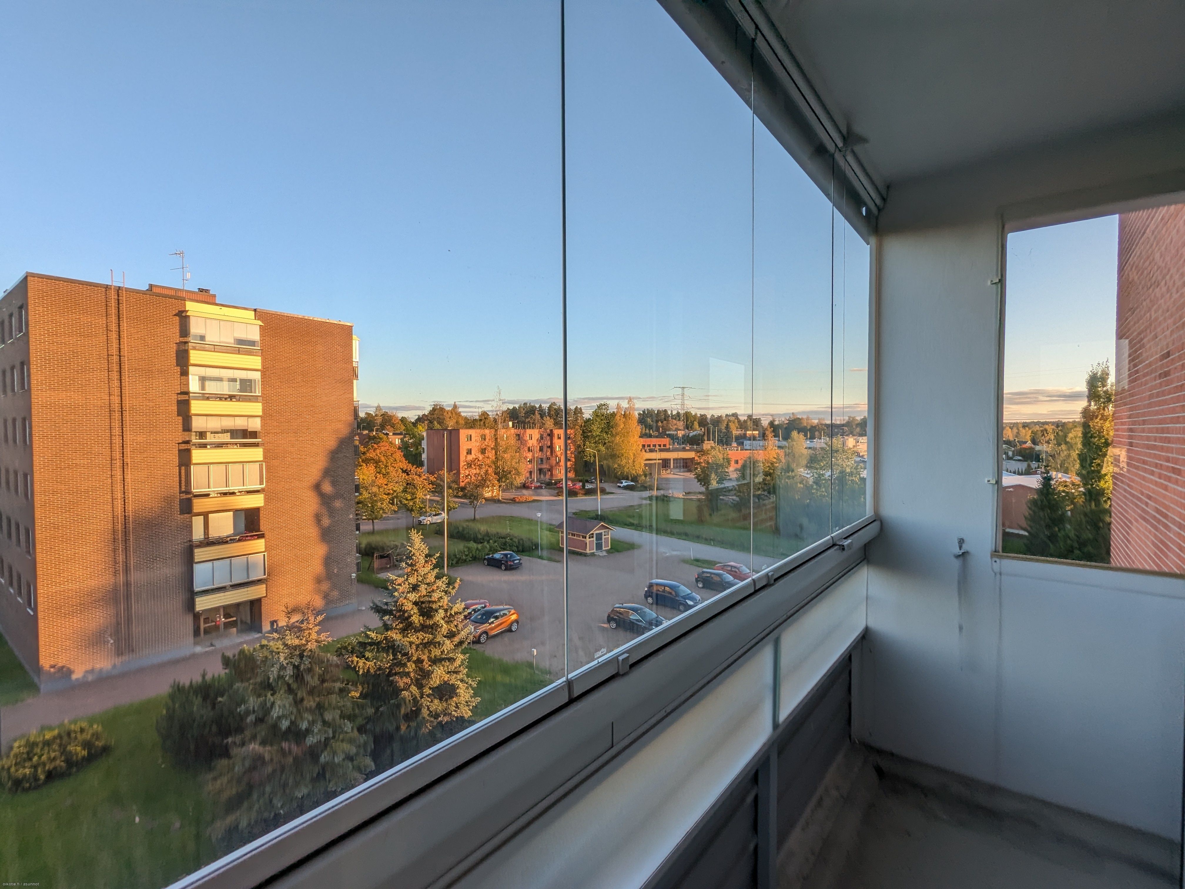 Neljännen kerroksen asunnossa on avara olohuone, jonka yhteydessä iso lasitettu parveke. Valoisassa keittiössä työskentelytilaa kahta puolta sekä paikka pienelle ruokapöydälle ikkunan vieressä. Yksi erillinen makuuhuone. Eteisessä on säiyltystilaa ja erillinen vaatehuone. Huoneistolla käytössä varastotila sekä kylmäkellari.