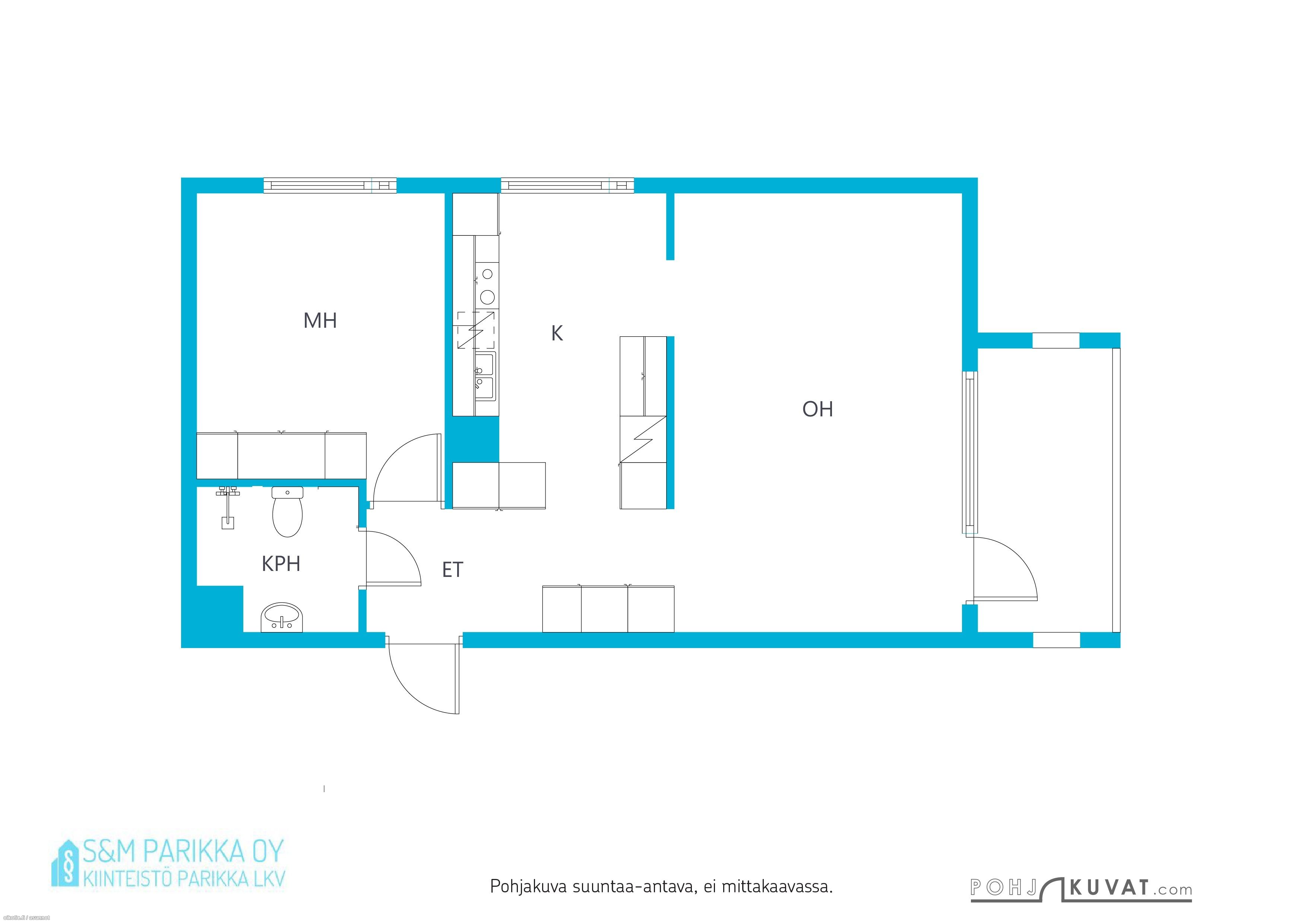 Varusteet: Jääkaappipakastin. Liesi: Sähköliesi