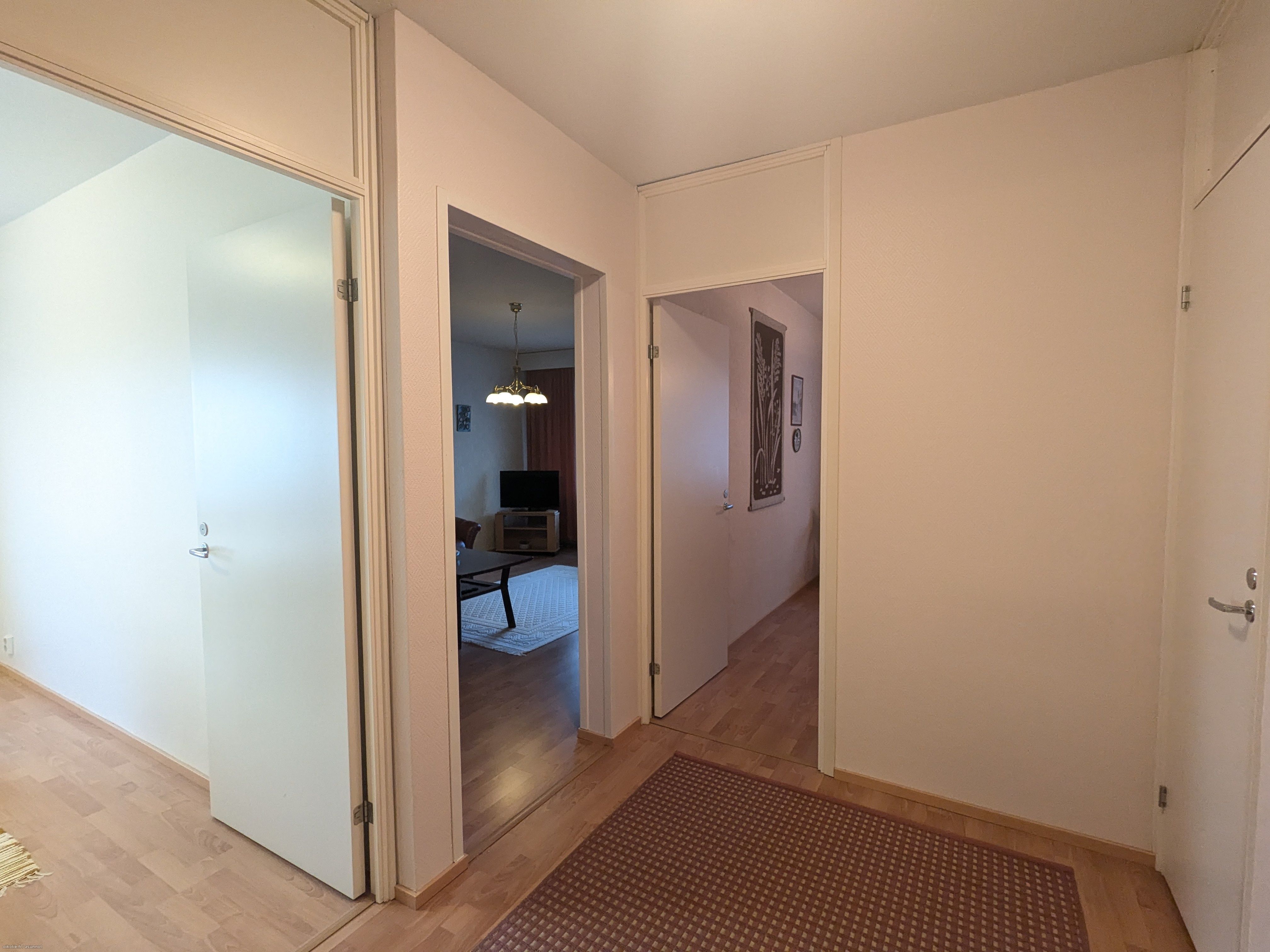 Hyvä pohjaratkaisu! Hissitalon kolmannen kerroksen asunnossa on kaksi tilavaa asuinhuonetta, iso eteinen, jonka yhteydessä kaksi vaatehuonetta, keittiö, laatoitettu kylpyhuone ja parveke. Tilat hyvin pidetyssä kunnossa.