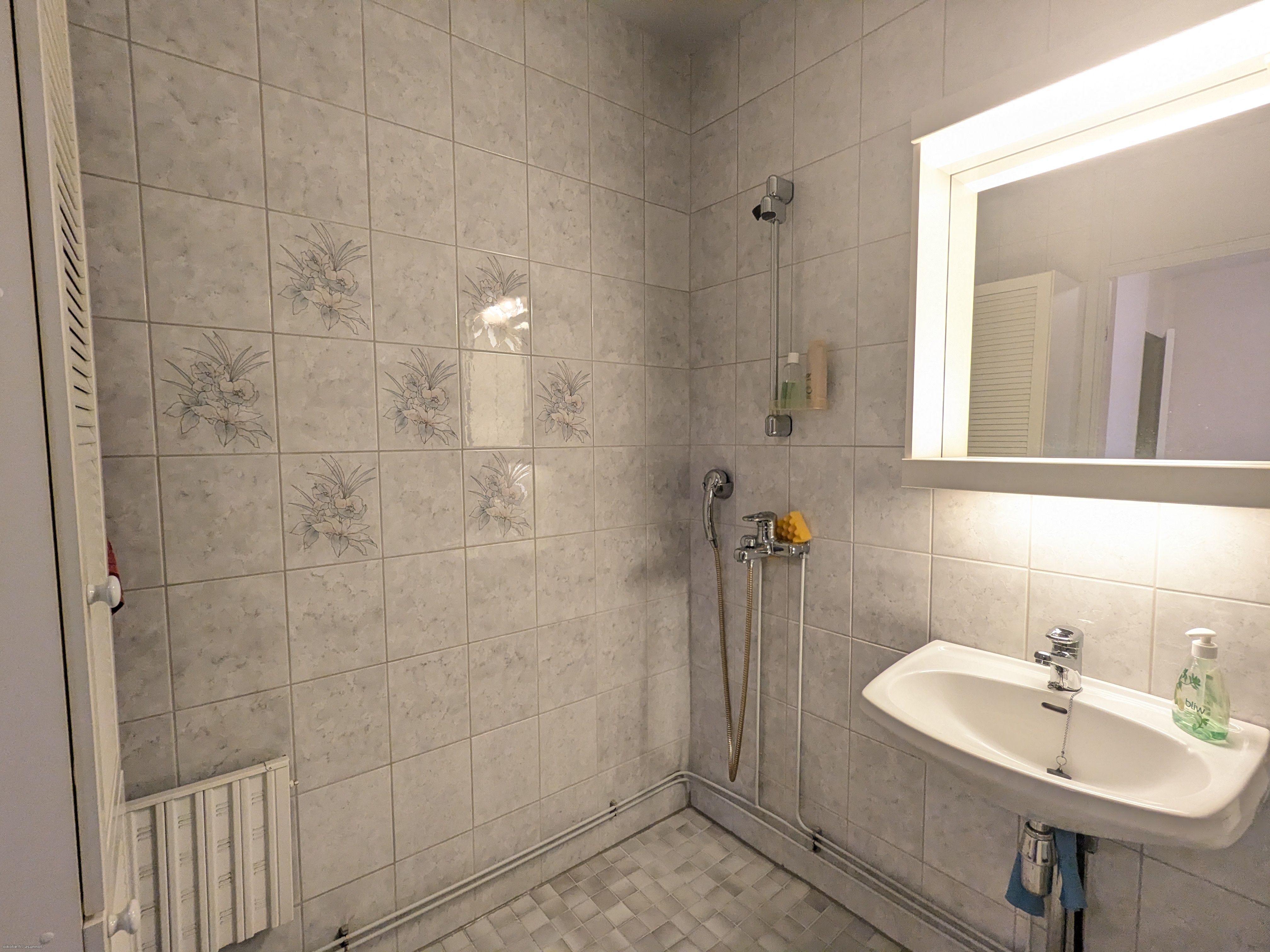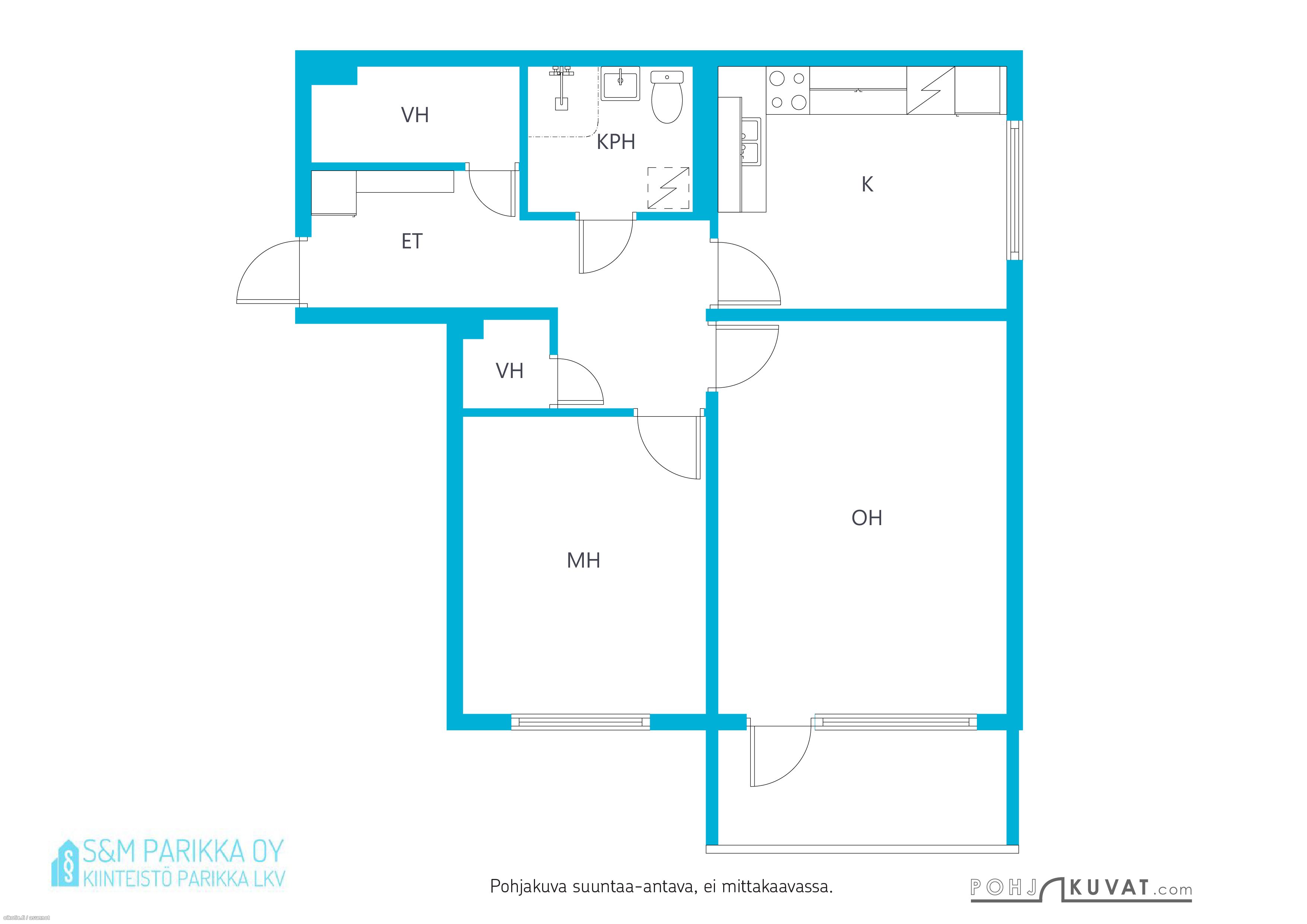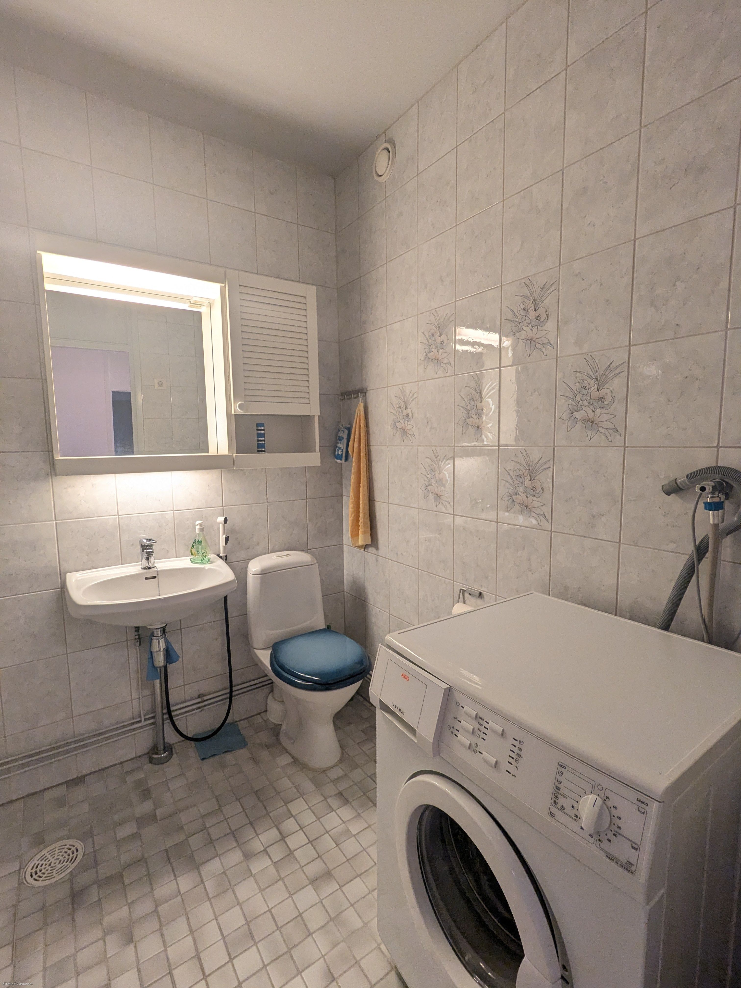 Varusteet: WC, suihku, pesukoneliitäntä, peilikaappi, kylpyhuonekaapistot