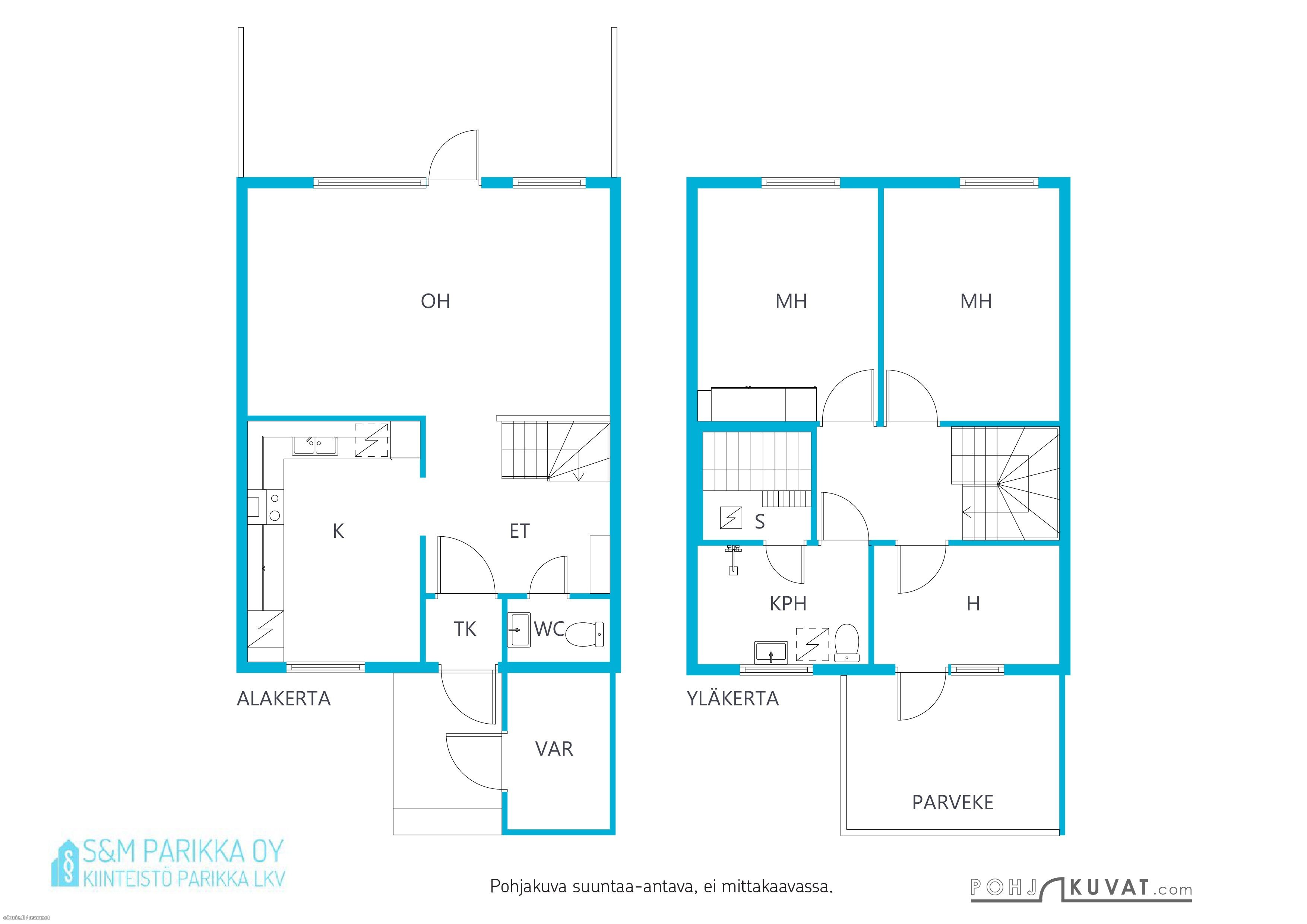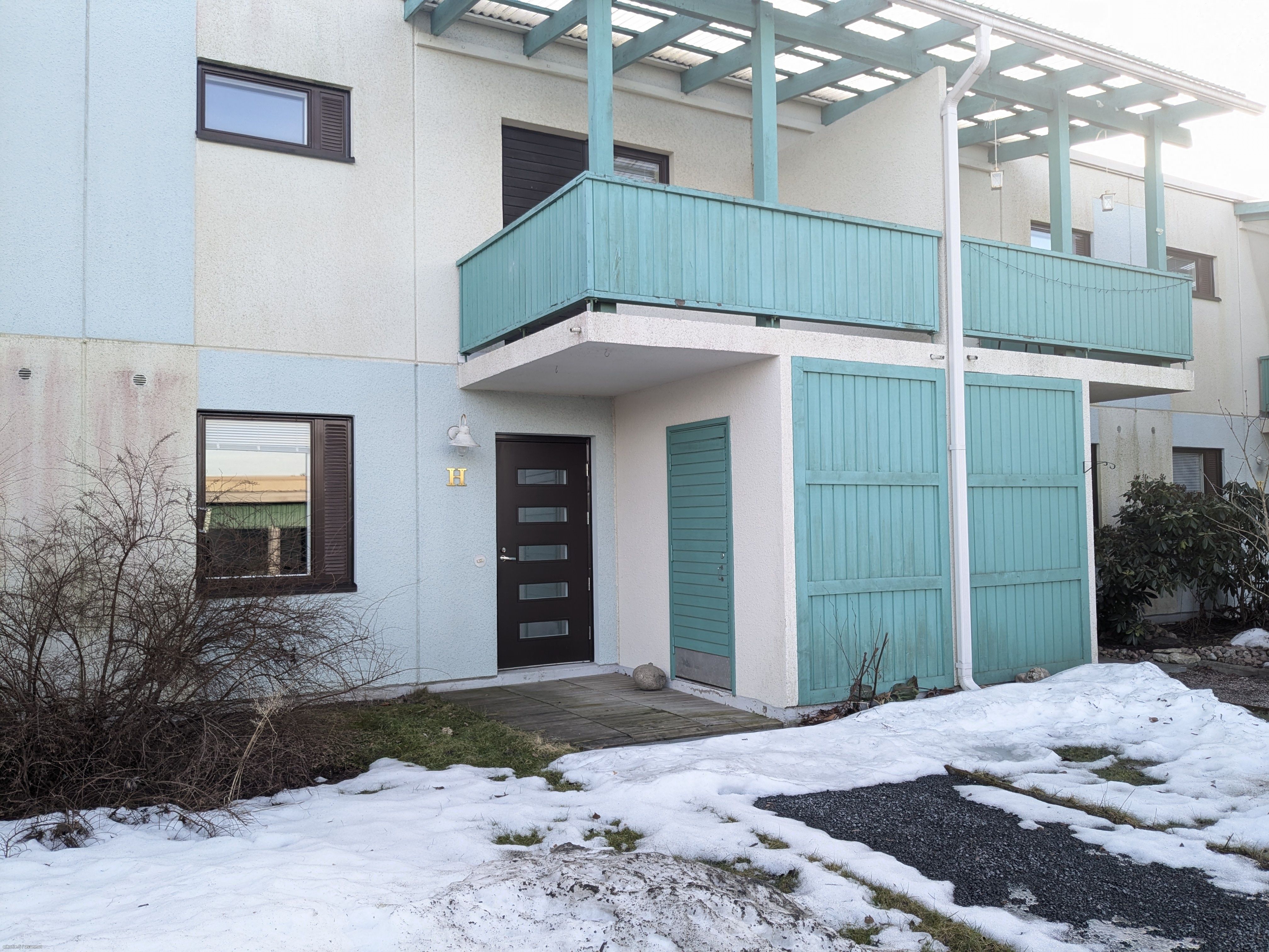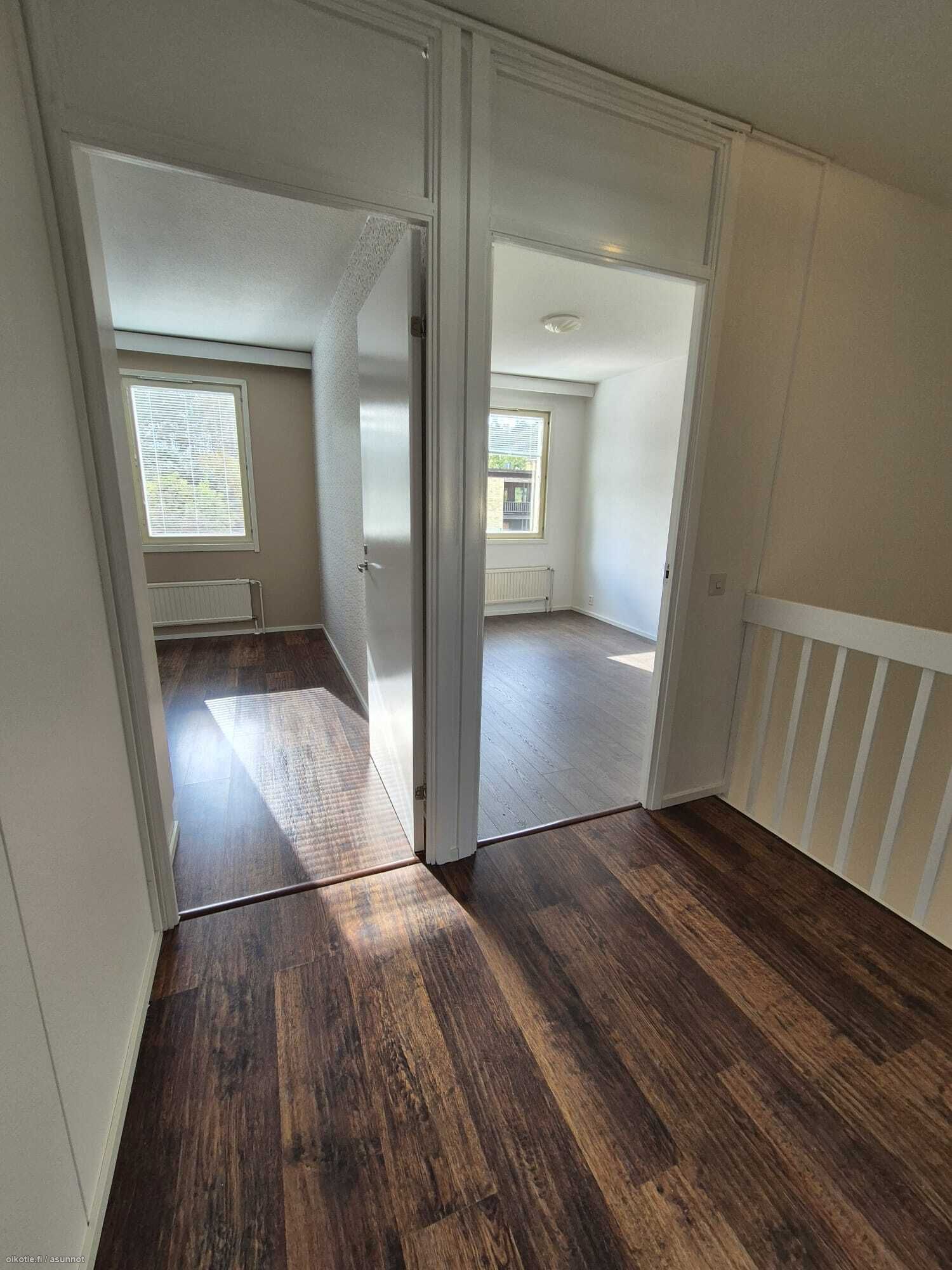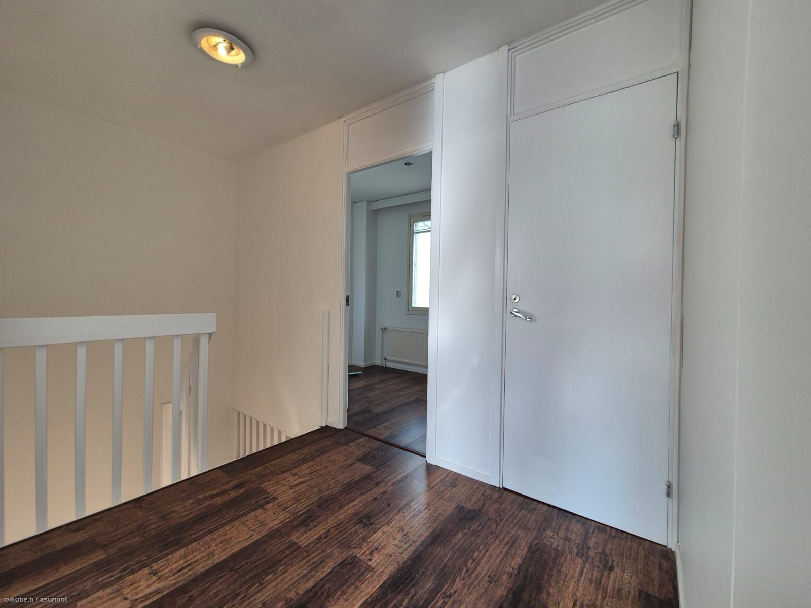 Yläkerrassa on kolme erillistä asuinhuonetta. Yhden asuinhuoneista yhteydessä on parveke. Laatoitettu kylpyhuone ja sauna. Kaksi WC-tilaa, alakerrassa oma WC-tila ja yläkerrassa kylpyhuoneen yhteydessä. Lisää säilytystilaa tarjoaa pääoven yhteydessä sijaitseva ulkovarasto. Taloyhtiössä on autokatos.