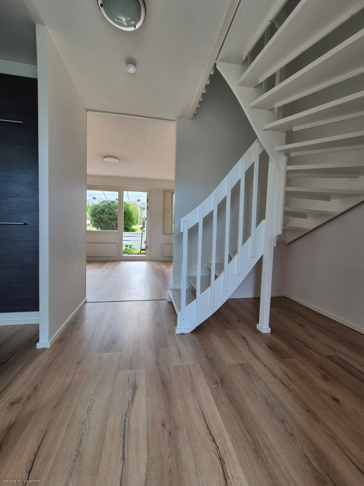 Asunnon sisääntulokerroksessa on porrasaula, hyväkuntoinen ja tilava keittiö, valoisa olohuone, josta on kulku takapihan suojaisalle piha-alueelle ja omalle valokatetulle terassille.