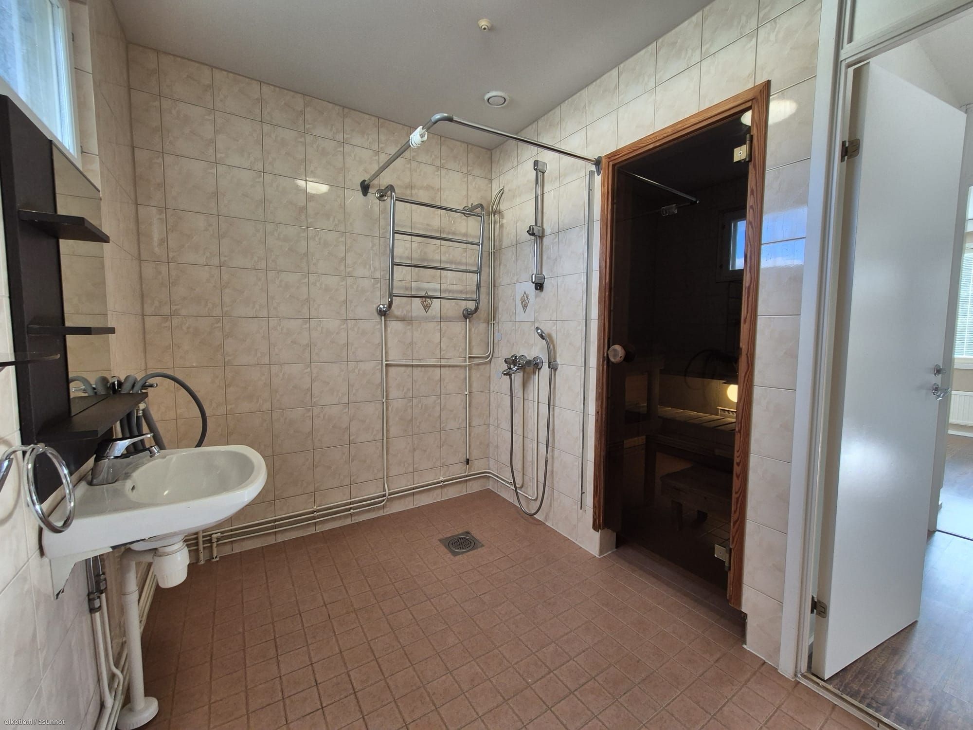 Varusteet: sähkökiuas. Lattiamateriaali: laattalattia