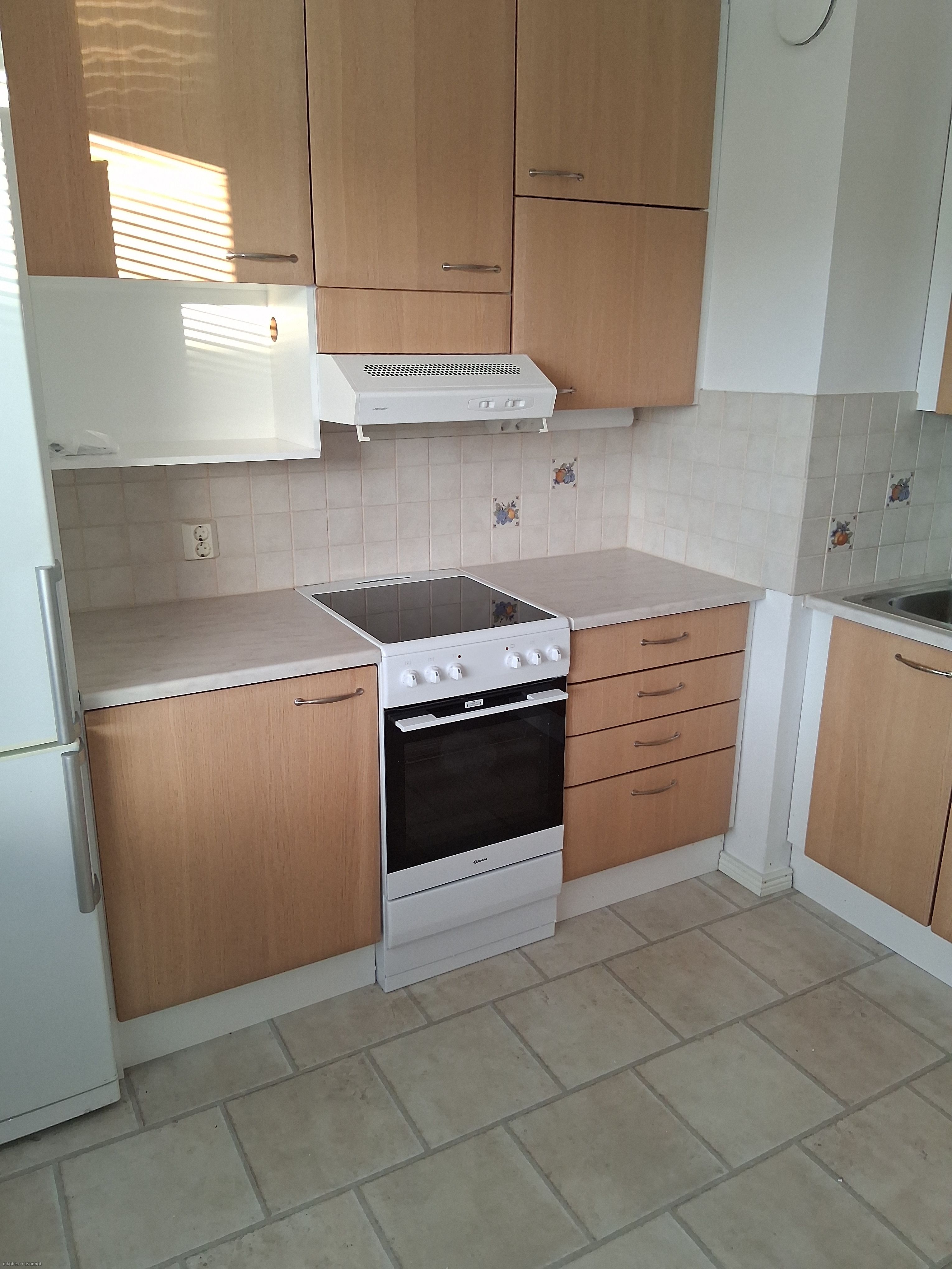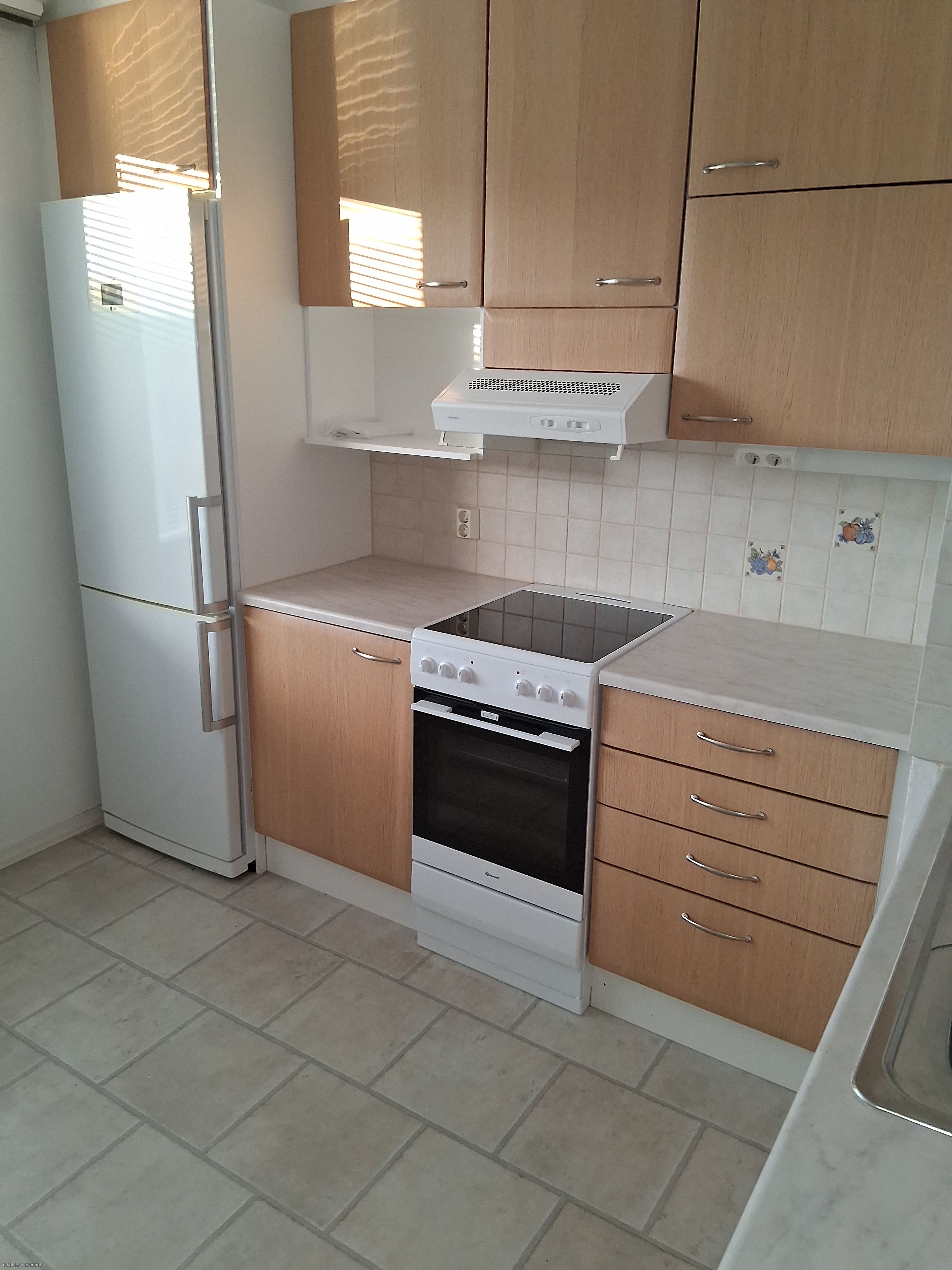 Varusteet: jääkaappipakastin. Liesi: sähköliesi