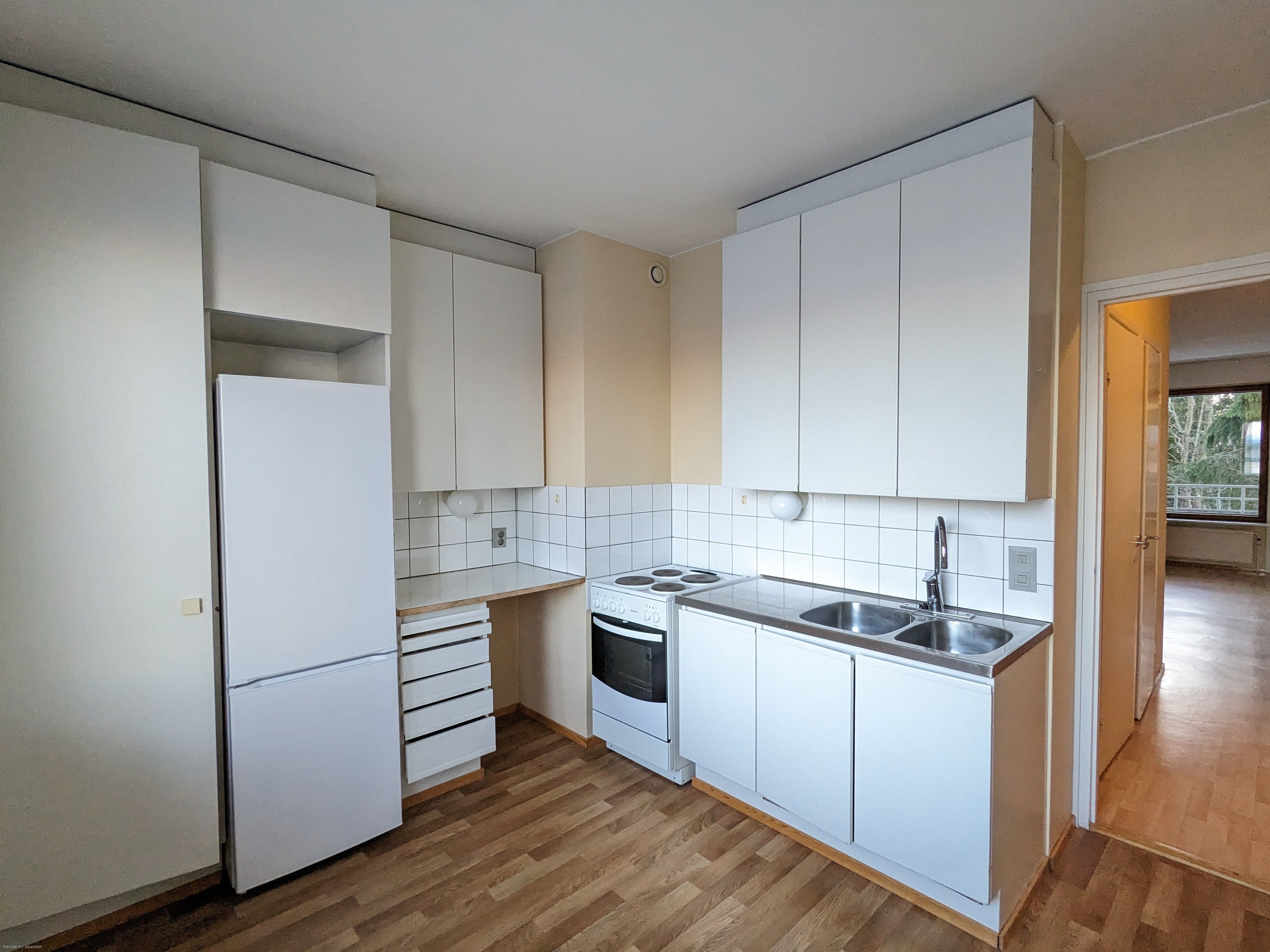 Varusteet: jääkaappipakastin. Liesi: sähköliesi