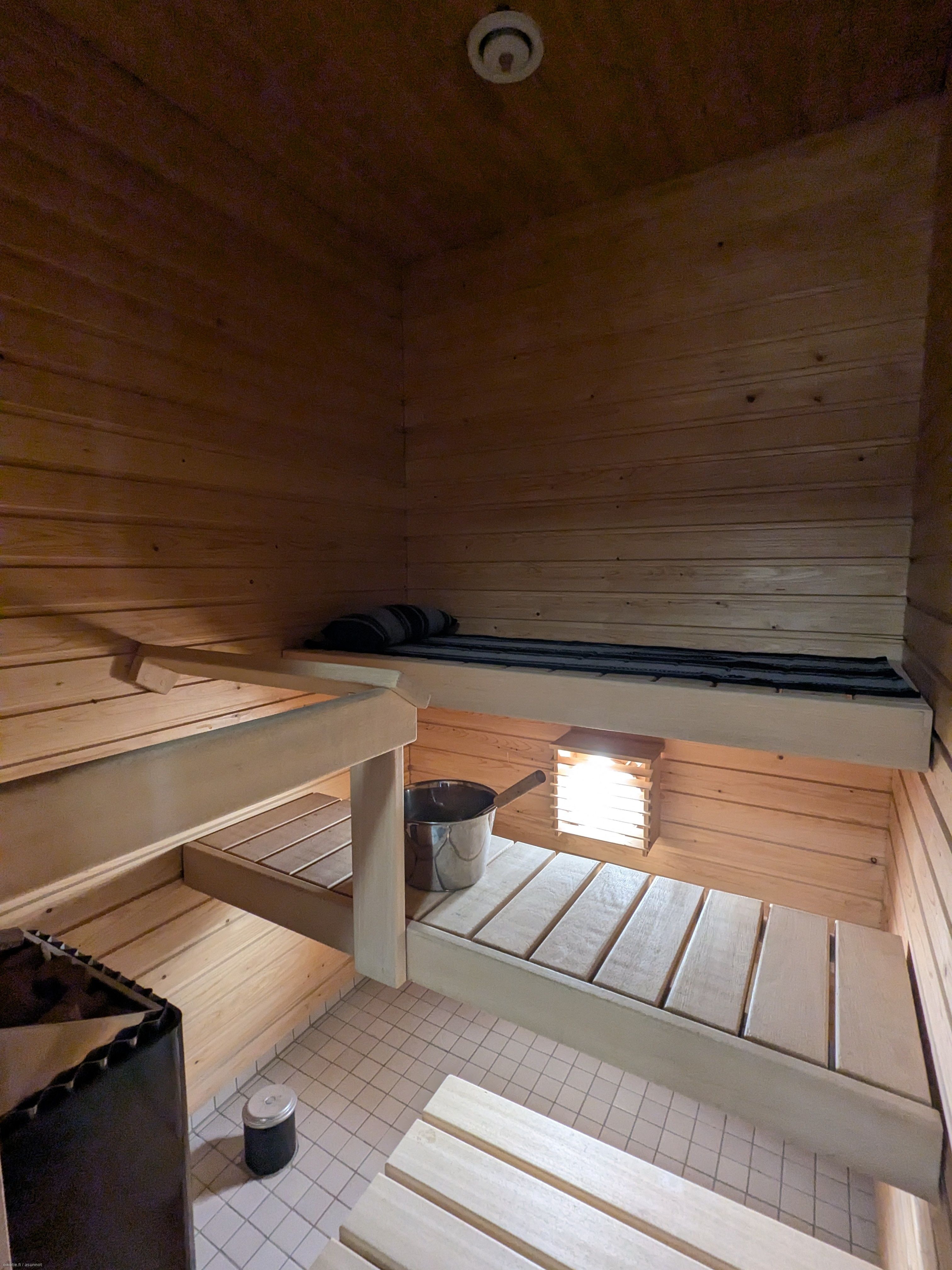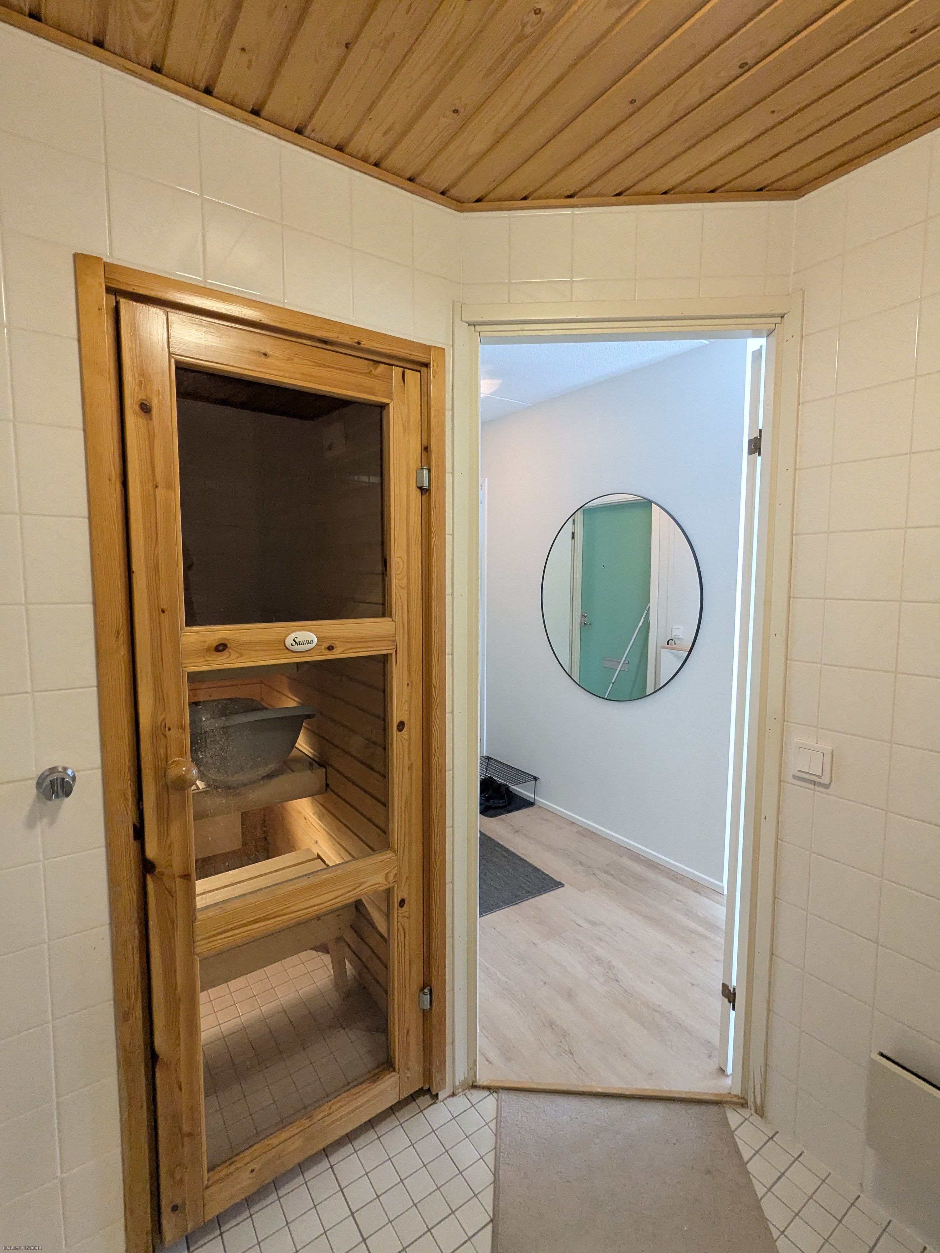 Varusteet: sähkökiuas. Lattiamateriaali: laattalattia
