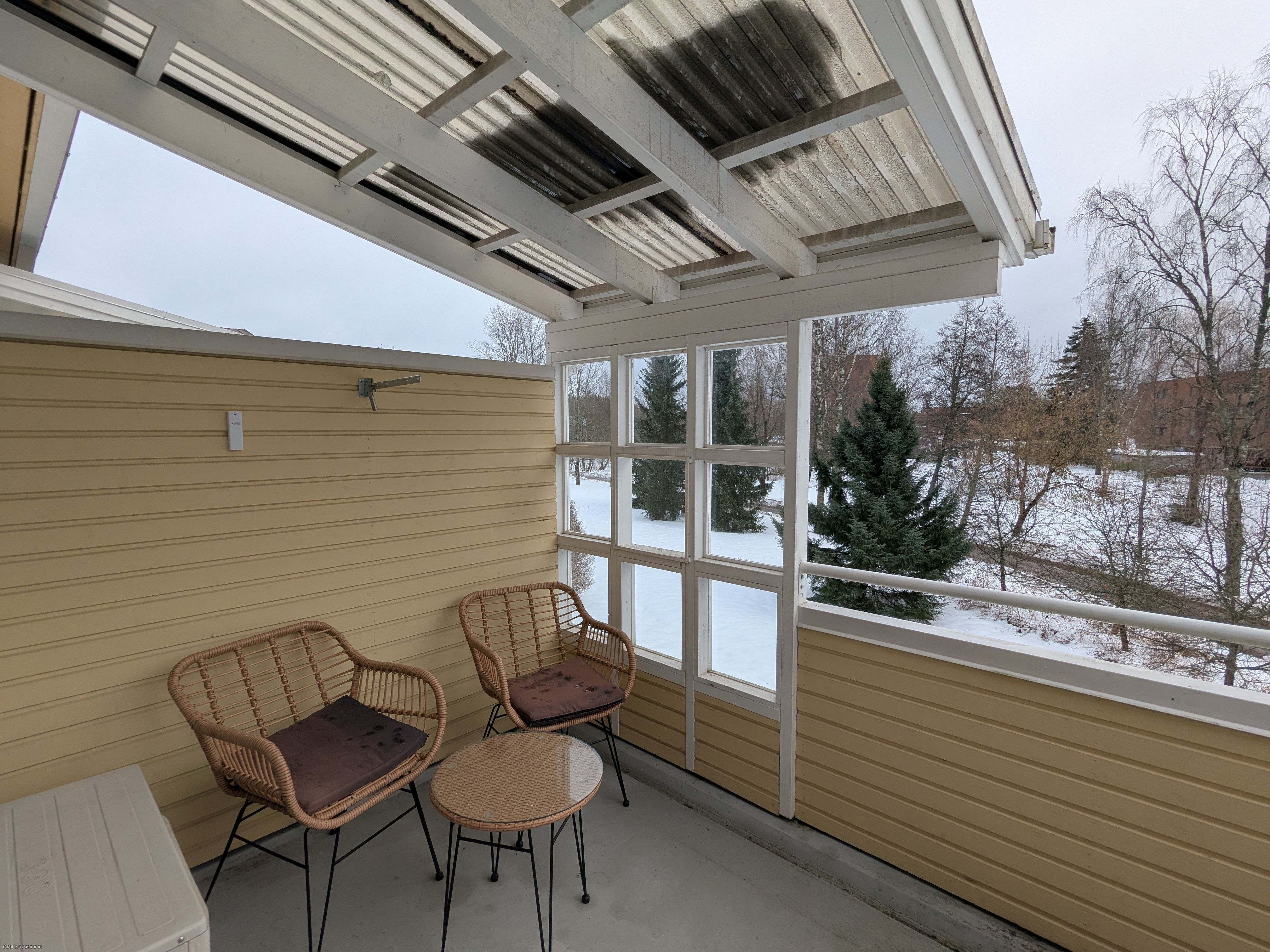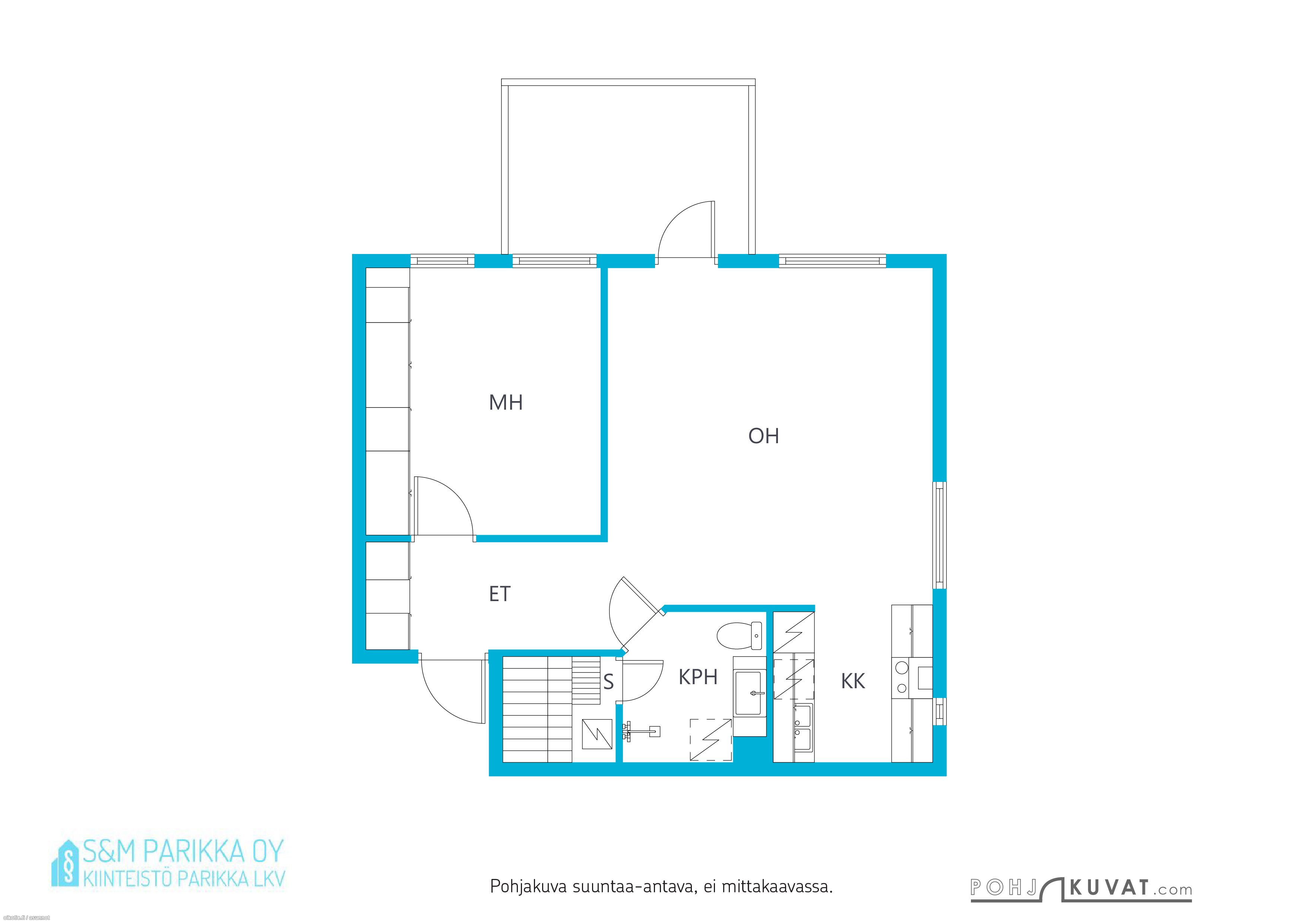 Kaksi asuinhuonetta käsittävässä kodissa on vuonna 2023 uusittu asuintilat ja keittiö. Valoisa olohuone sekä moderni omalla ikkunalla varusteltu keittiö, tilava eteinen ja yksi makuuhuone. Olohuoneen yhteydessä on viihtyisä ja osittain katettu parveke. Ilmalämpöpumppu ylläpitää mukavan asumisviileyden kesäkuukausina.
