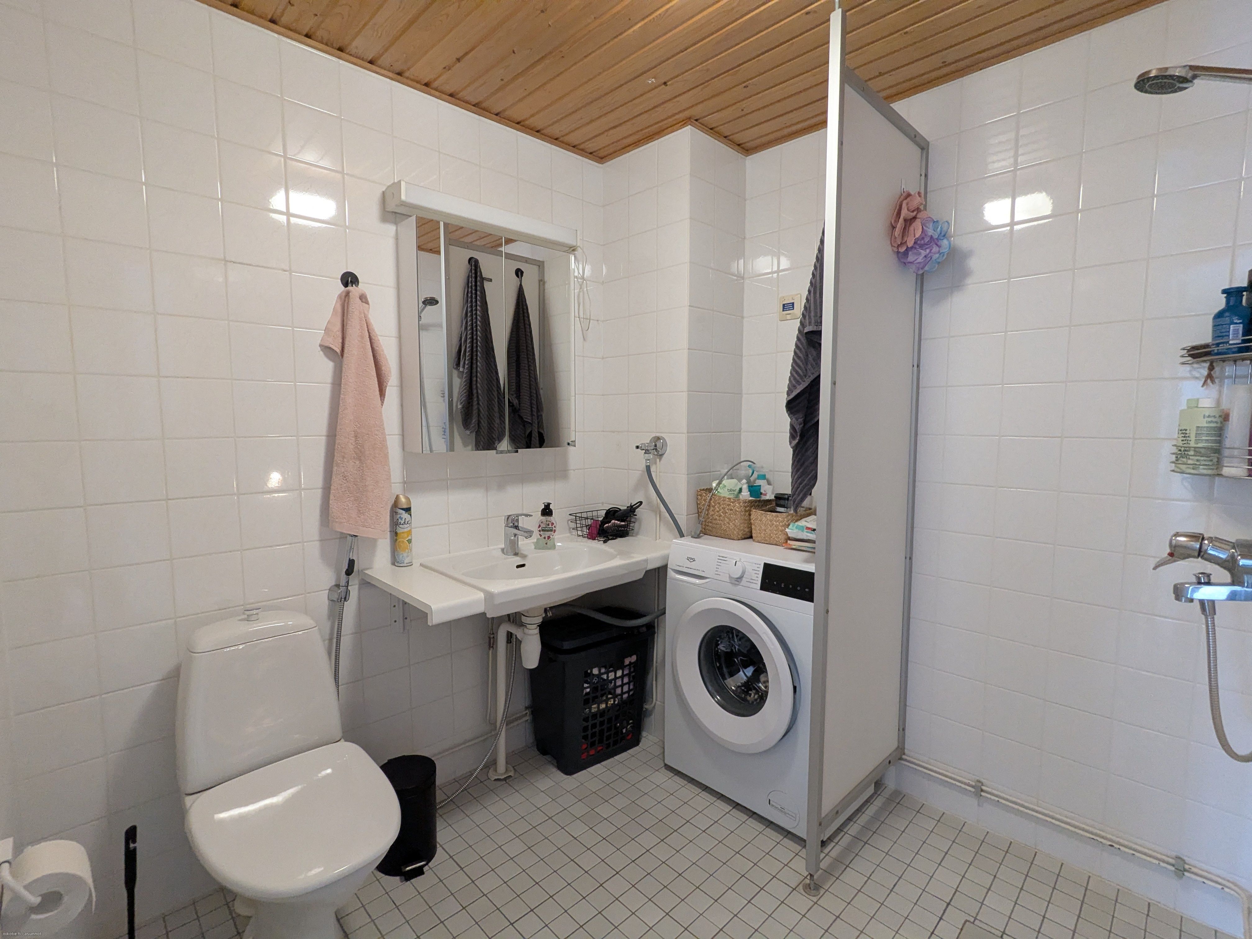 Varusteet: suihku, peilikaappi, pesukoneliitäntä, WC