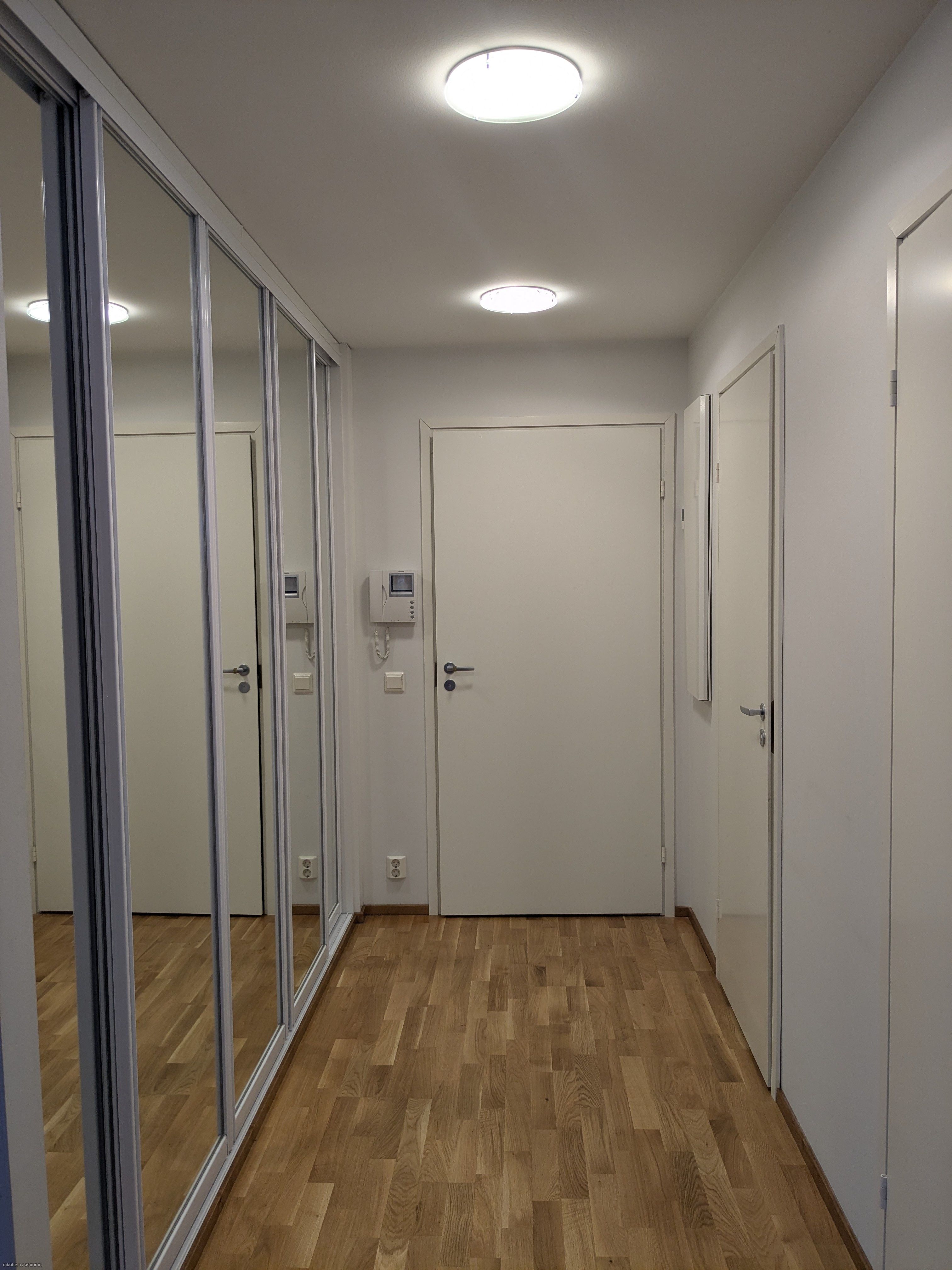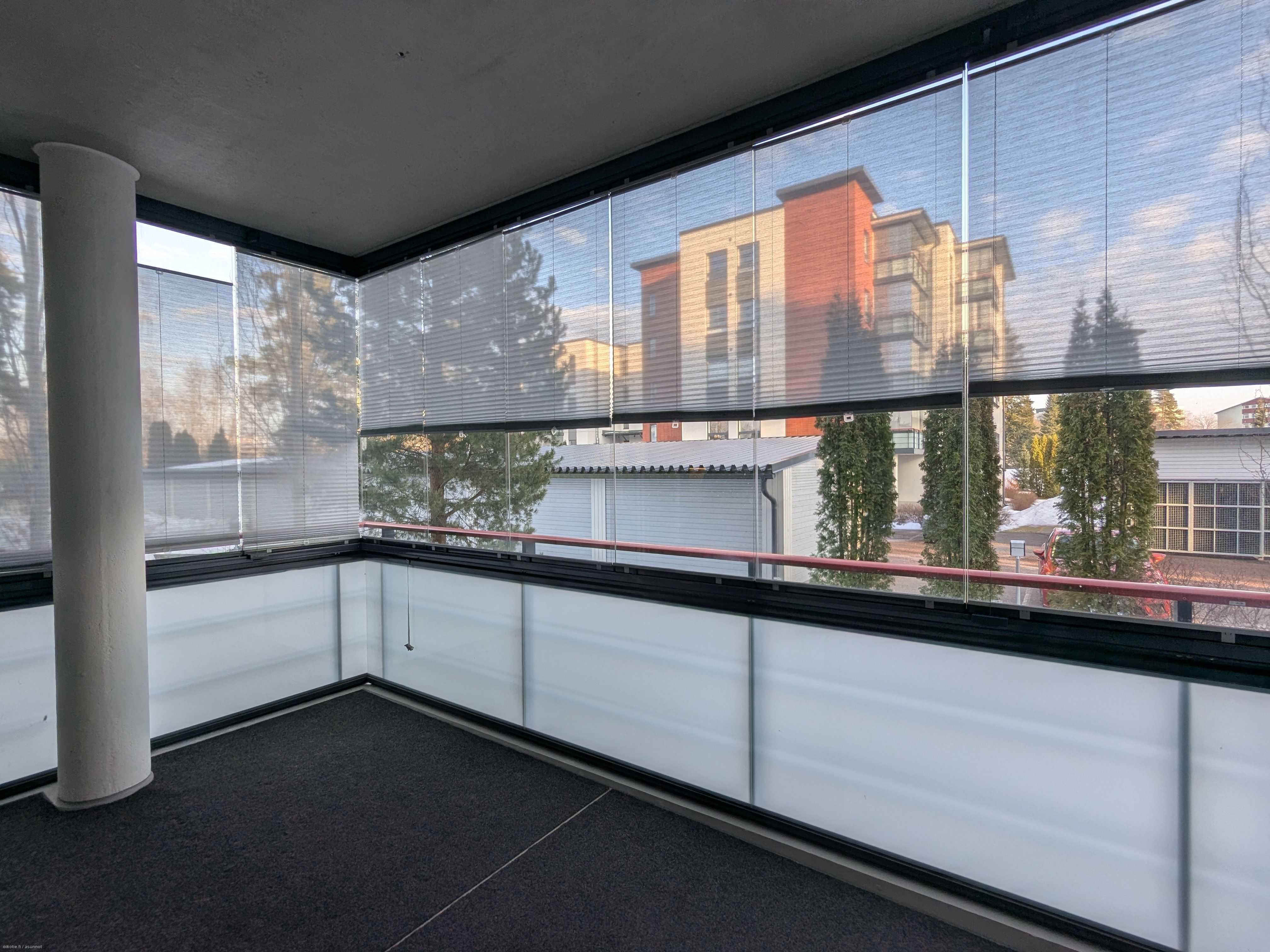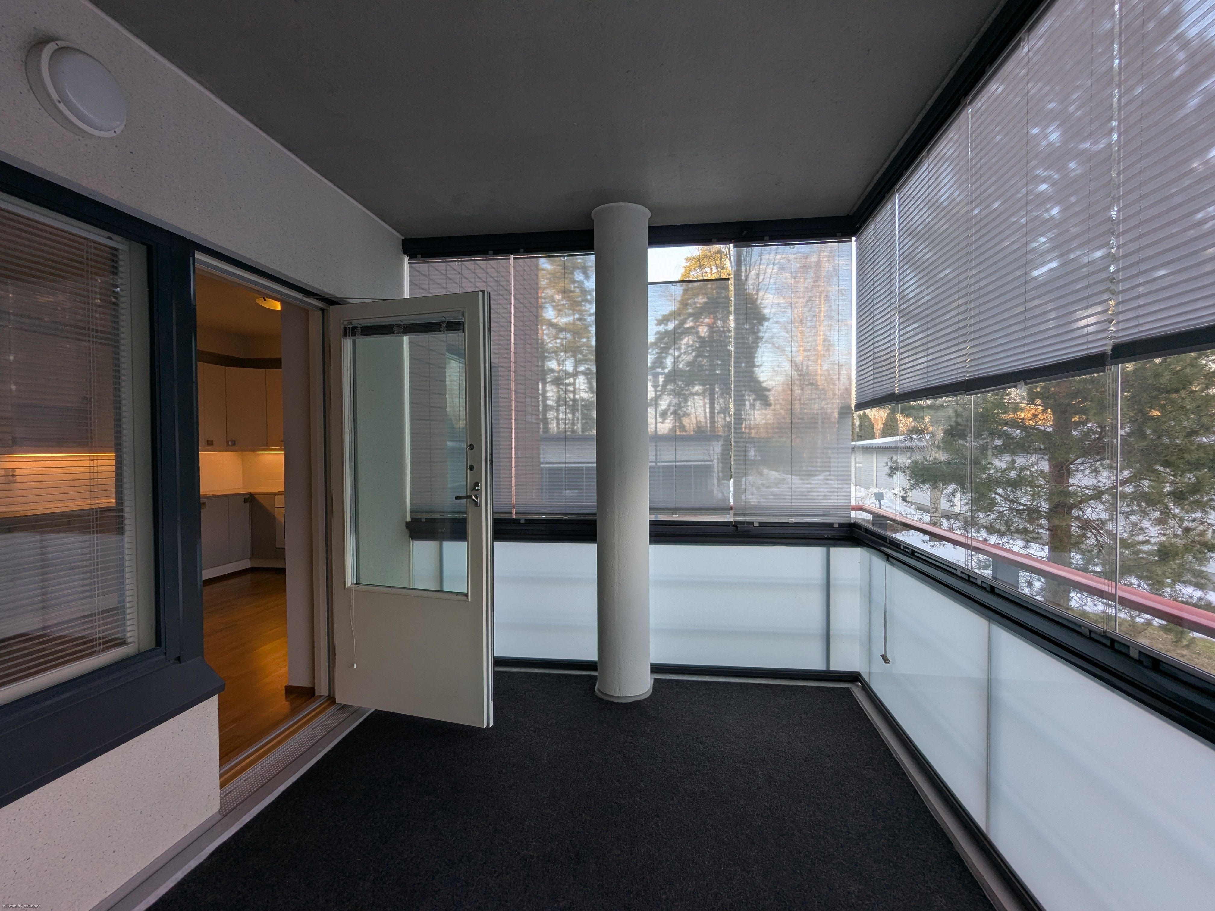 Hyväkuntoisessa kodissa on sisääntultaessa liukuovikaapillinen eteinen, iso keittiön kanssa yhtenäinen olohuone, jonka yhteydessä on todella tilava lasitettu parveke. Kaksi erillistä makuuhuonetta. Laatoitettu ja lattialämmityksellinen kylpyhuone, jossa on pesukonevalmius, vesipiste ja WC. Oma sähkökiuas sauna. Lisäksi on erillinen laatoitettu WC-tila.