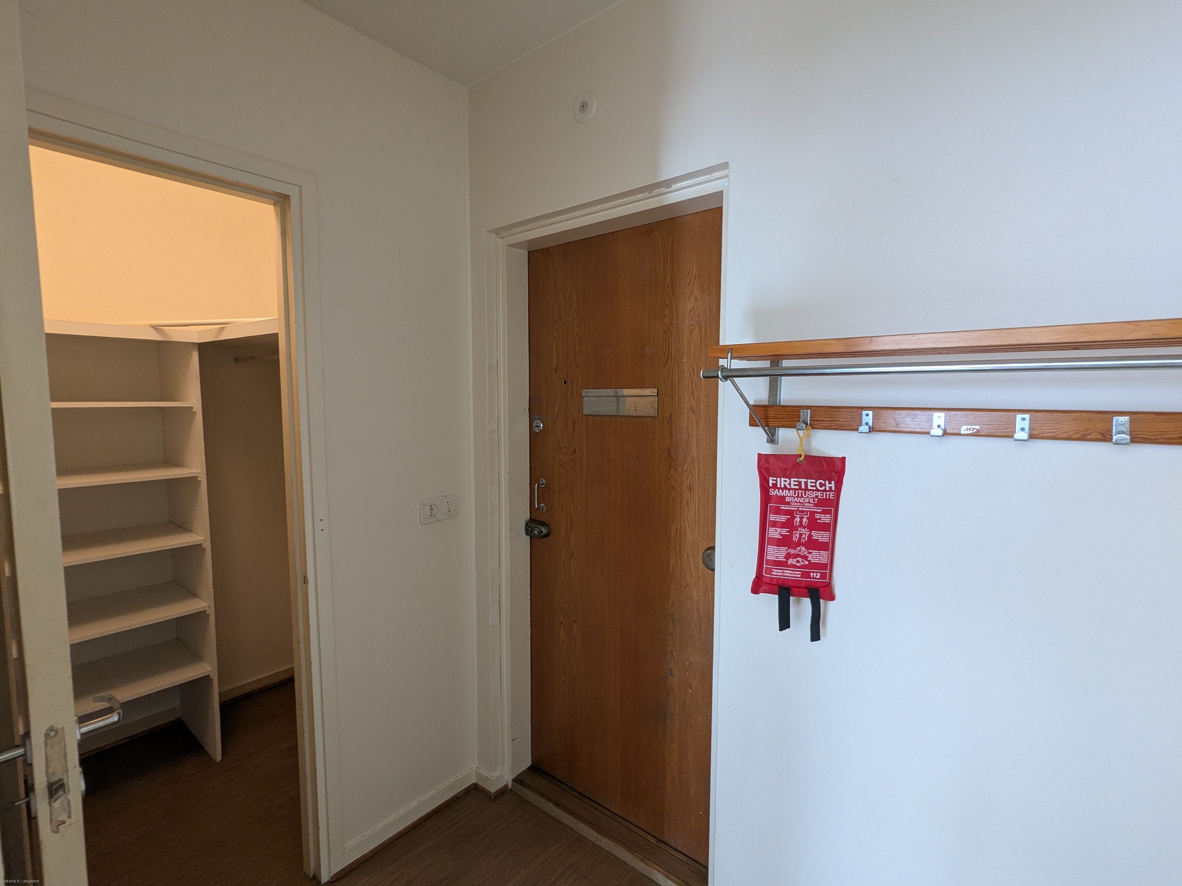 Valoisa asunto, jossa on eteisen yhteydessä vaatehuone, yksi asuinhuone sekä keittiönurkkaus. Inkeroisten keskustan palvelut, paikallisliikenteen bussipysäkki sekä rautatieasema ja LIDL Inkeroinen kaikki kävelyetäisyydellä.