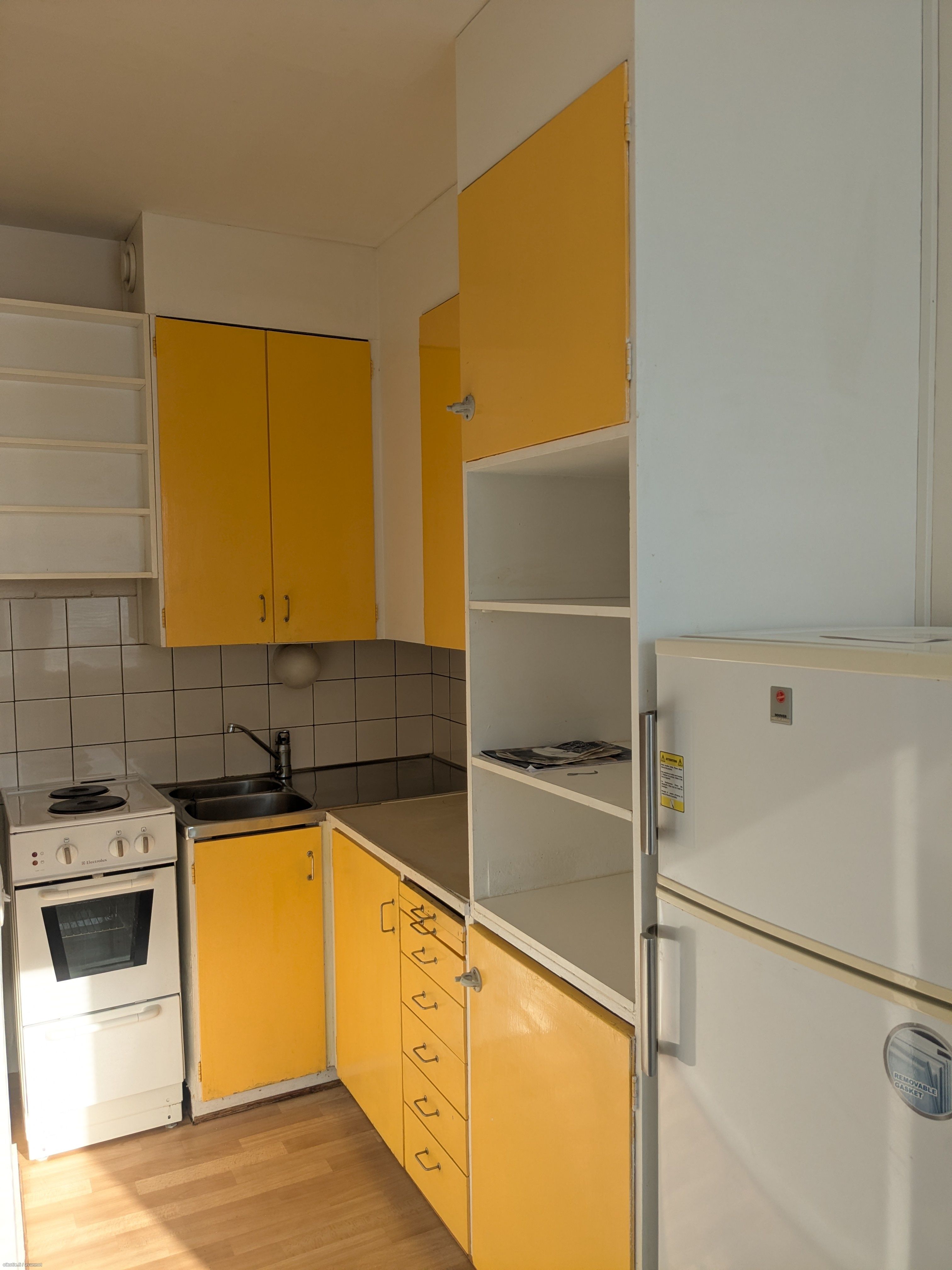 Varusteet: jenkkikaappi. Liesi: sähköliesi