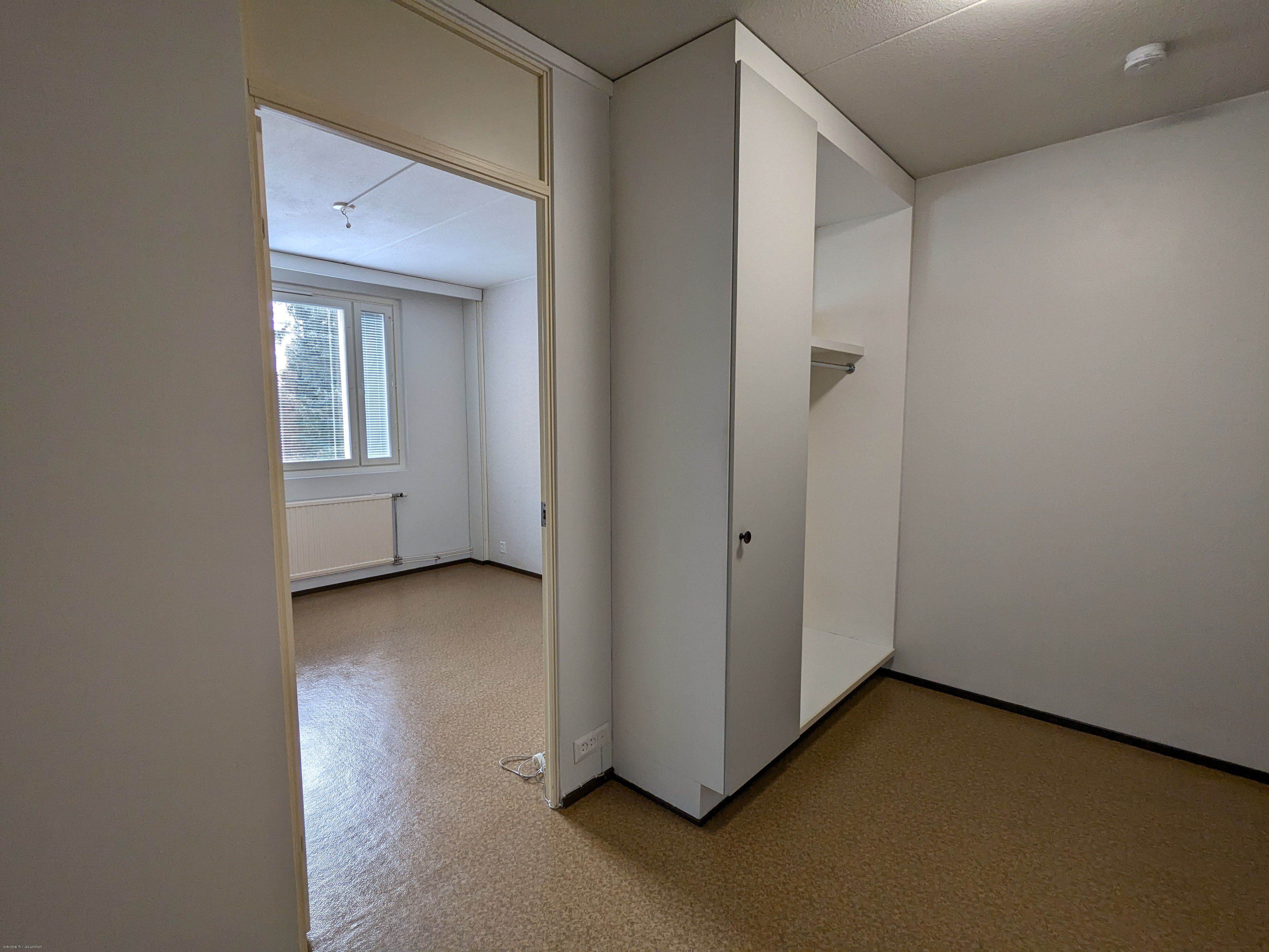 Kulmahuoneisto rauhallisessa taloyhtiössä metsän laidalla. Asunnossa on eteinen, valoisa keittiö ja erillinen makuuhuone sekä olohuone, jonka yhteydessä on lasitettu parveke. Yhtenäinen kylpyhuone/WC-tila, jossa on suihkukaappi ja pesukonevalmius. Kylpyhuone perusparannusremontti tehty 2012, jossa mm. kylpyhuoneen seinät ja katto maalattu, asennettu varjolistat kattoon ja peitelista kynnykseen sekä asennettu suihkukaappi. Taloyhtiössä on sauna.