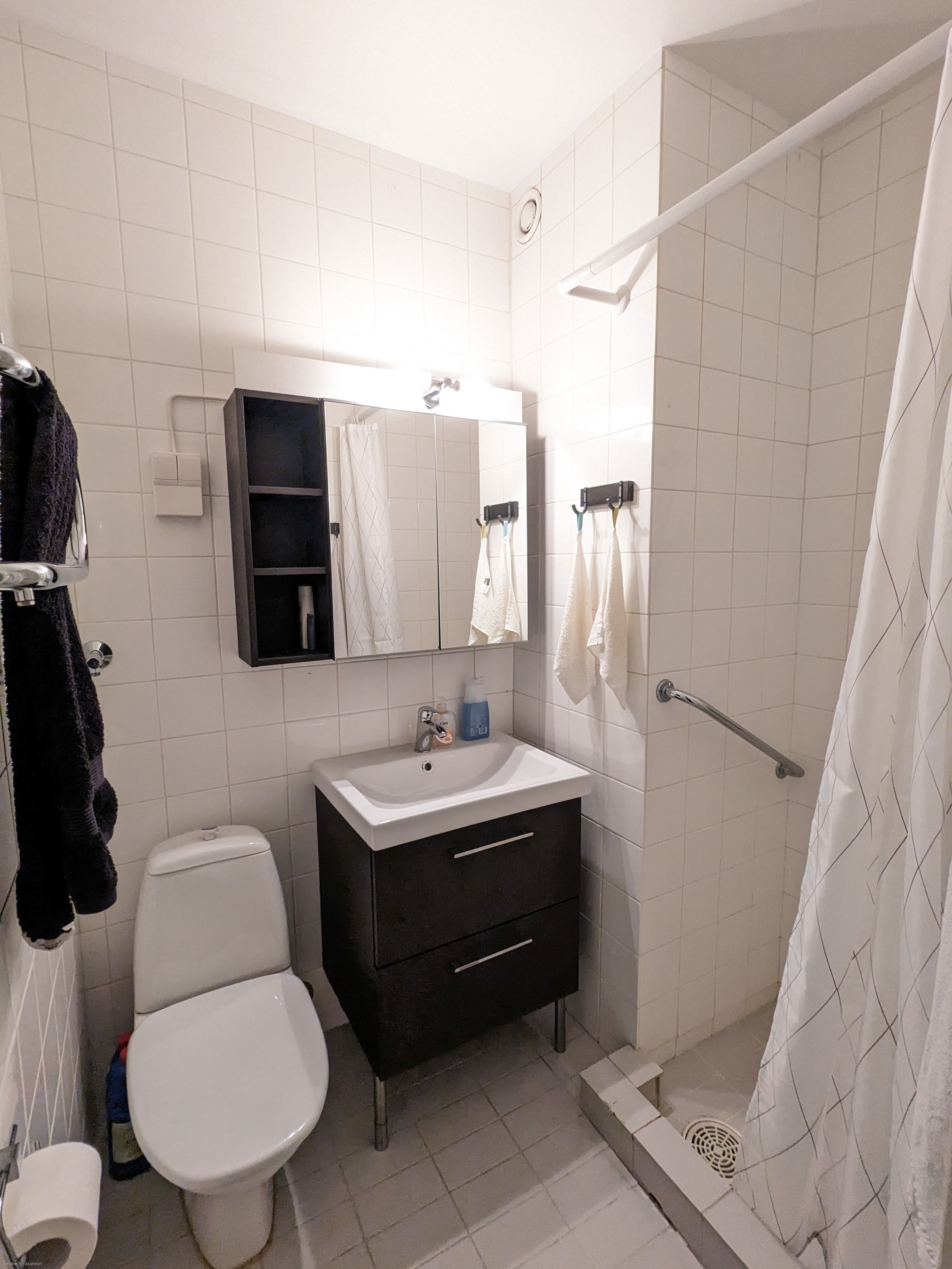 Varusteet: WC, suihku, pesukoneliitäntä, peilikaappi