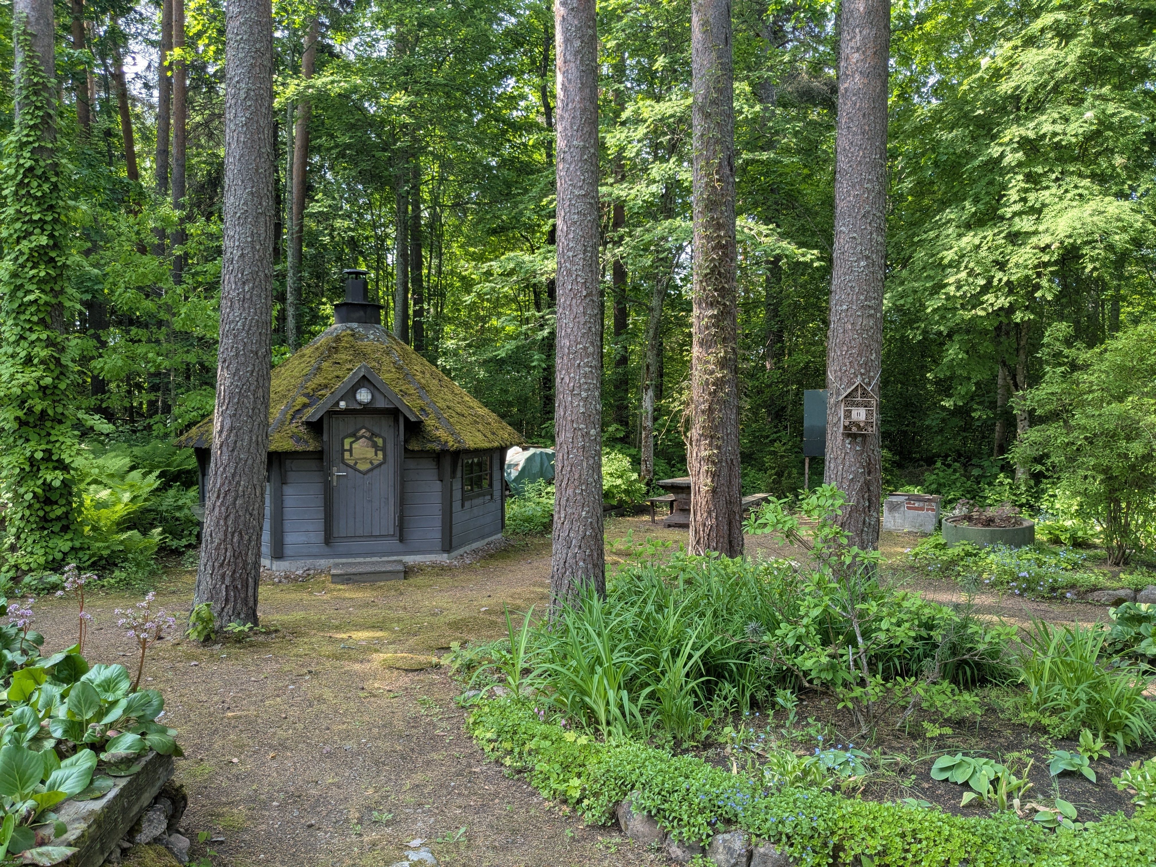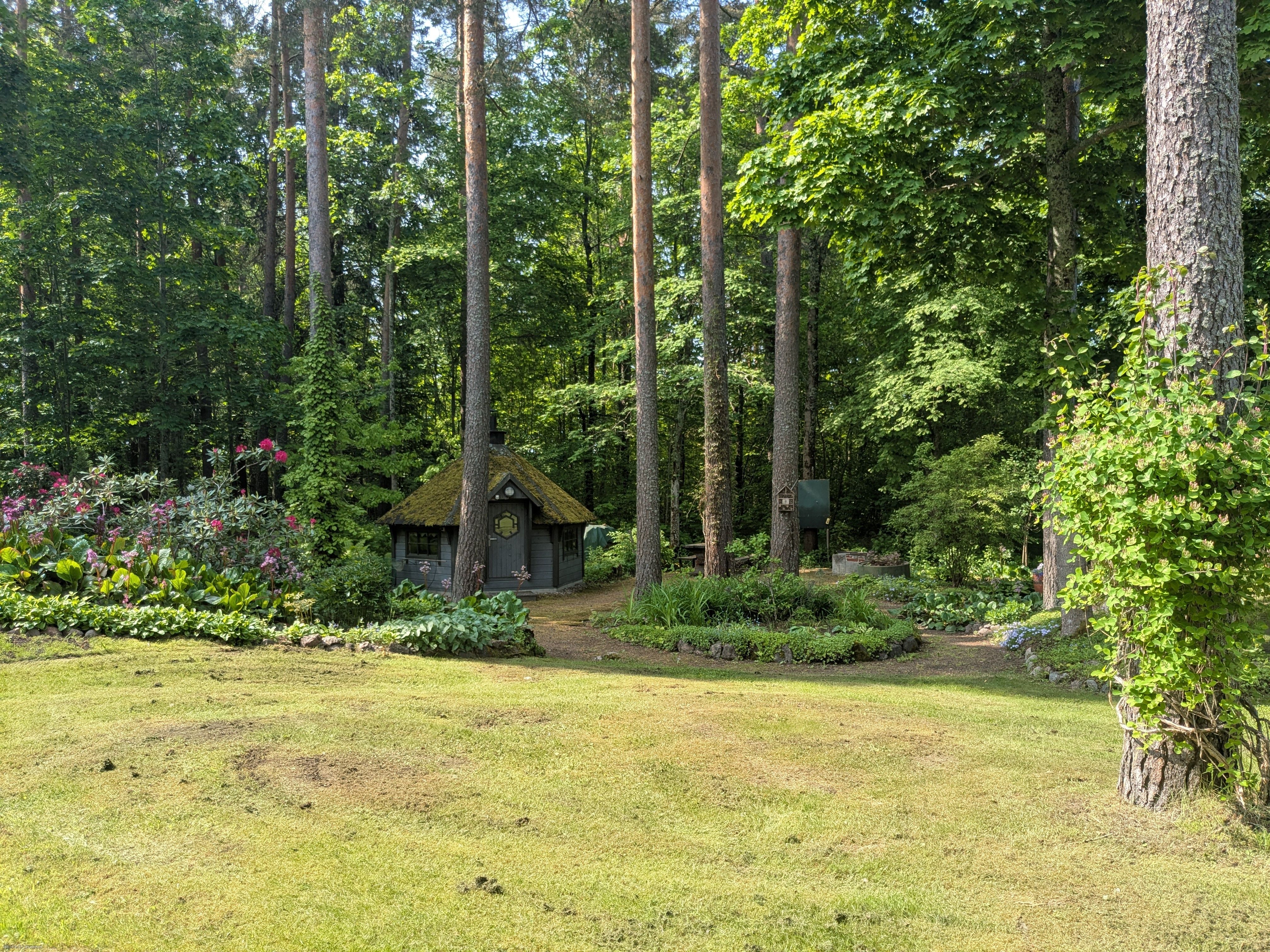Taloyhtiöllä viihtyisä puutarhapiha, jossa mm. grillipaikka ja huvimaja.