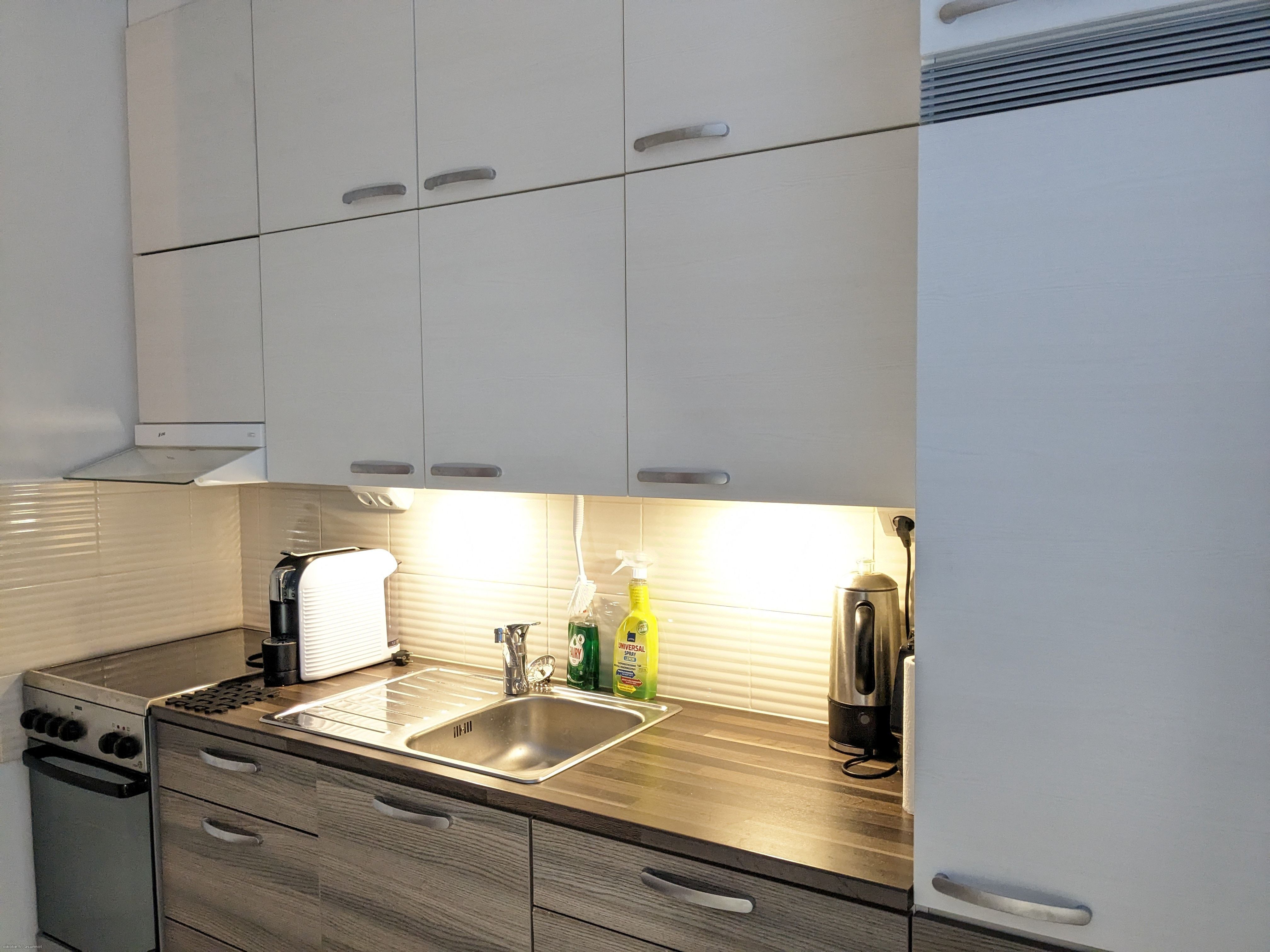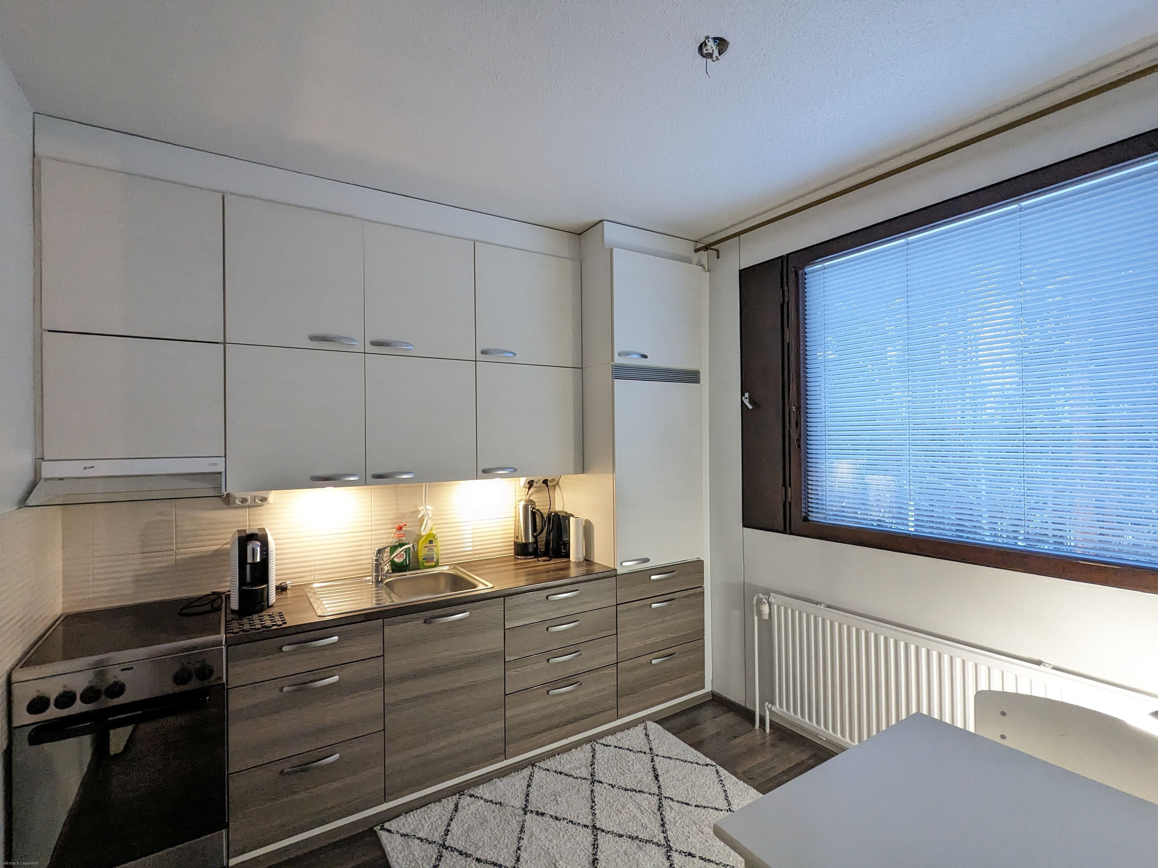 Varusteet: jääkaappi. Liesi: keraaminen liesi