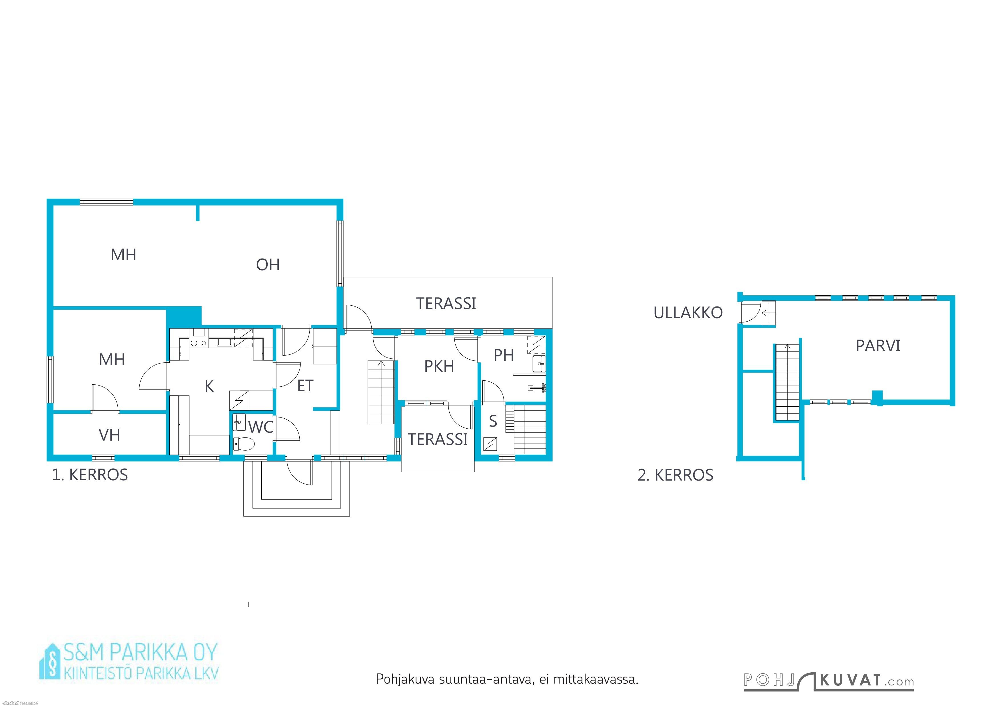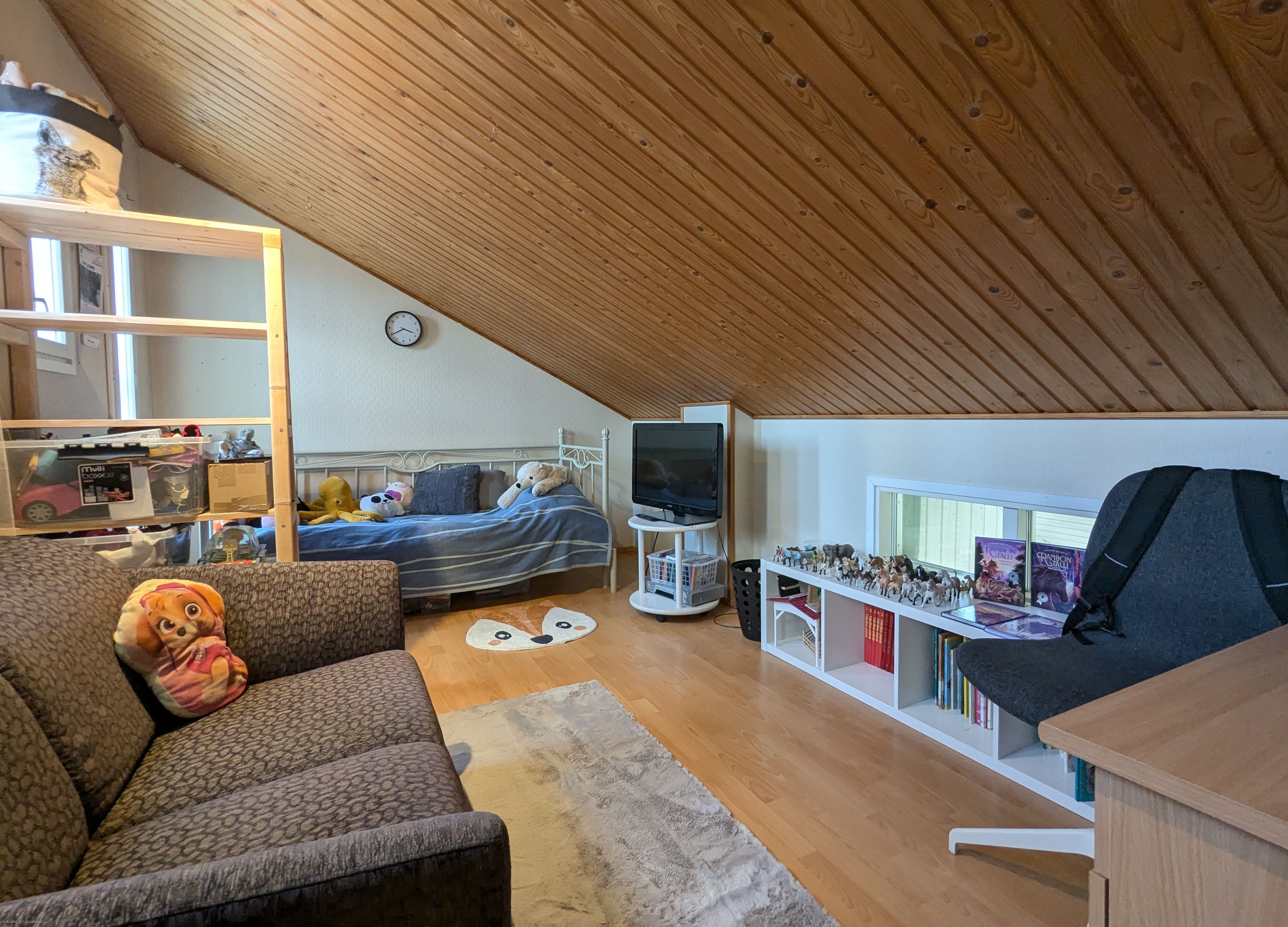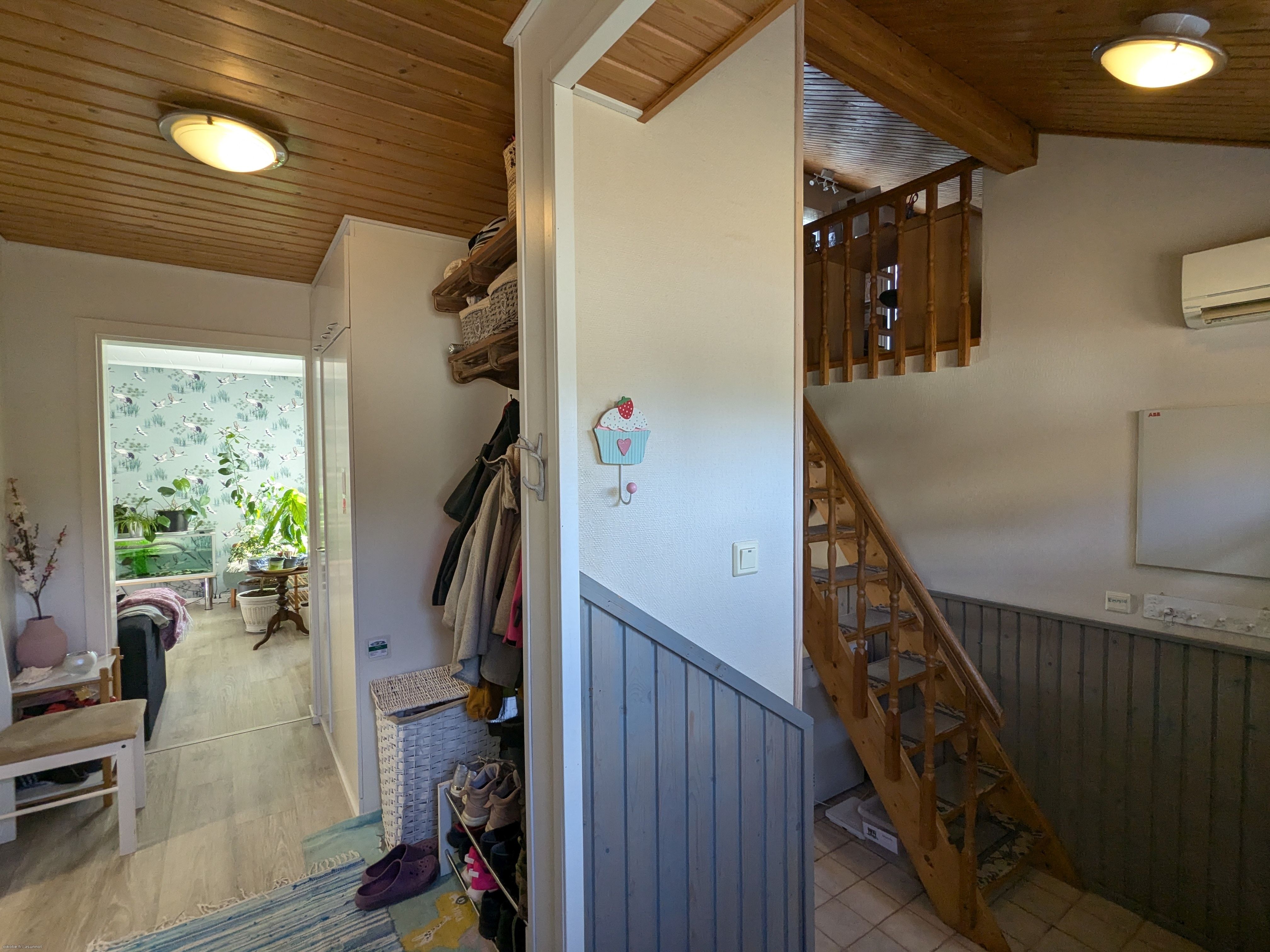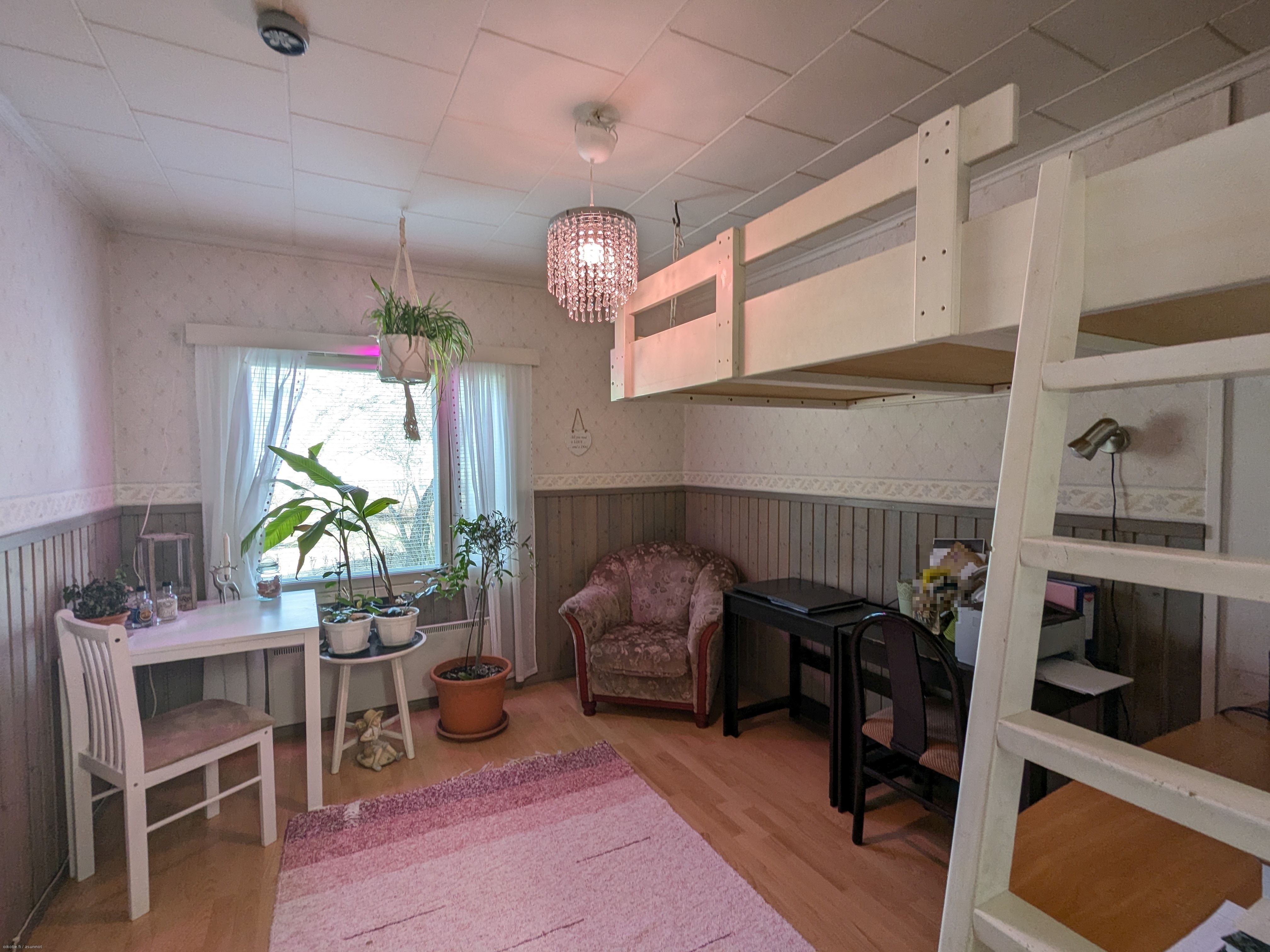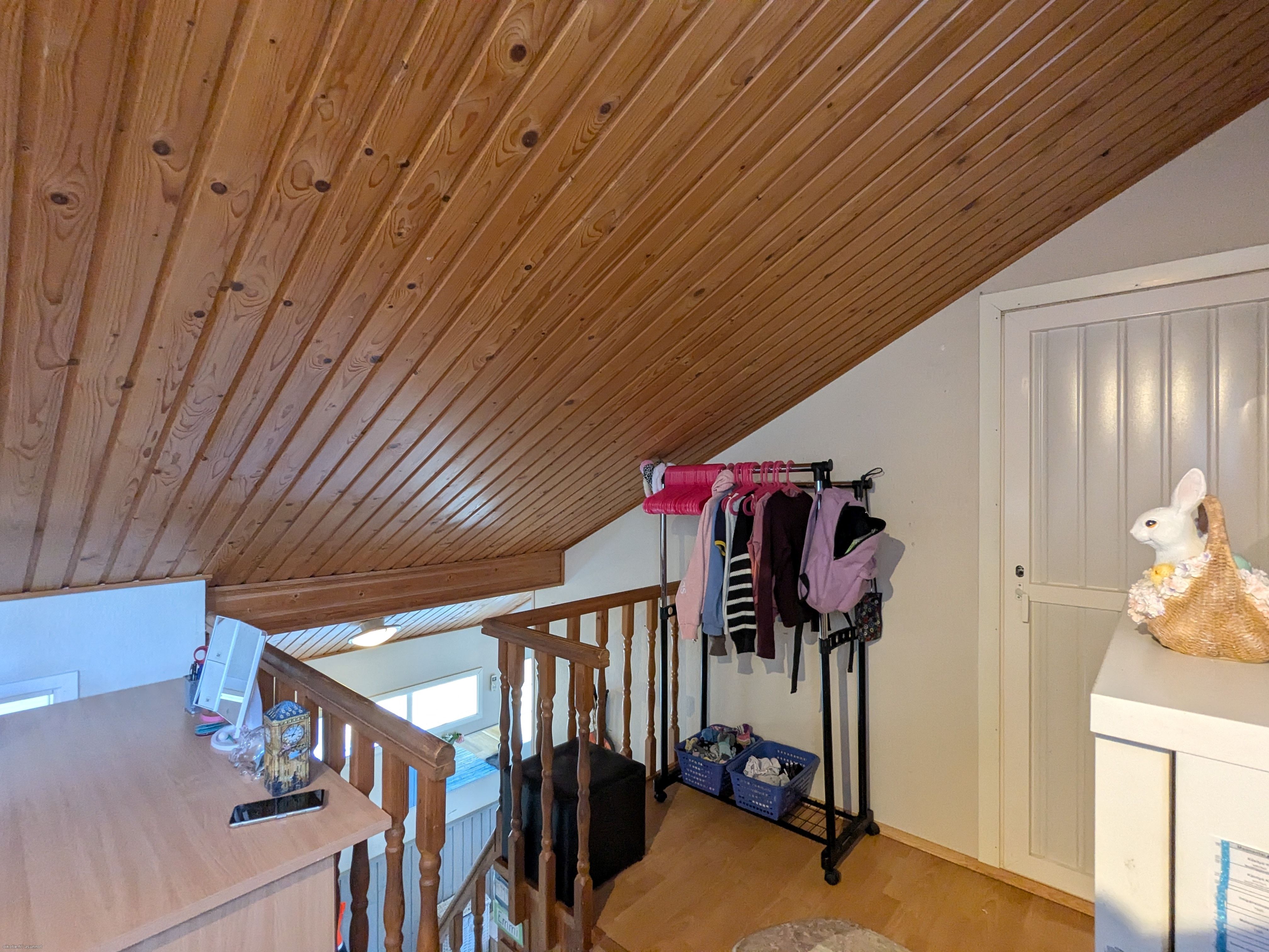 Kaksikerroksisessa kodissa on kaksi tilavaa makuuhuonetta, joista toisen yhteydessä on vaatehuone, valoisa olohuone, keittiö sekä yksi WC-tila sekä puku- ja kylpyhuone sekä saunatilat. Yläkerrassa on yksi asuintila sekä kulku ullakolle. Hormi on massattu ja kunnossa eli tulisijan rakentaminen esimerkiksi olohuoneeseen on mahdollista!