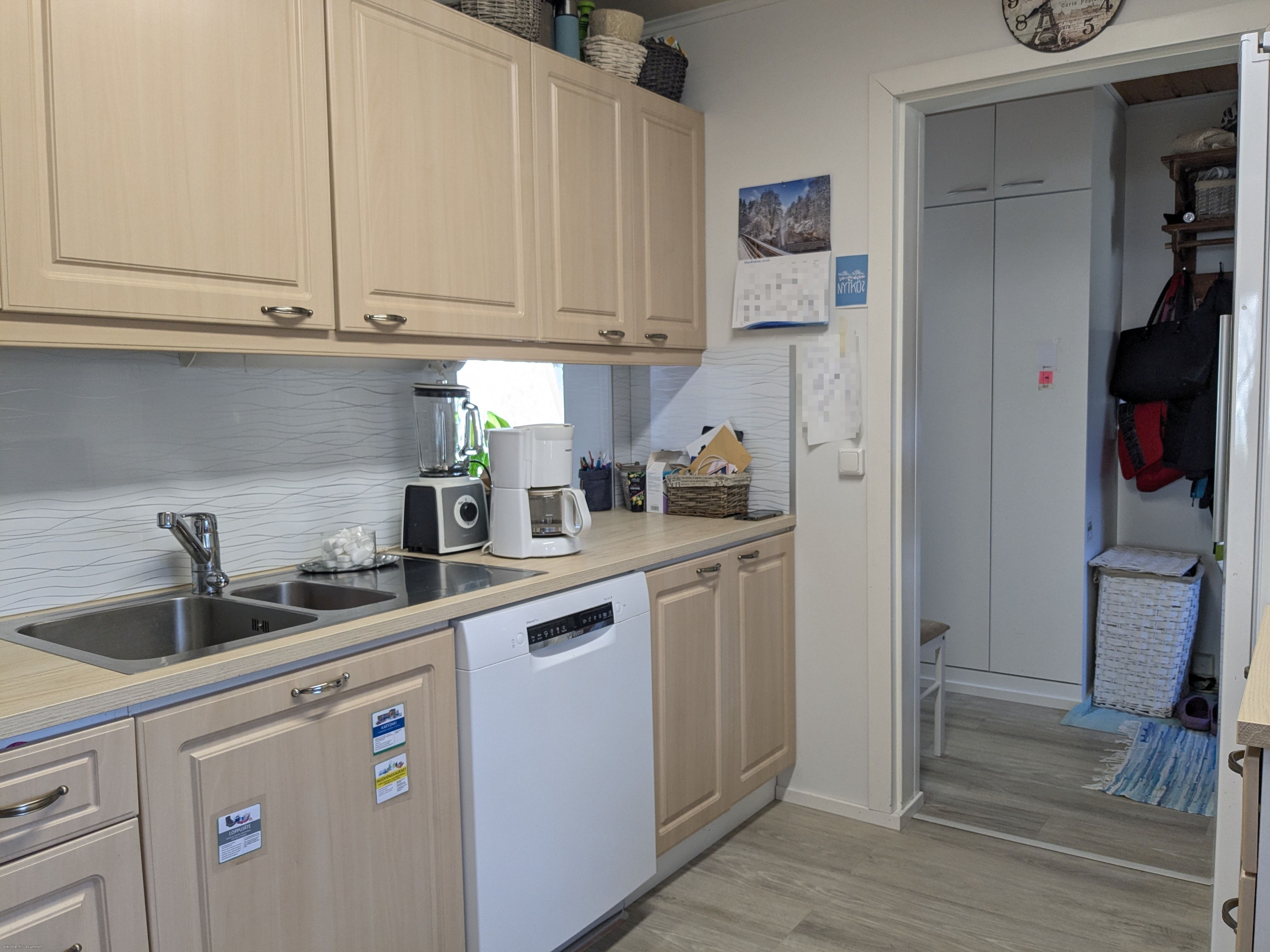 Varusteet: jääkaappi, astianpesukone. Liesi: induktioliesi